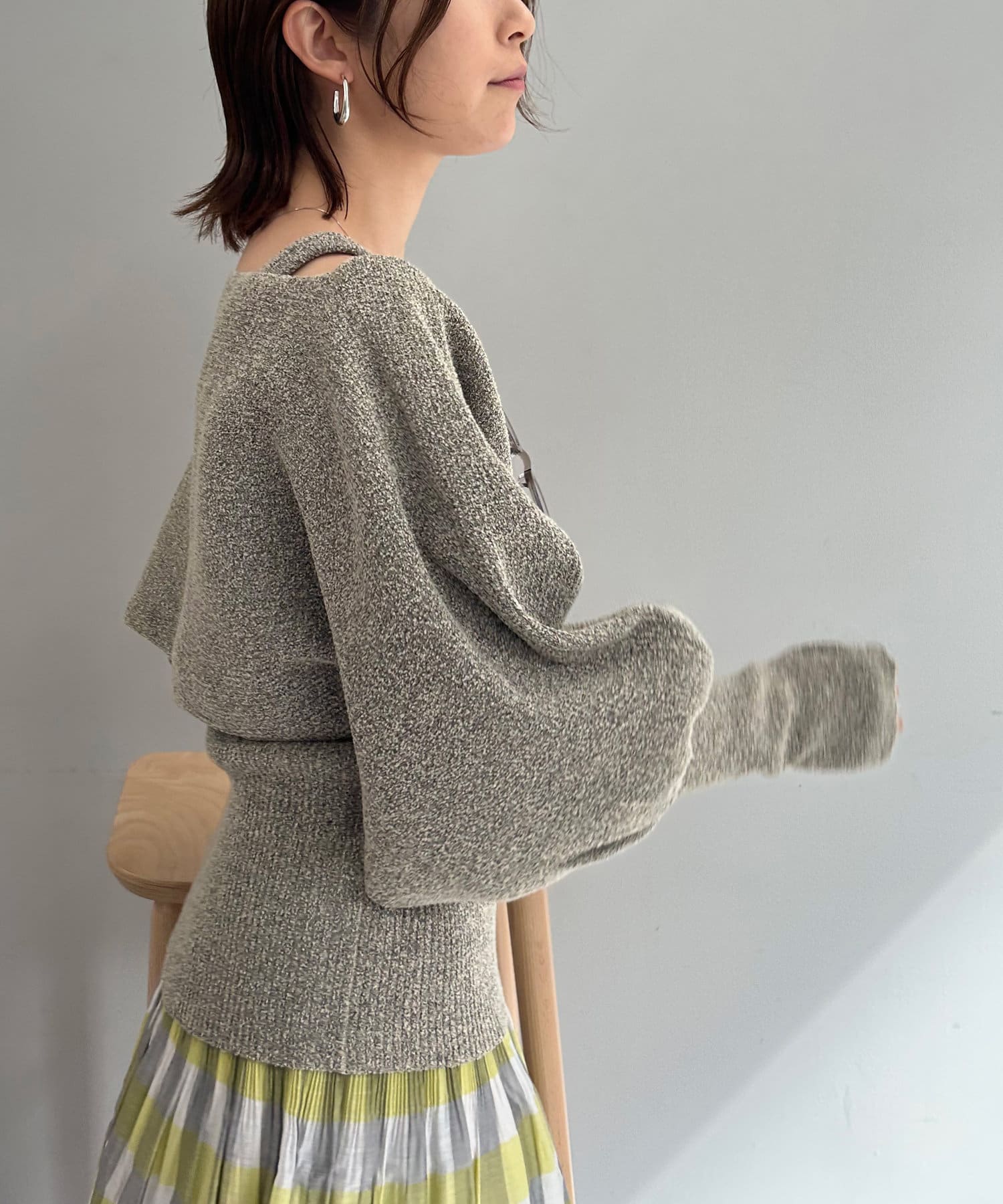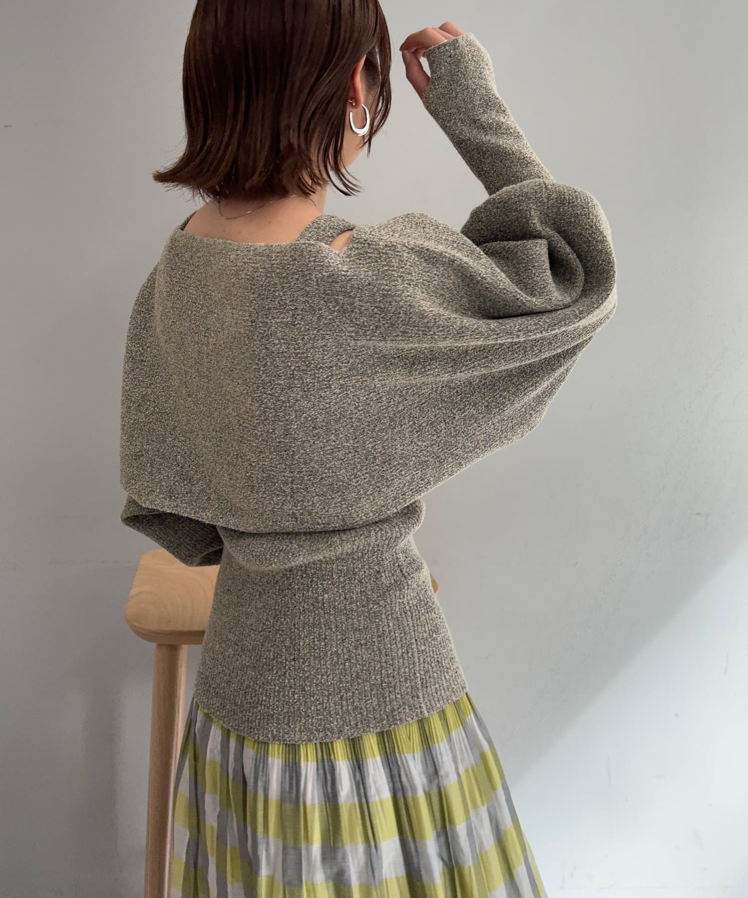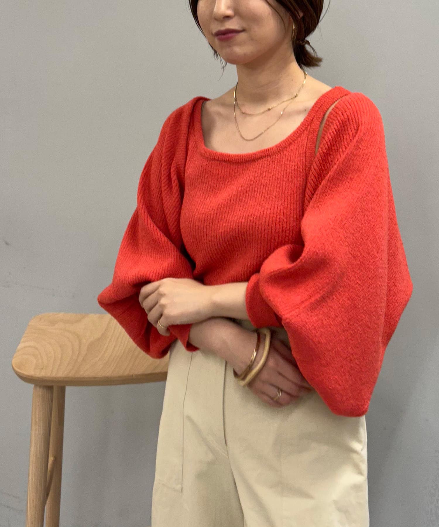・トレンドのサムホールがついたデザインで、袖リブも長い仕様なので、贅沢に袖のボリュームが出せ、シンプルながらコーデのポイントになってくれるニット。