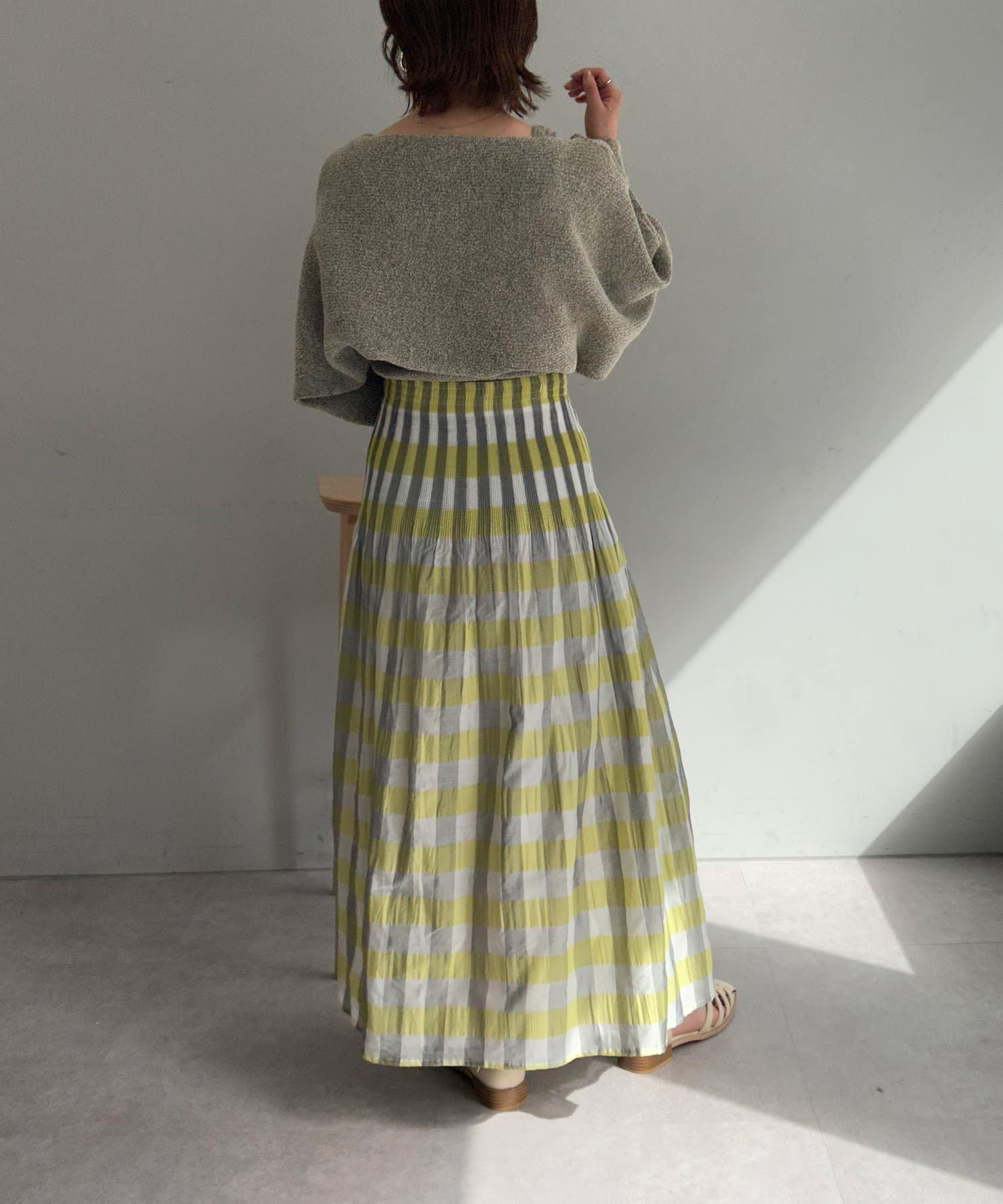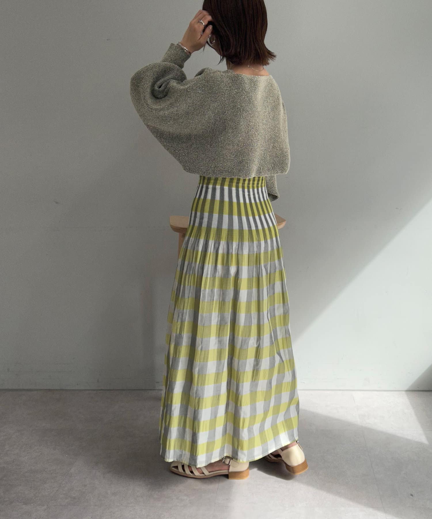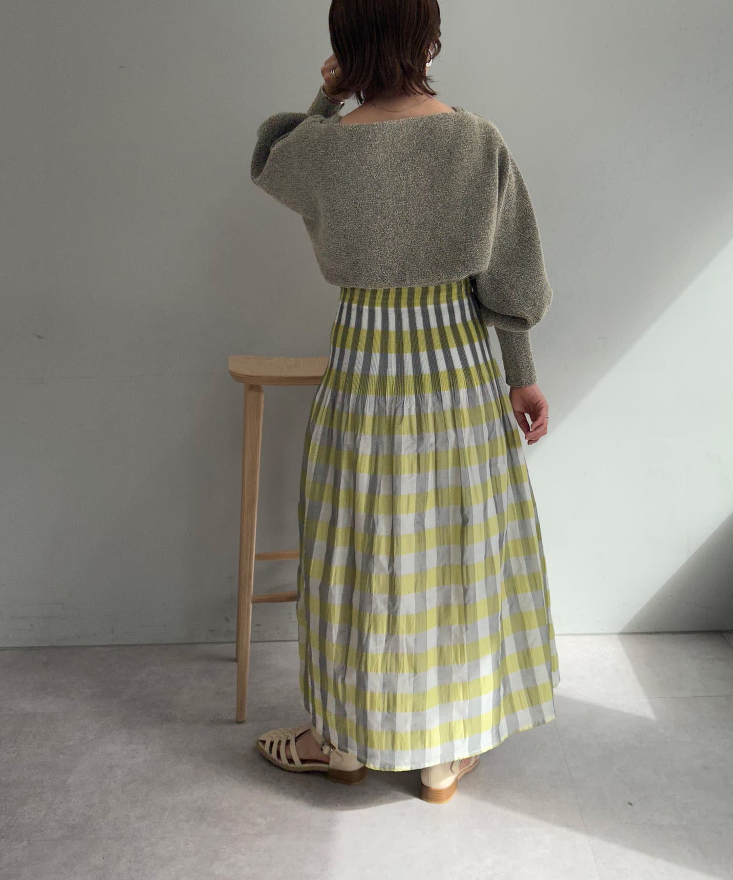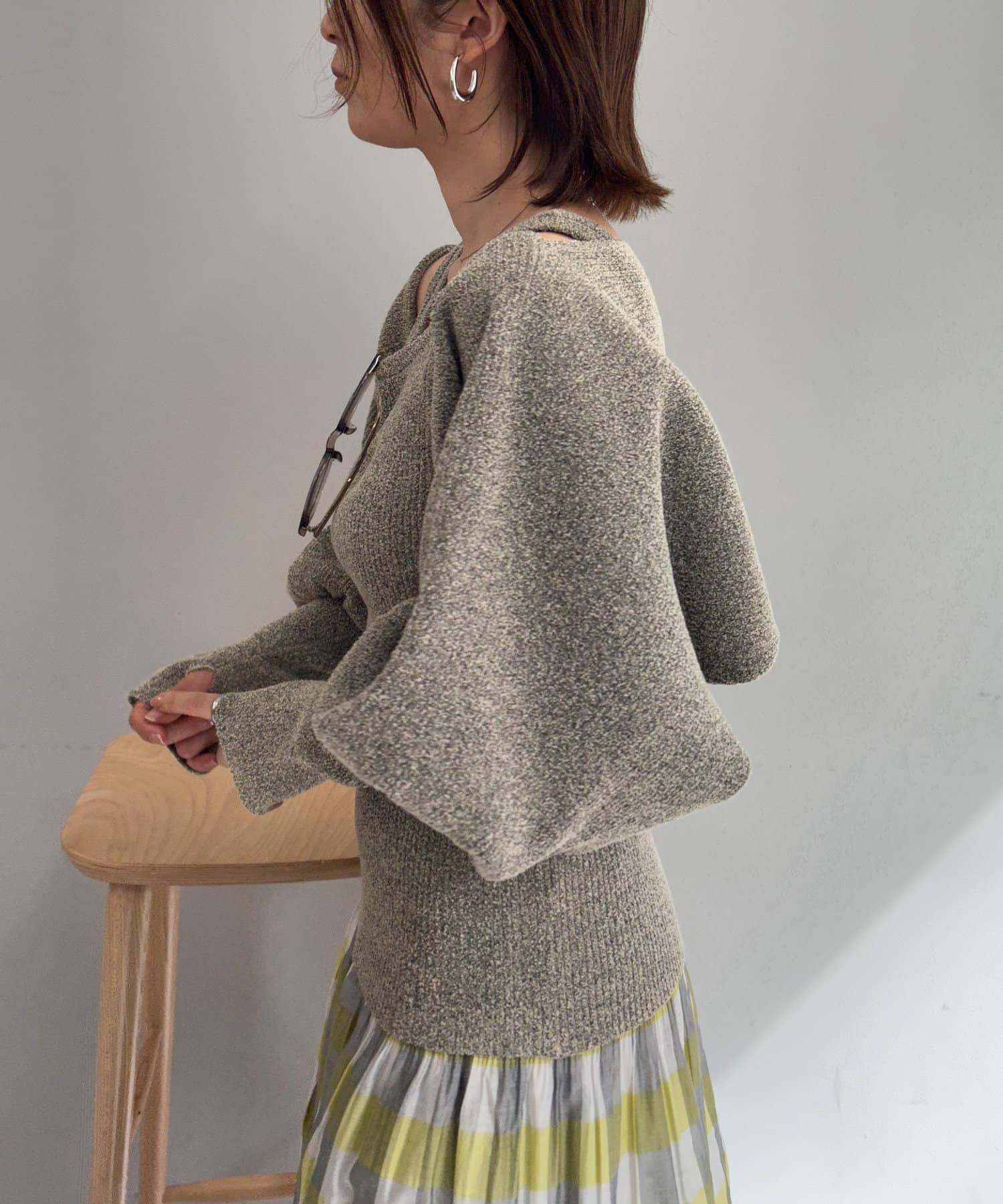 ・トレンドのサムホールがついたデザインで、袖リブも長い仕様なので、贅沢に袖のボリュームが出せ、シンプルながらコーデのポイントになってくれるニット。