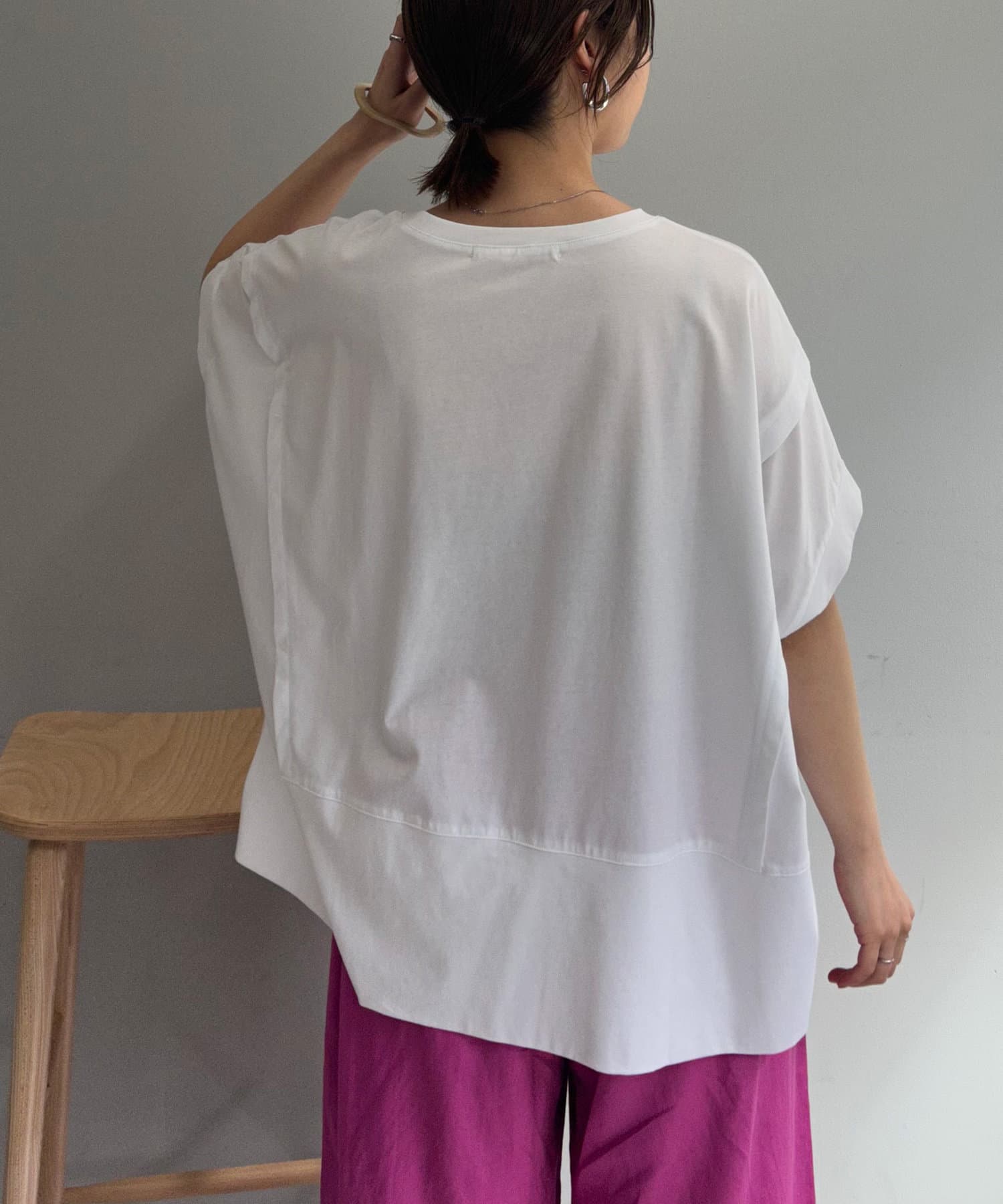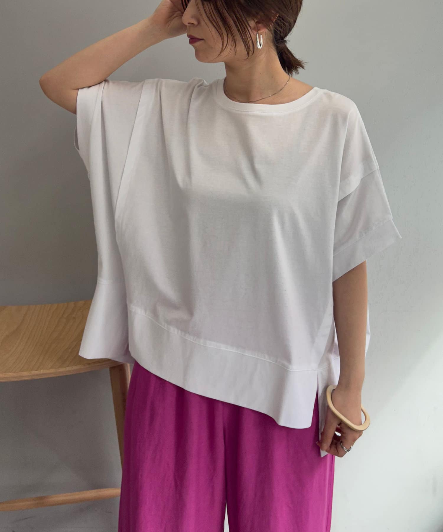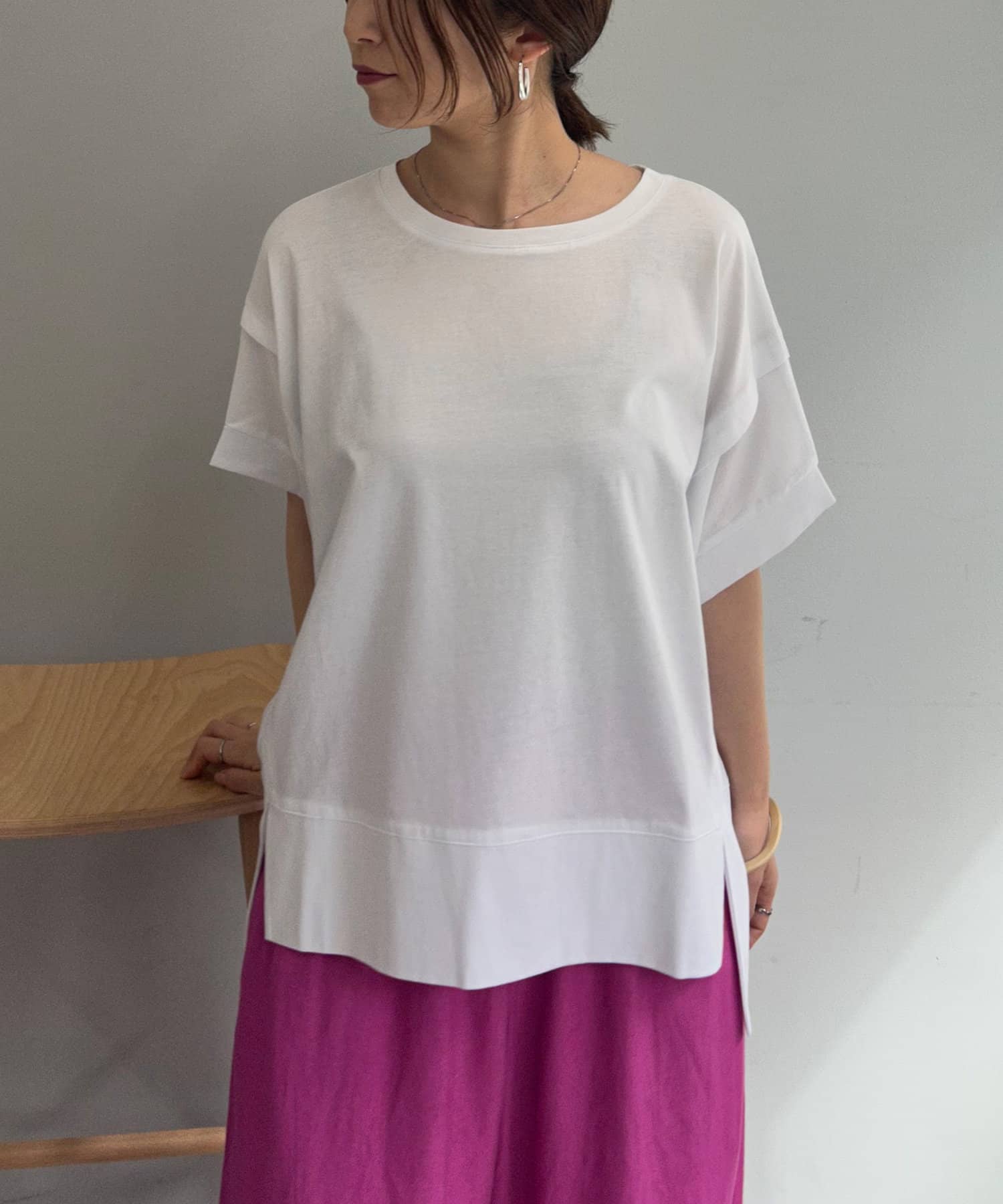 ・大胆な前後差デザインやスリットで、ベーシックながらも抜け感のある1枚。