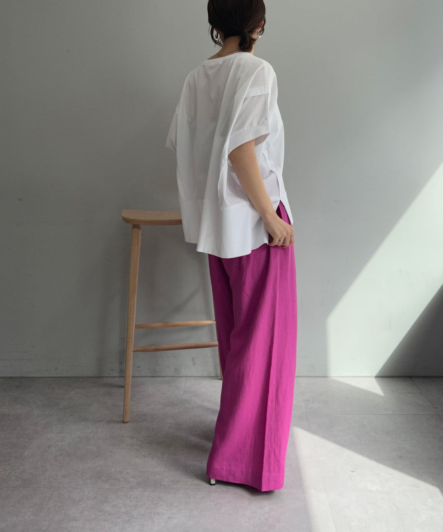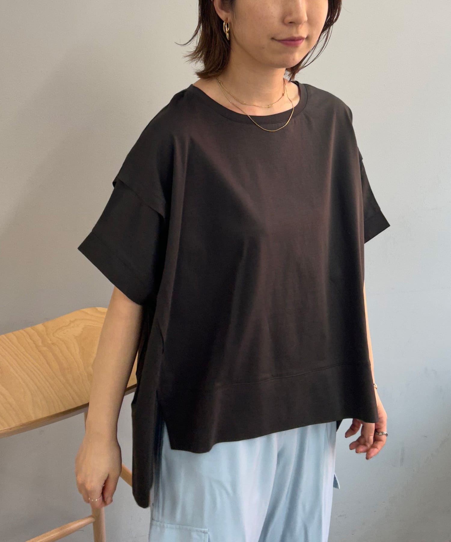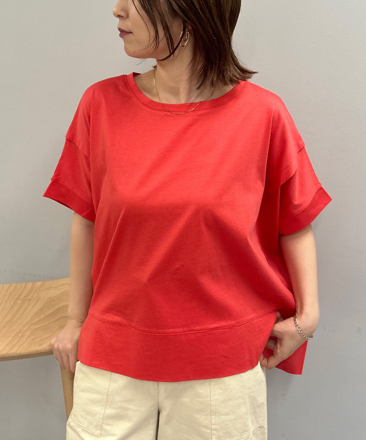 ・大胆な前後差デザインやスリットで、ベーシックながらも抜け感のある1枚。