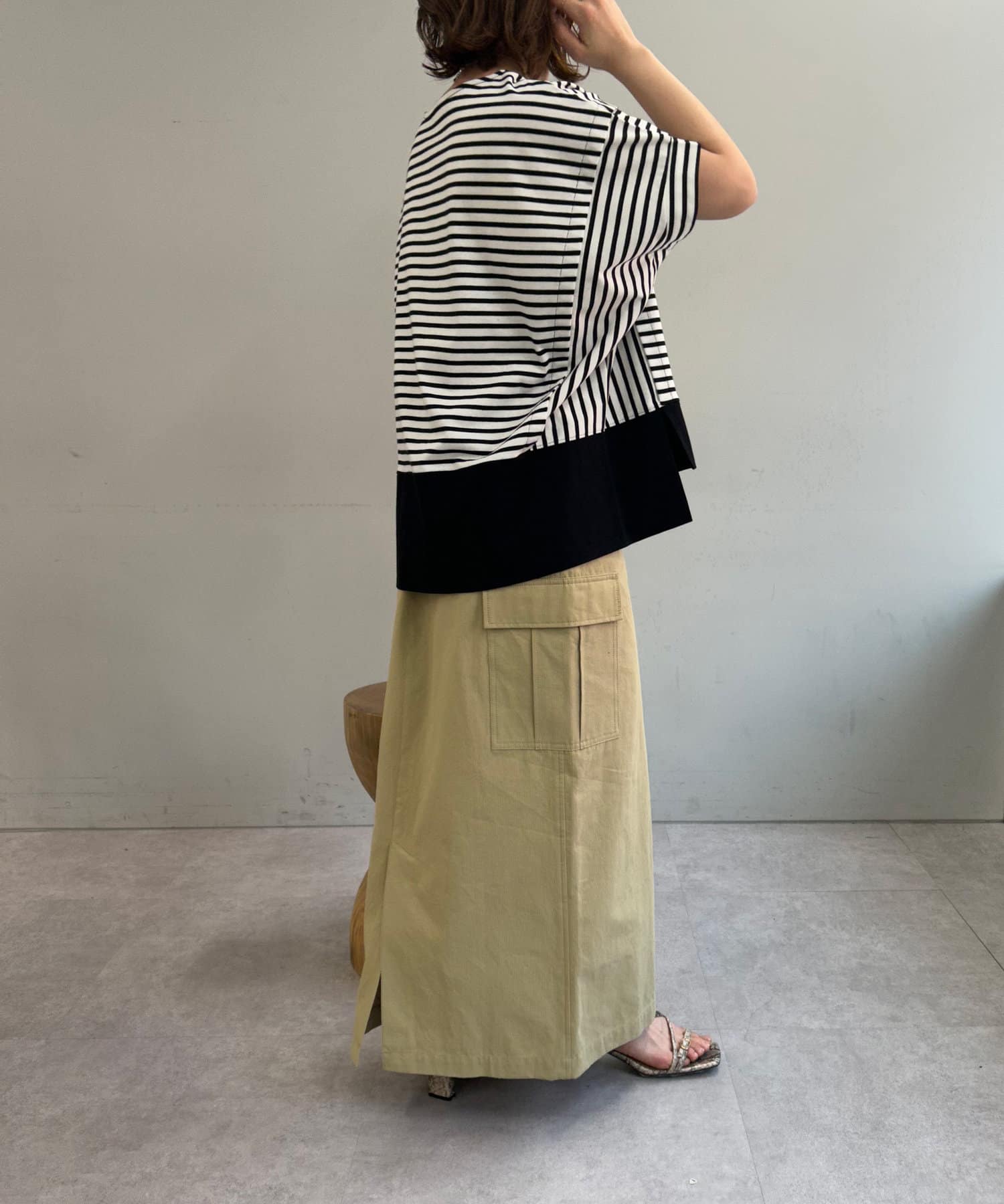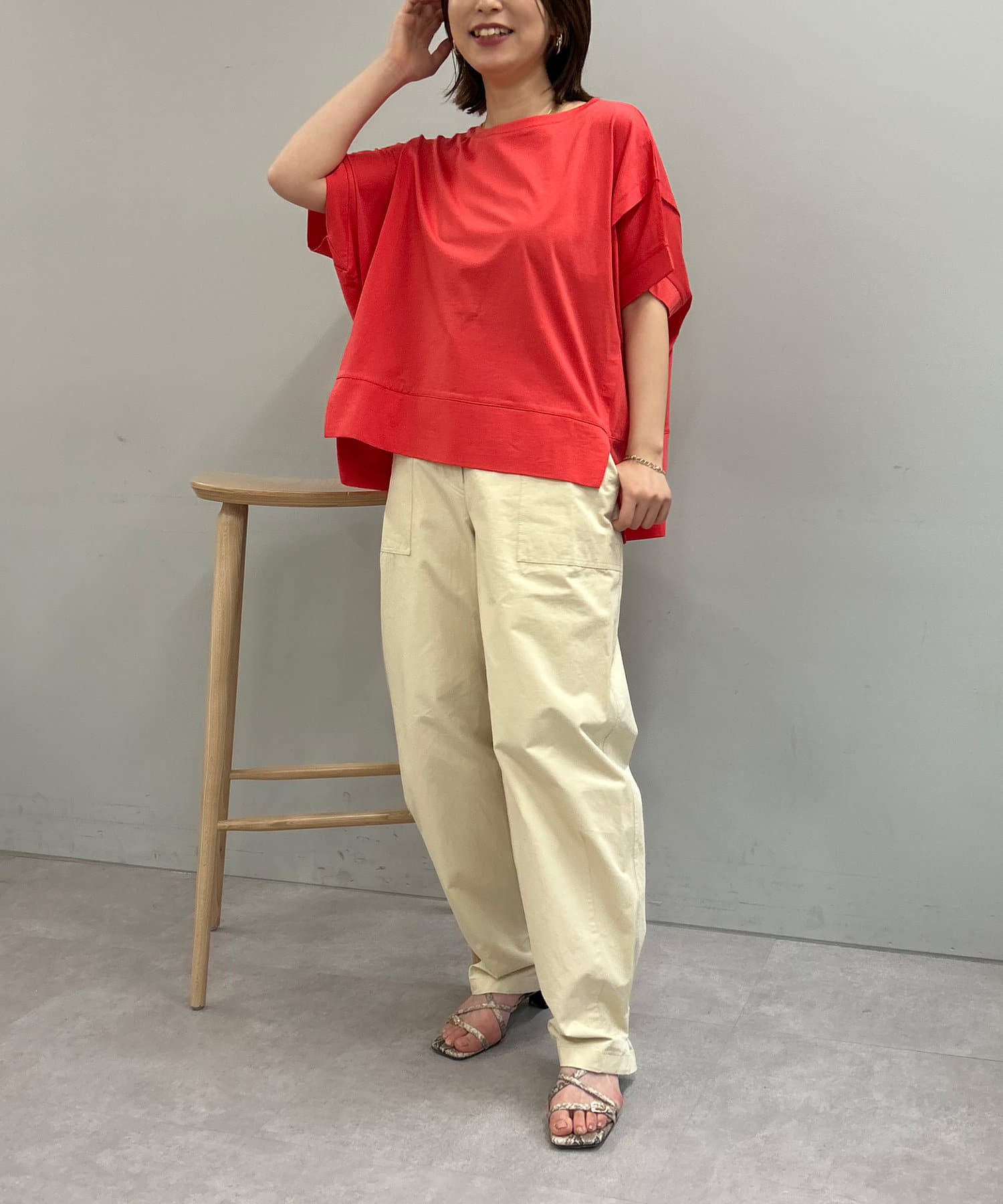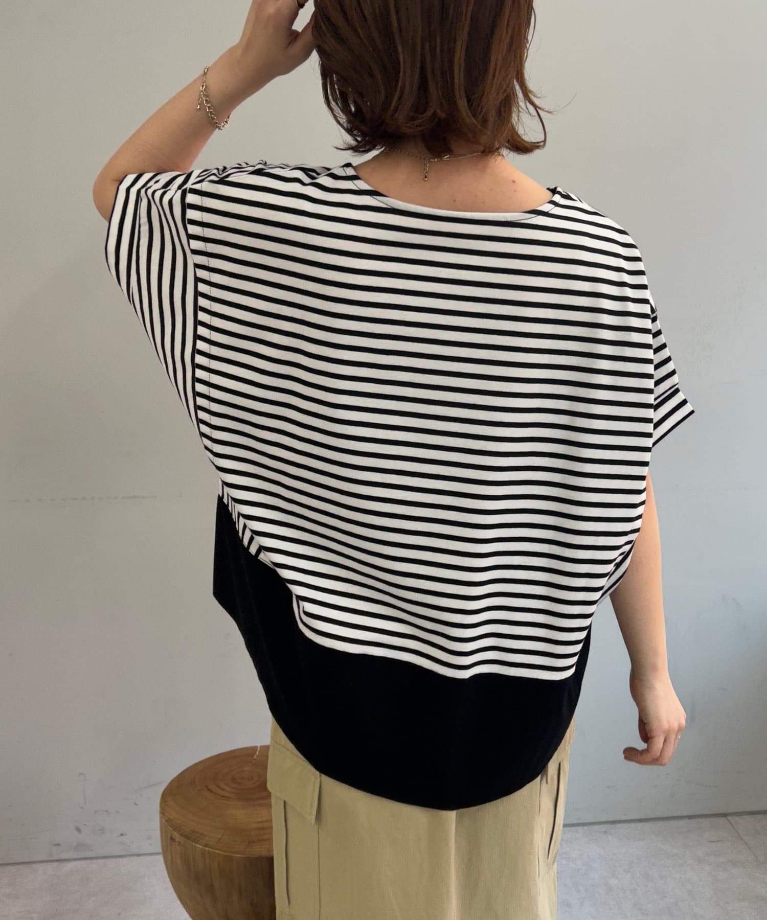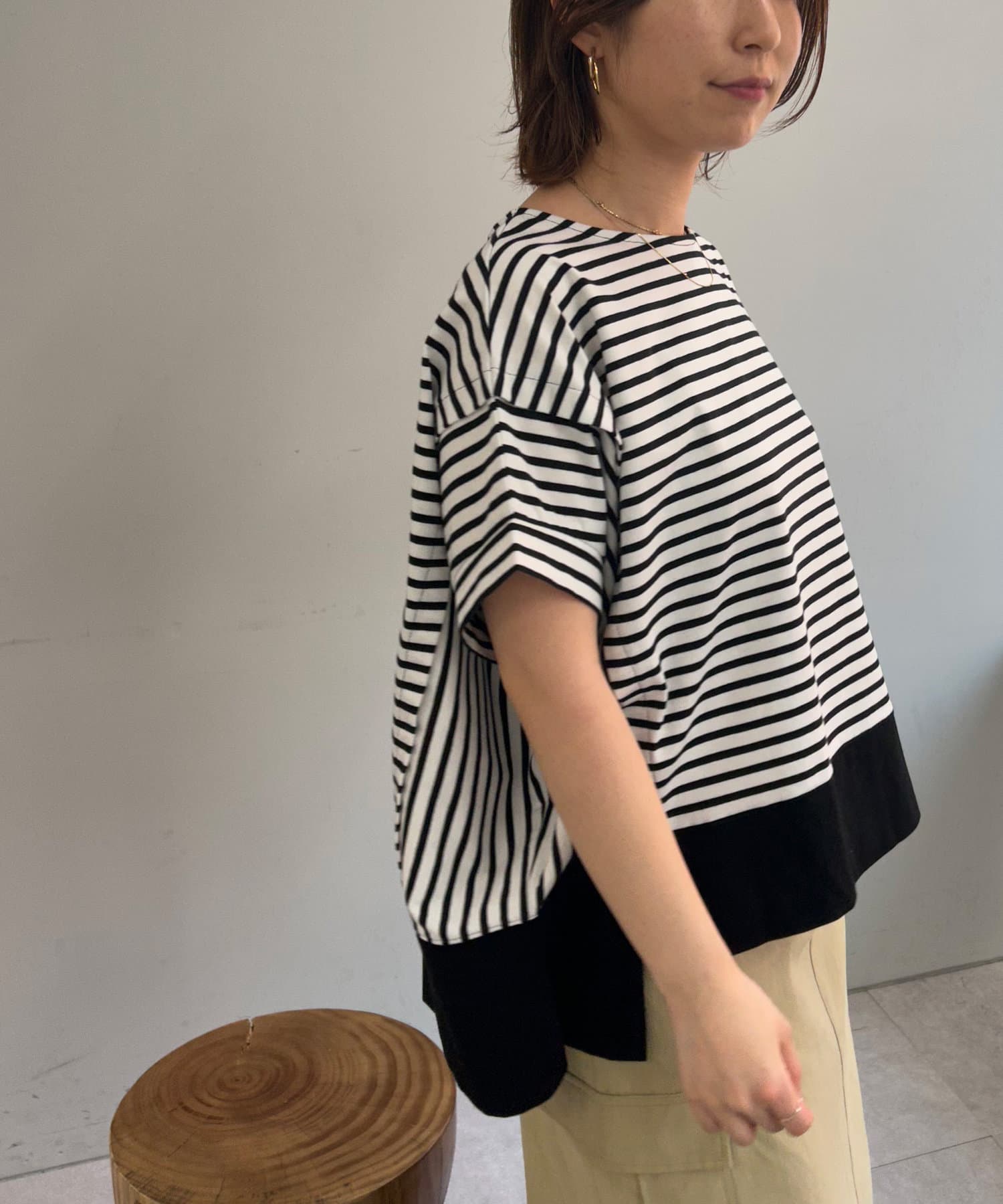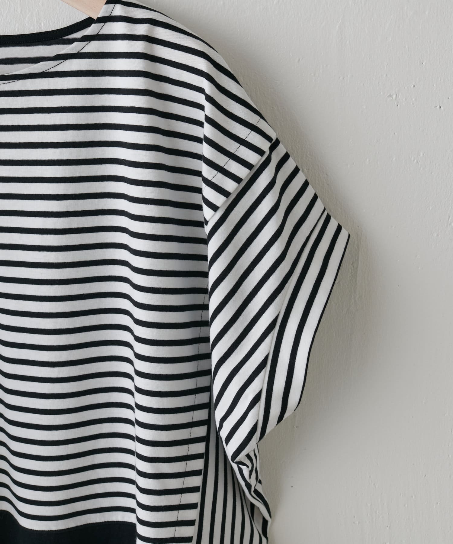 ・重なったように切り替えられた、袖コンシャスなデザインもポイントに。