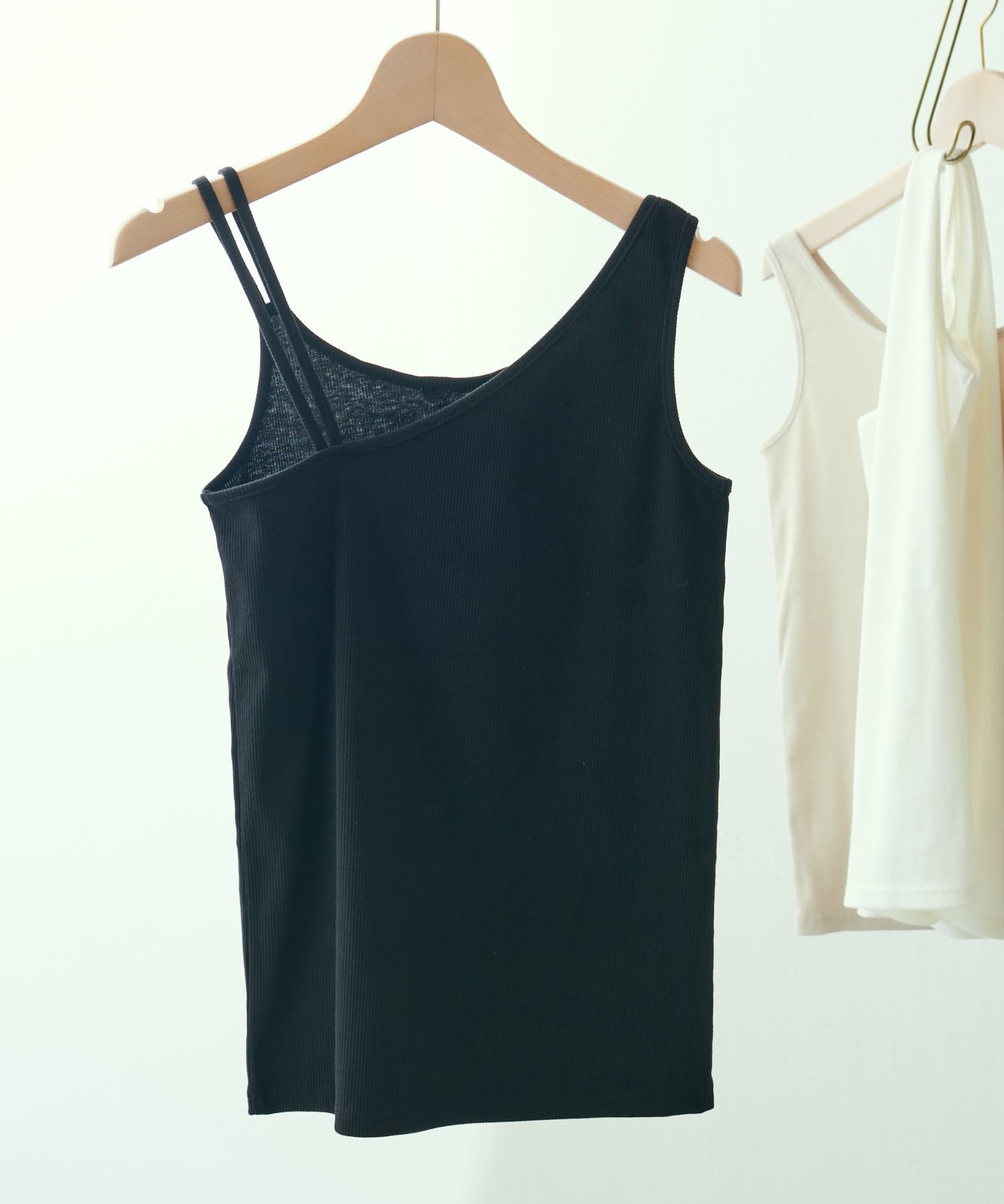 ・コーデの主役になってくれるアシメリブタンクトップ。