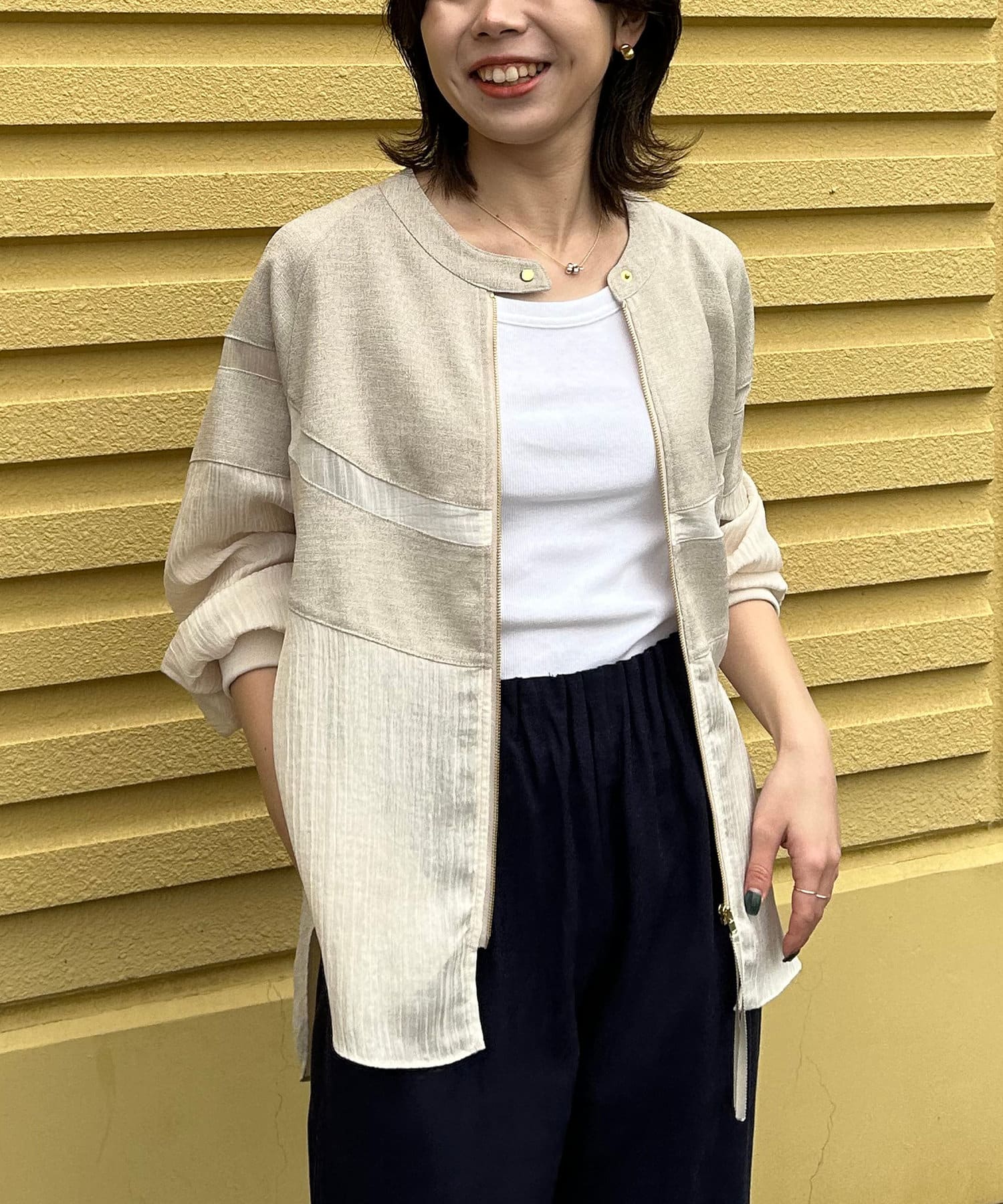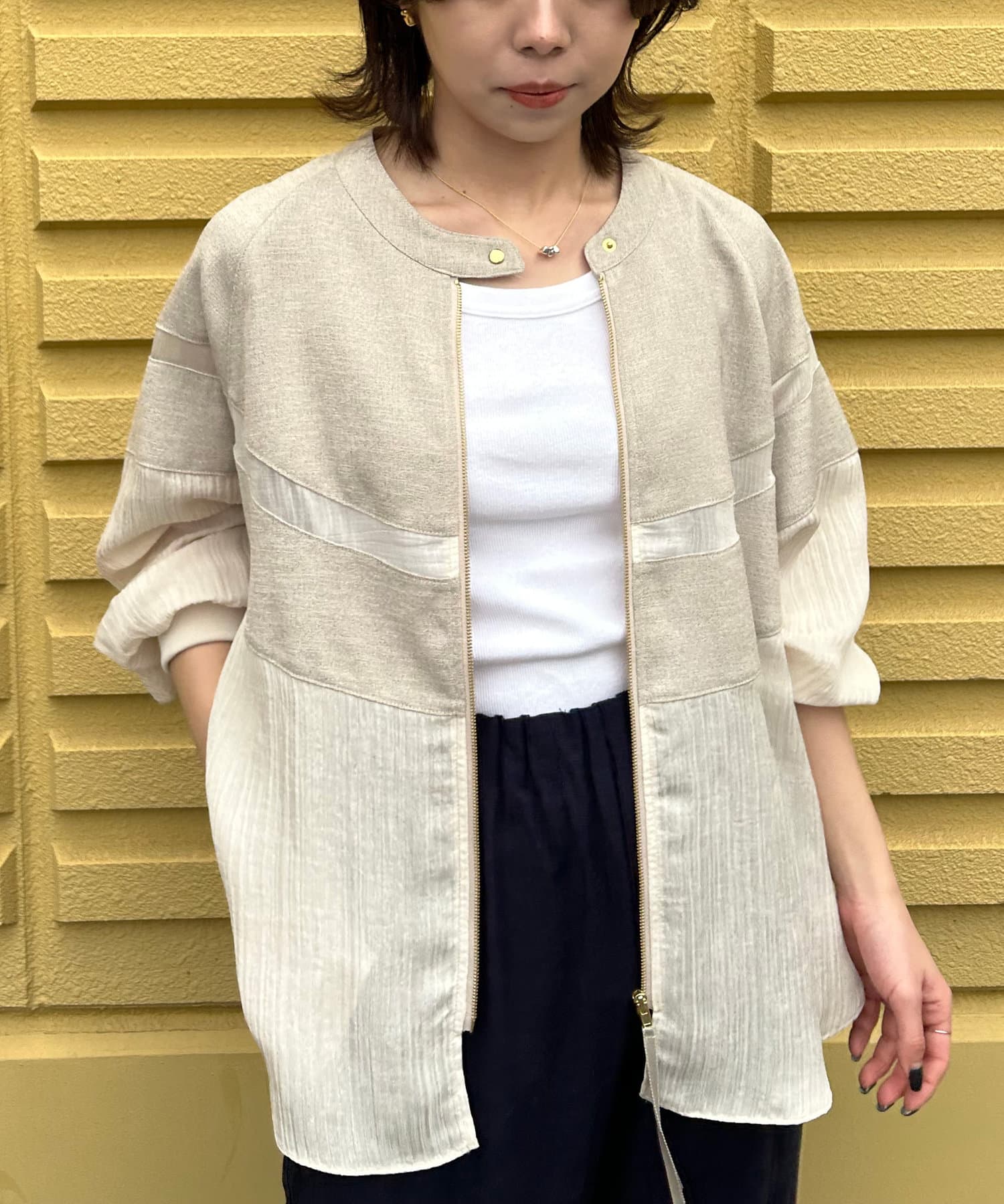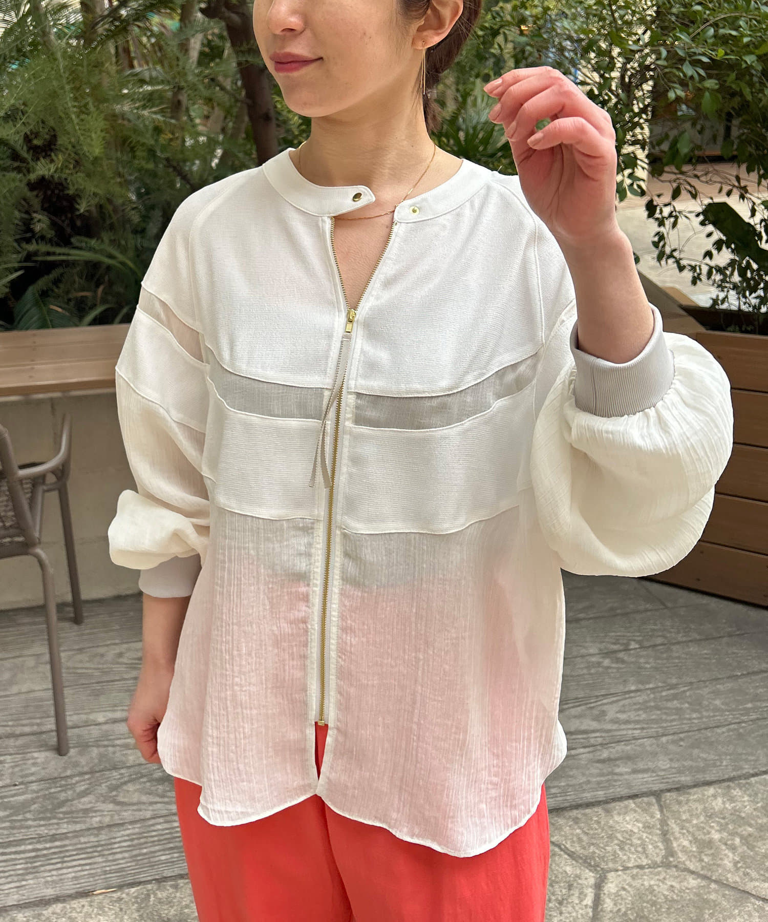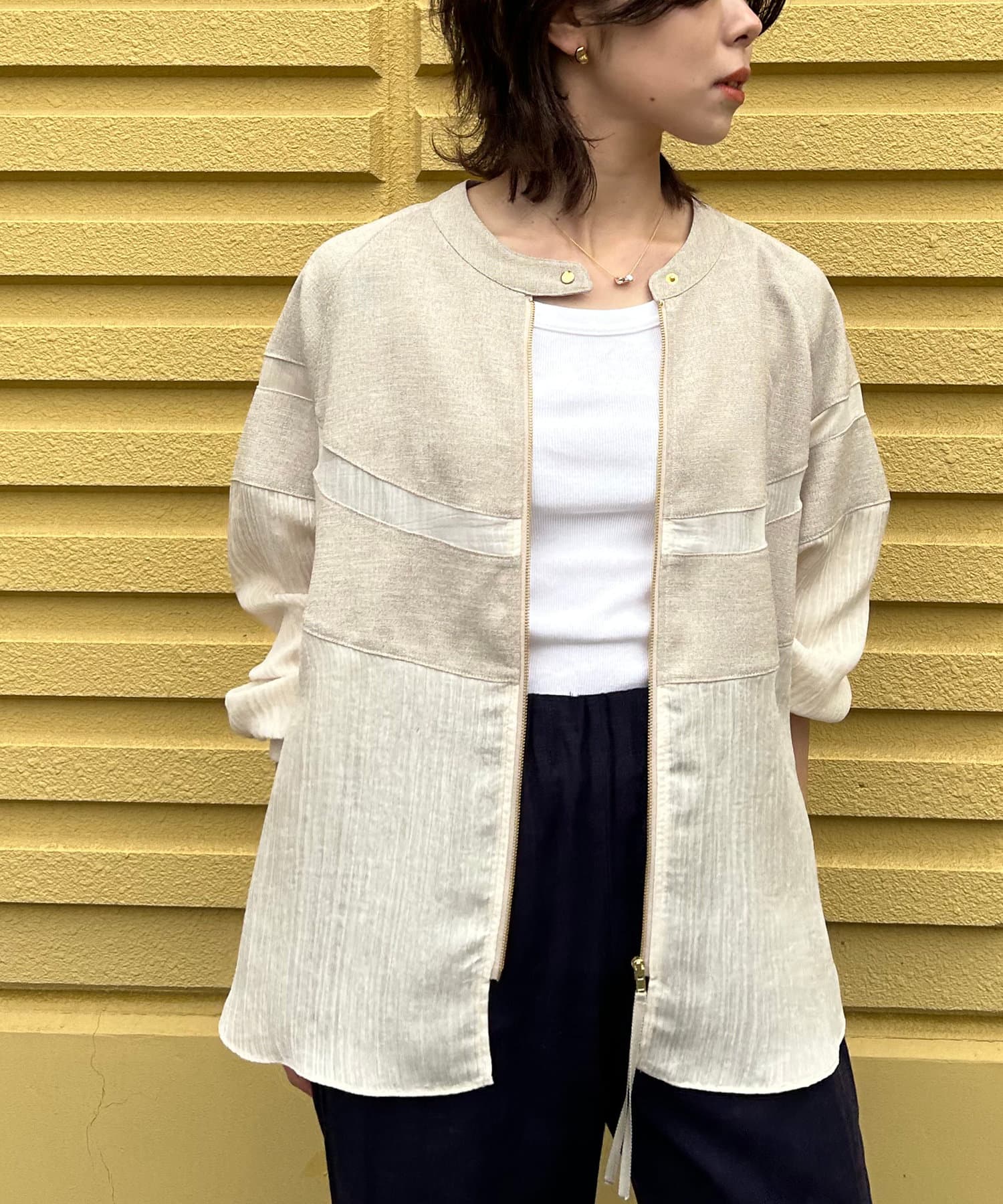 ・リネンと上品なシアー感が魅力のブルゾン。