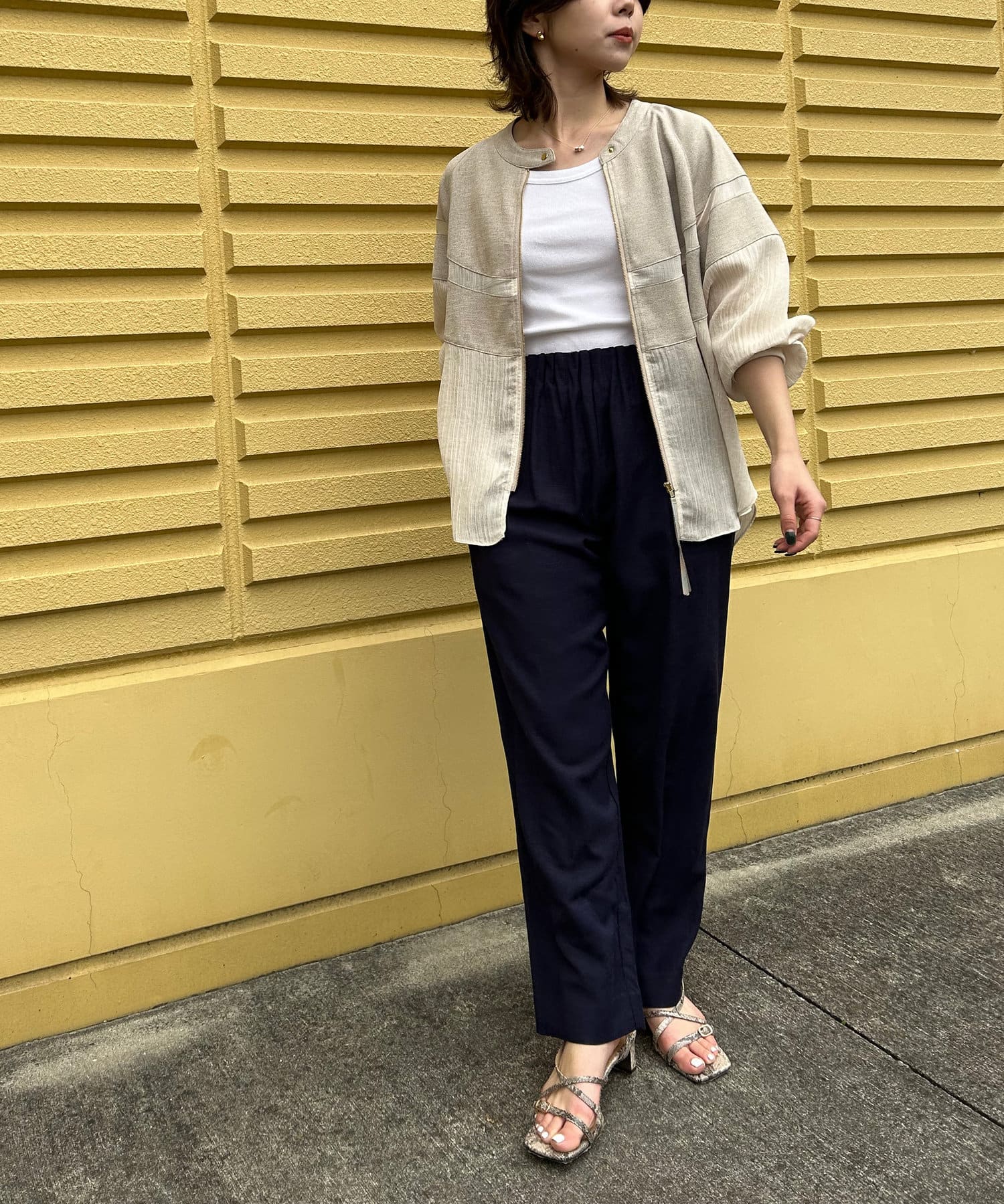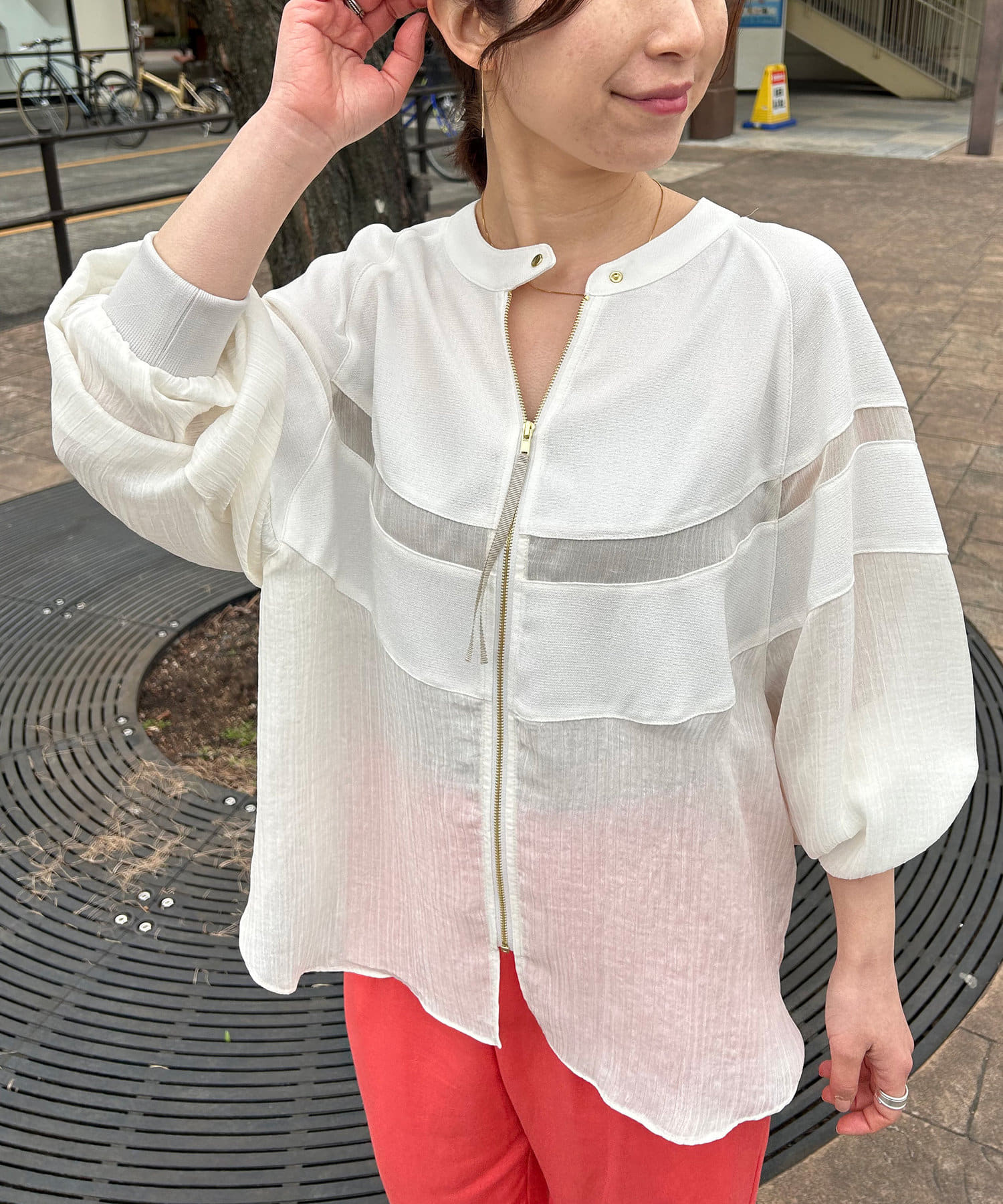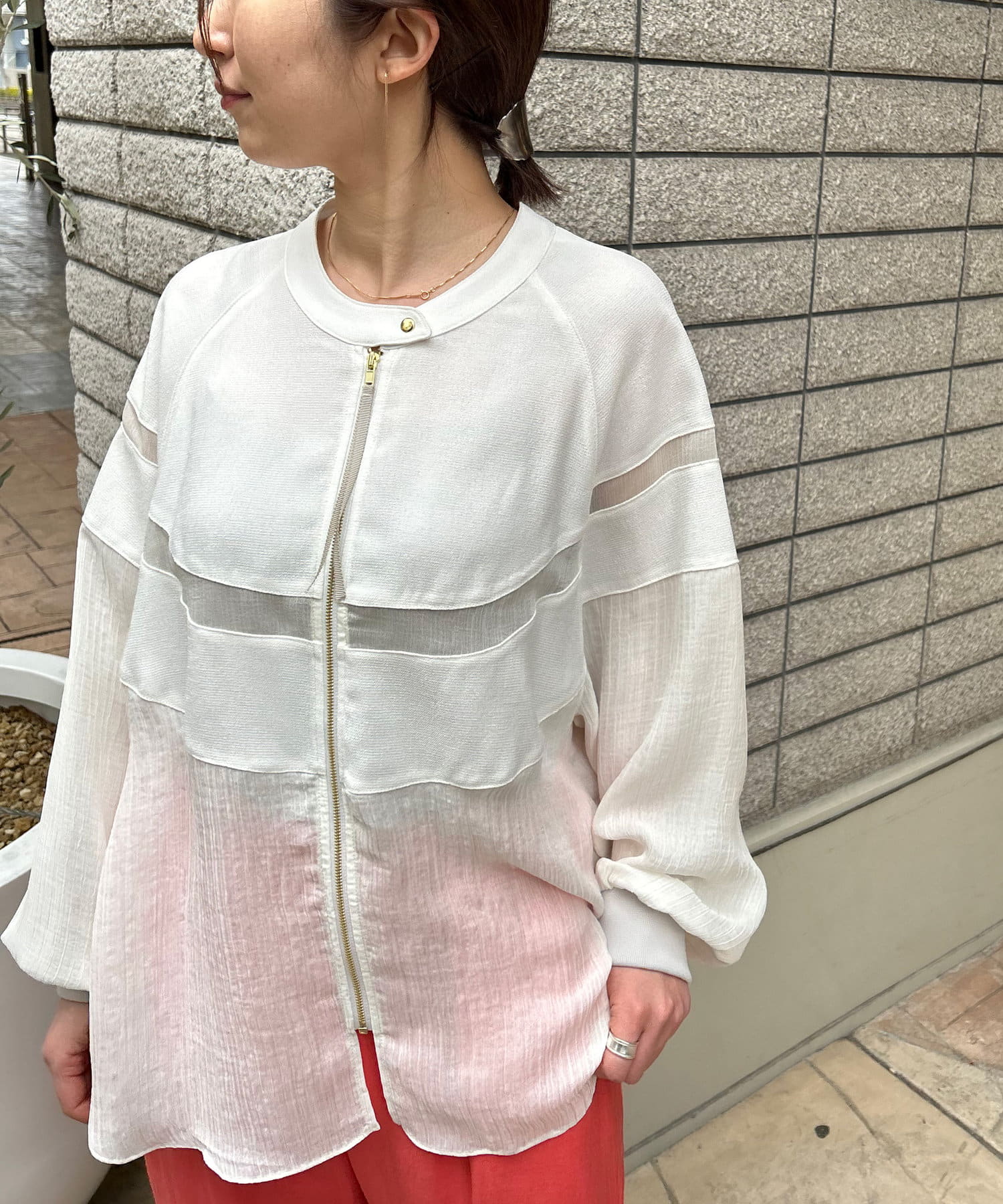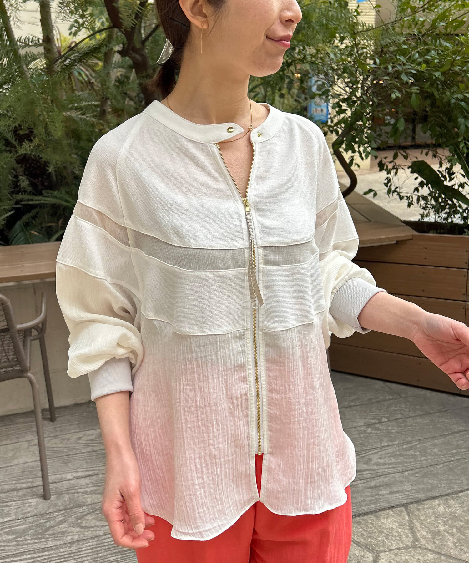 ・リネンと上品なシアー感が魅力のブルゾン。