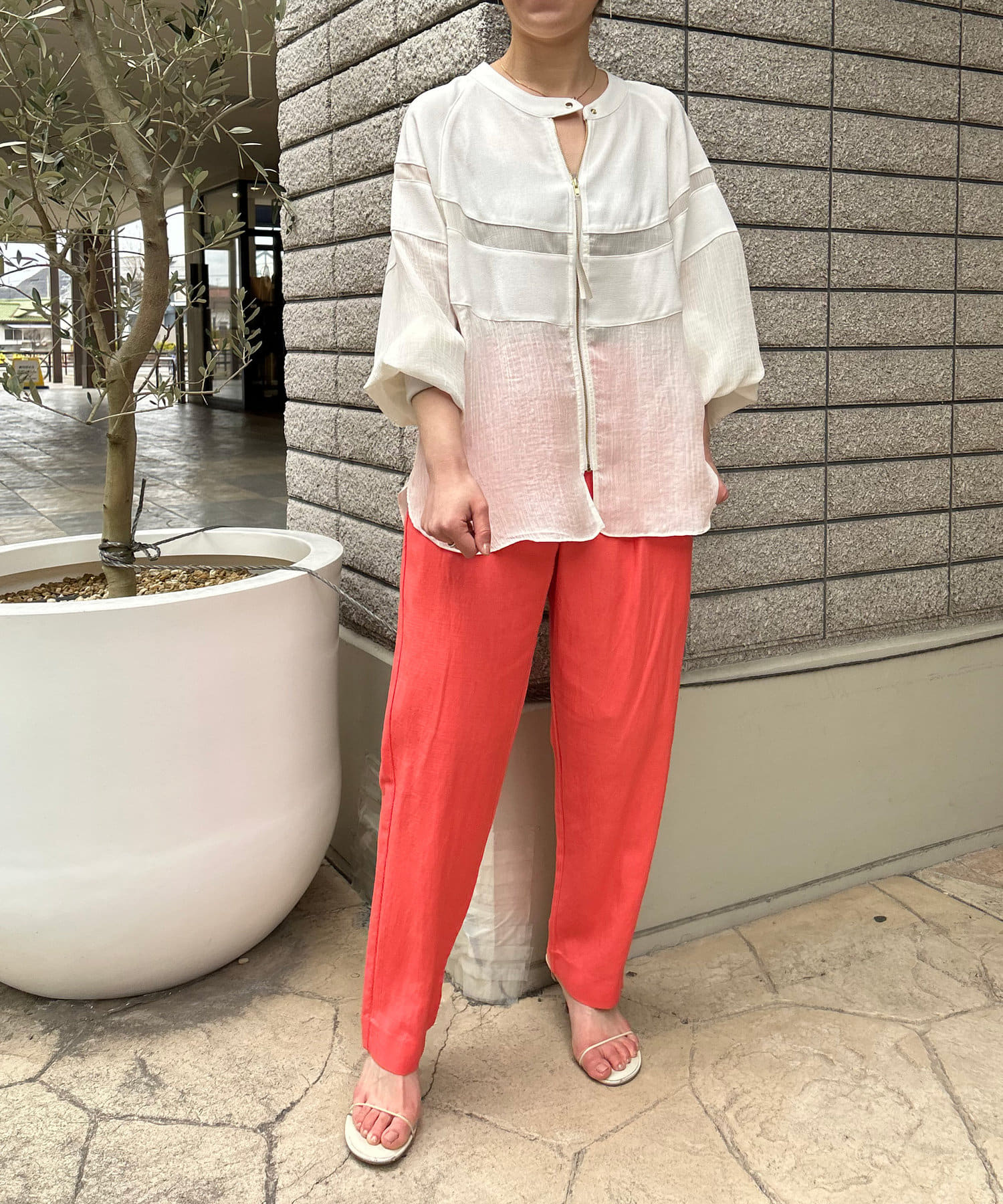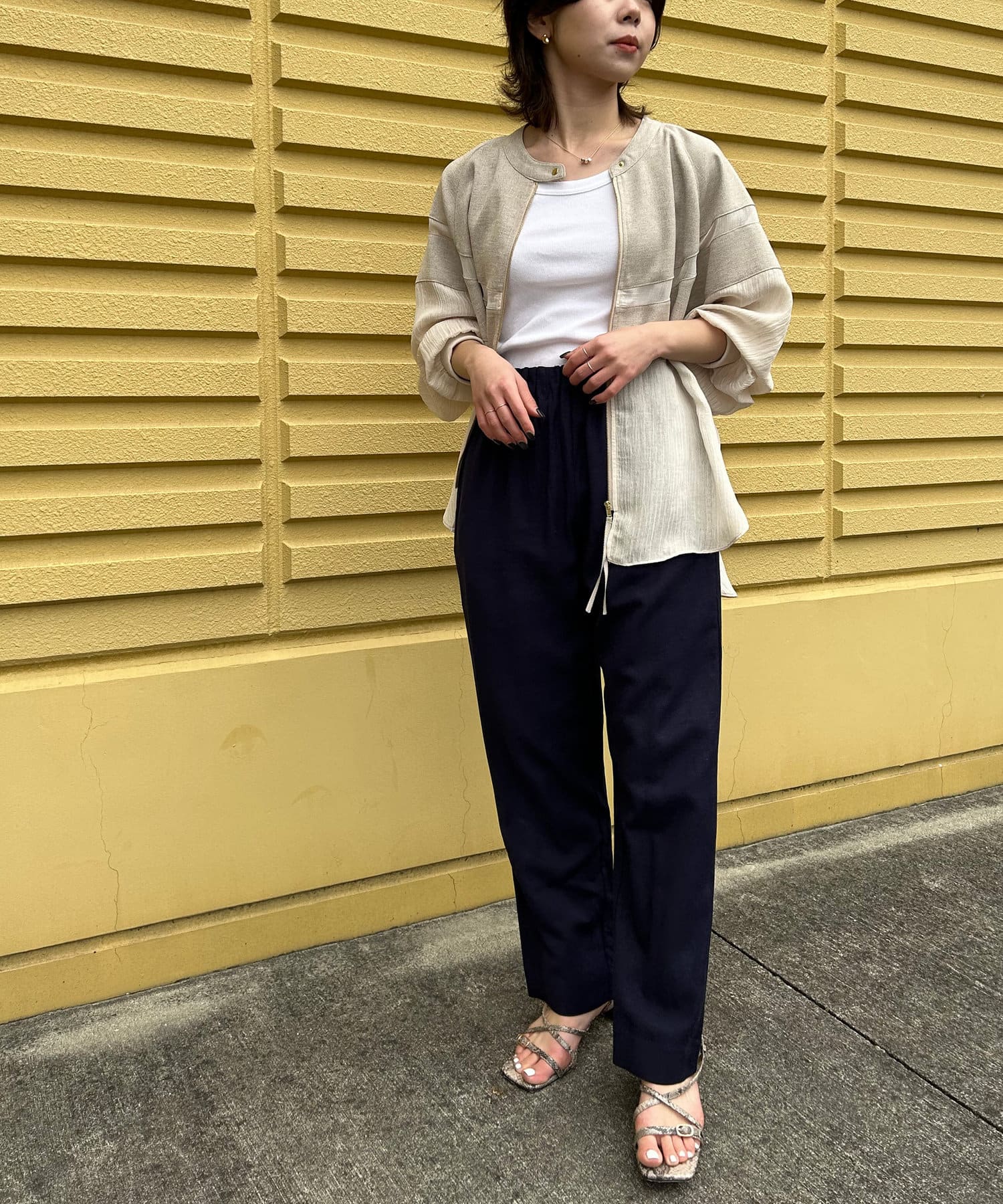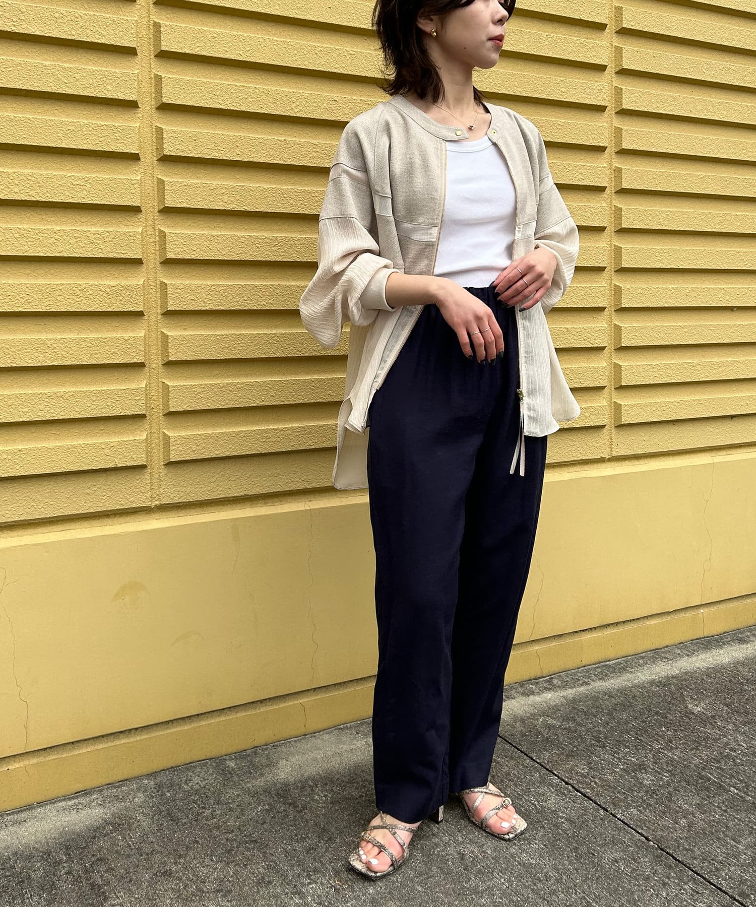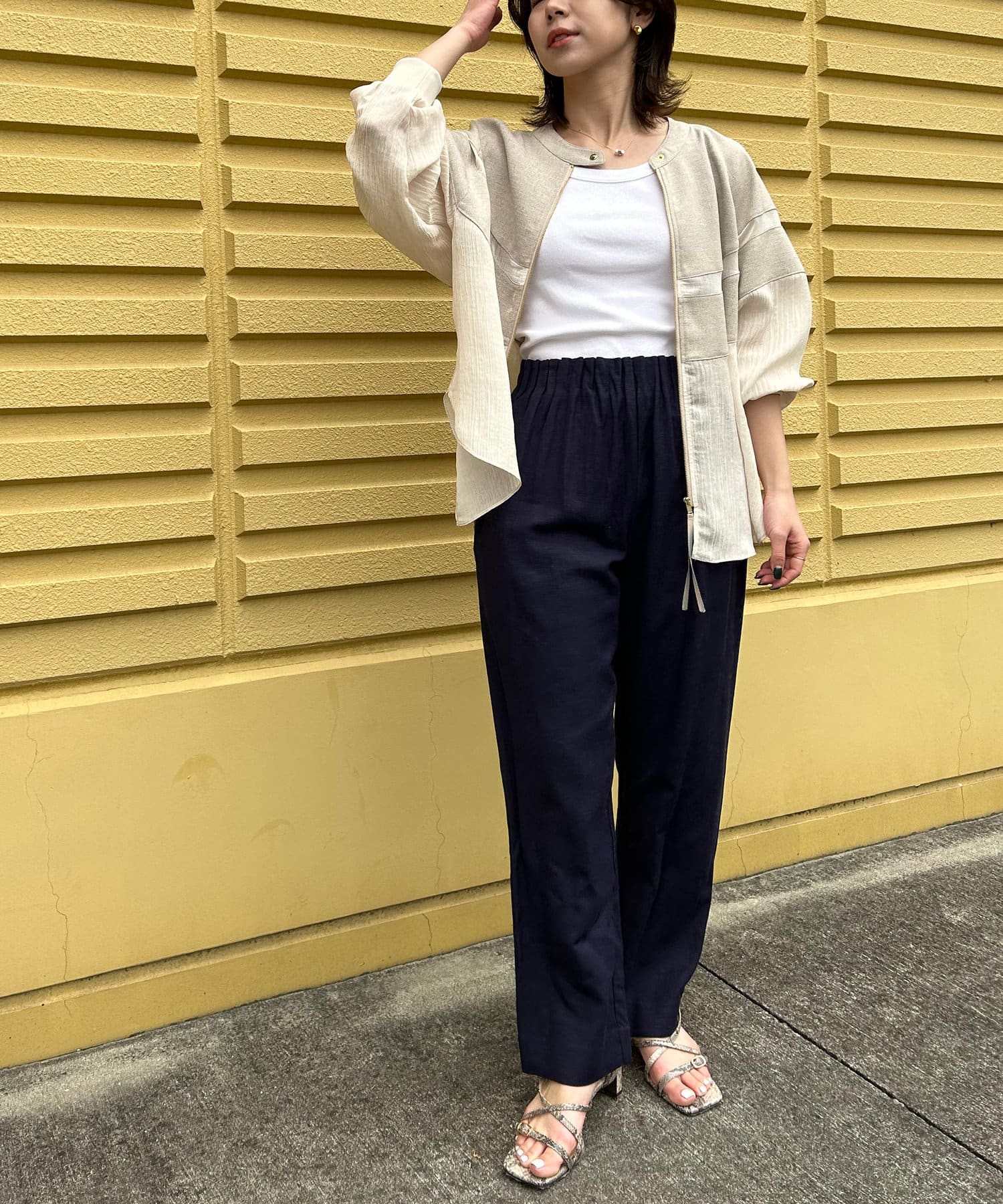 ・リネンと上品なシアー感が魅力のブルゾン。
