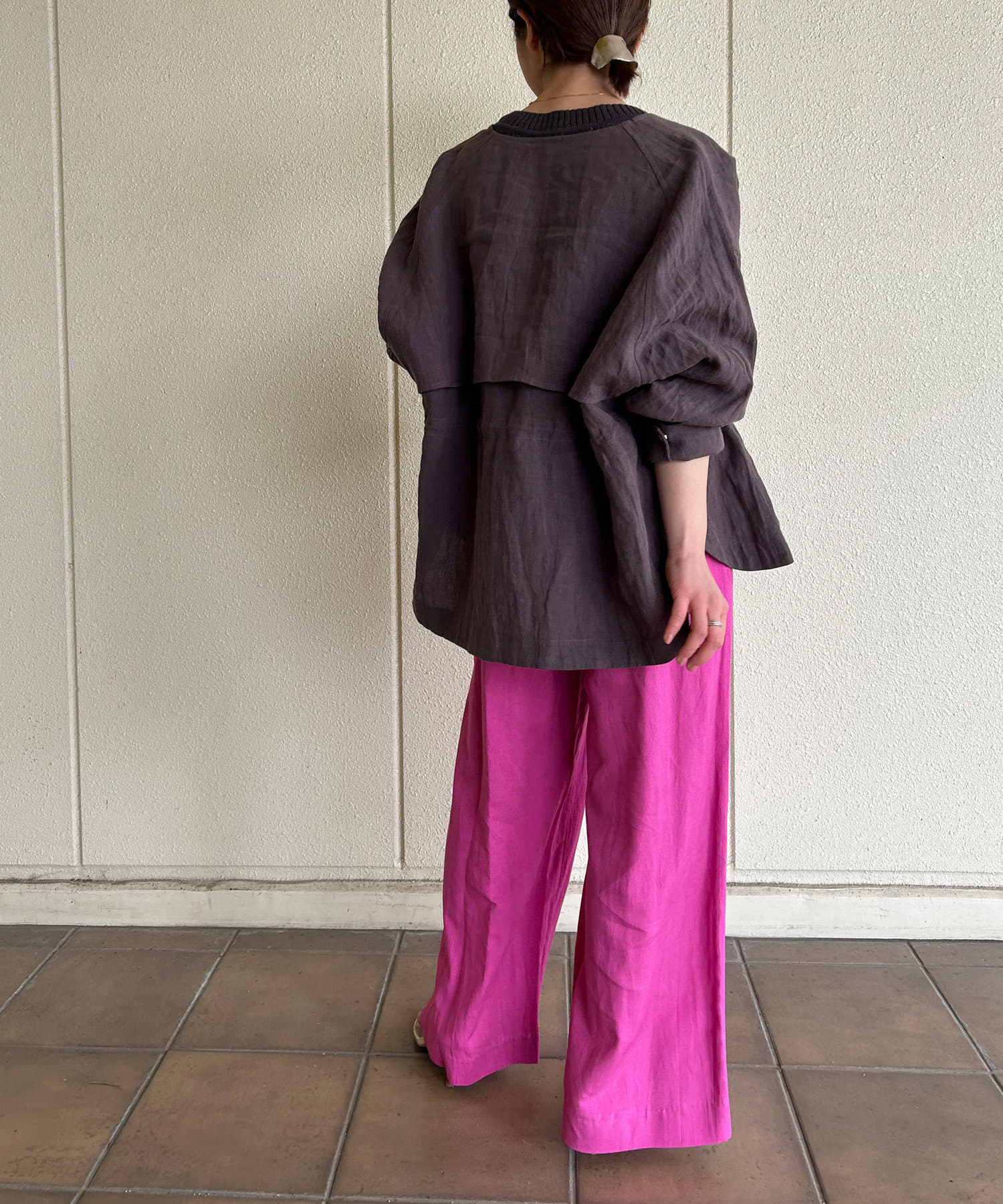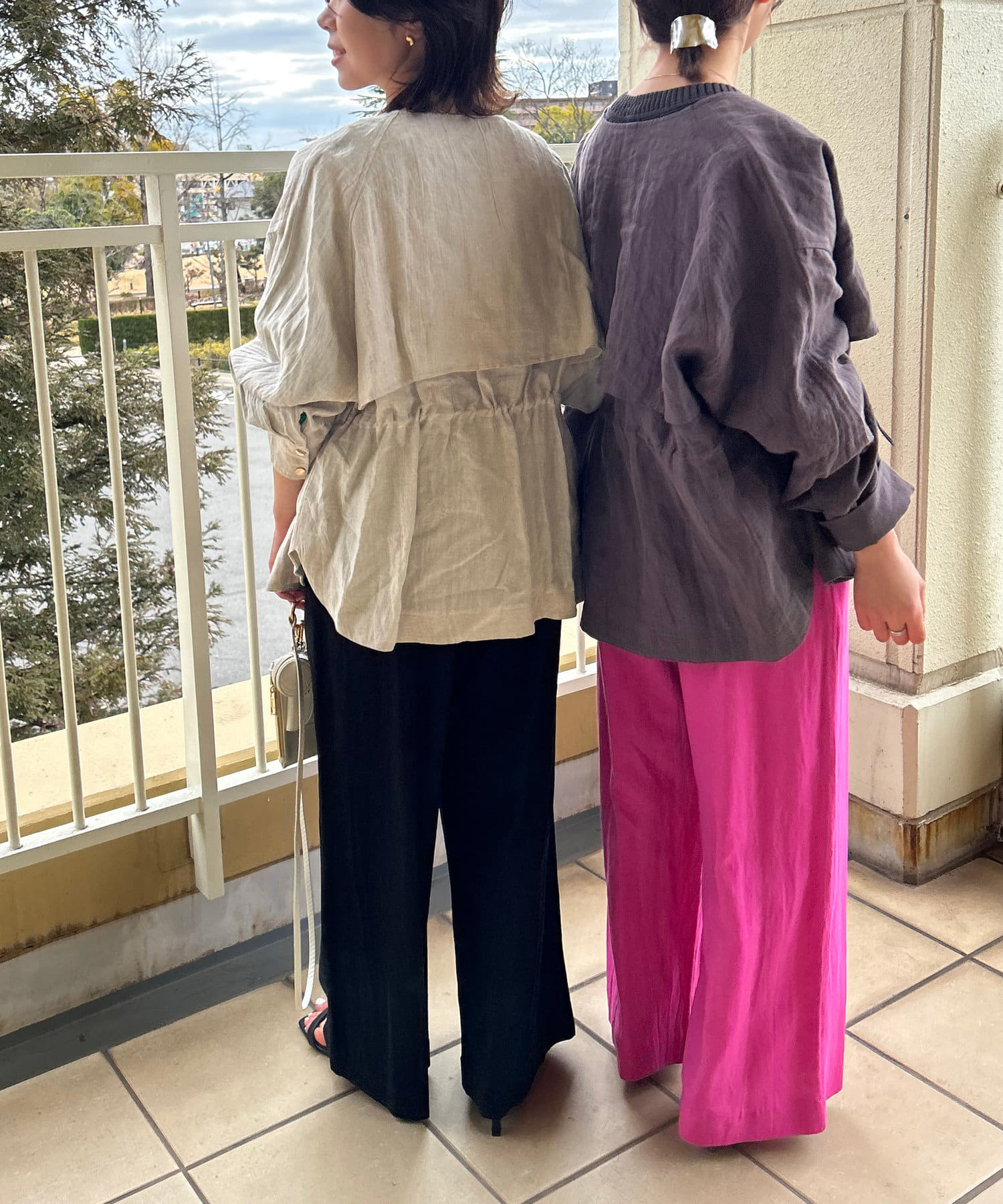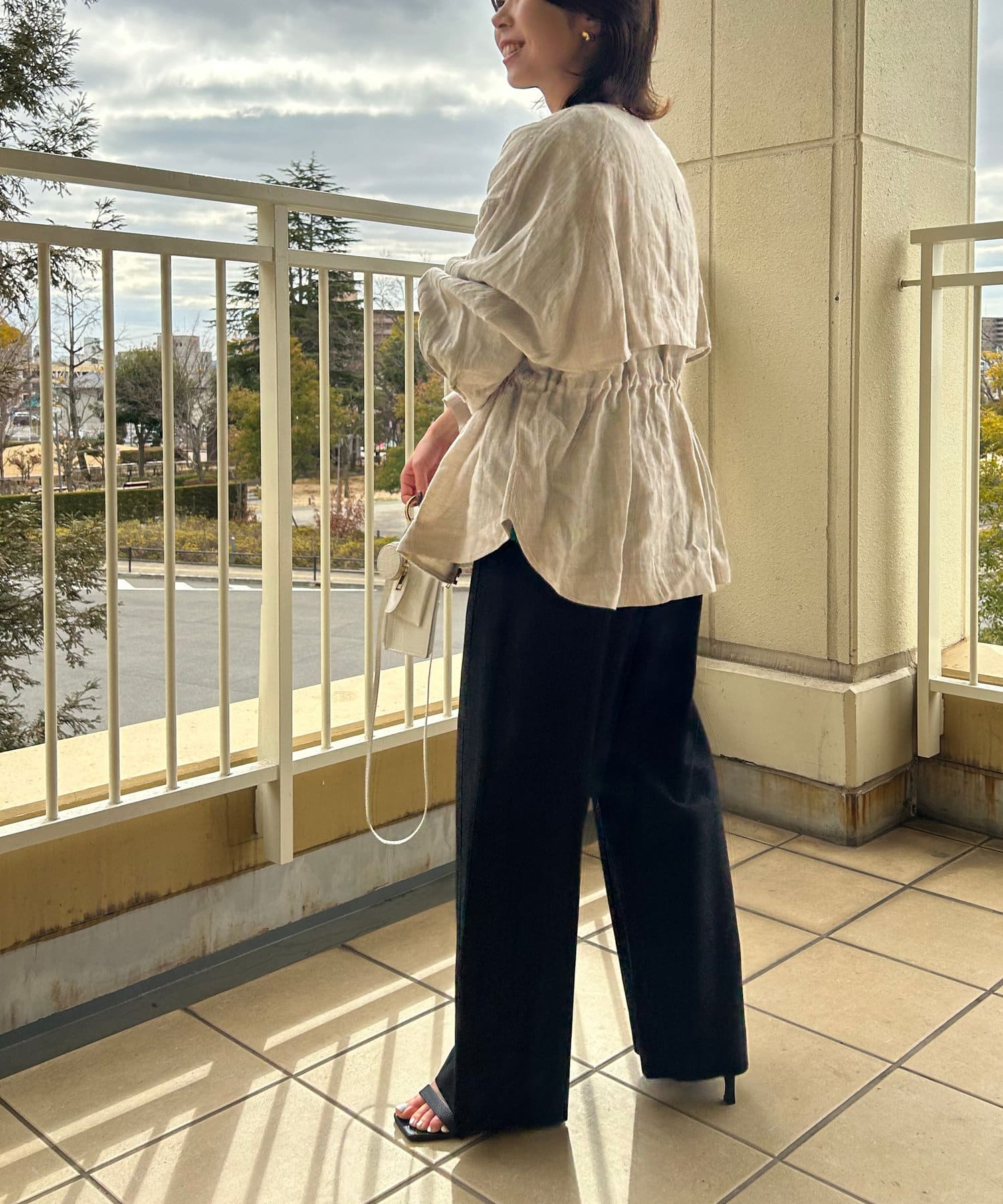 ・くったりとしたリネン素材は柔らかく、着用感もとても軽量です。