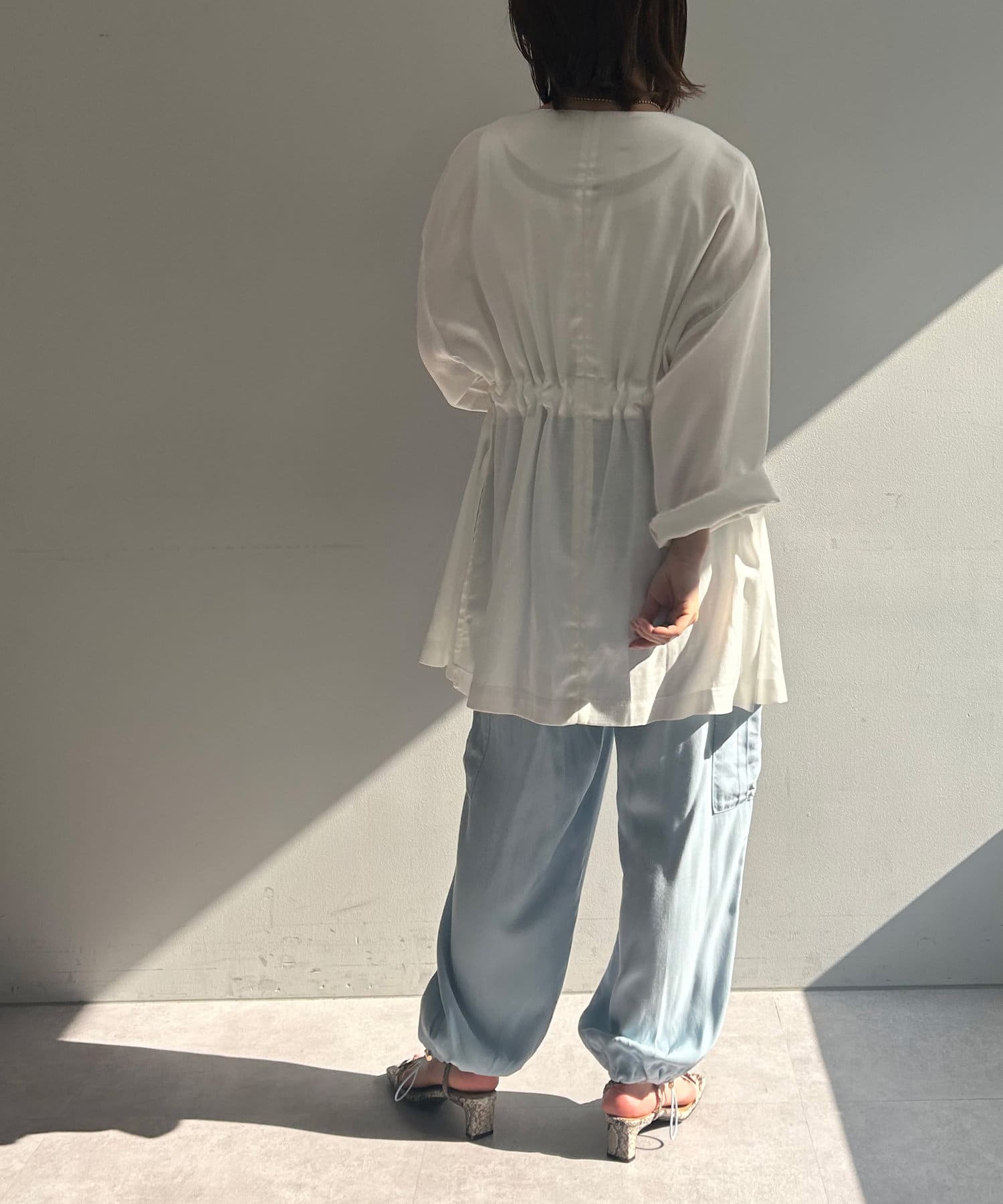 ・ウエストはリボンで調節可能。お好みのギャザーを楽しんで頂けます。