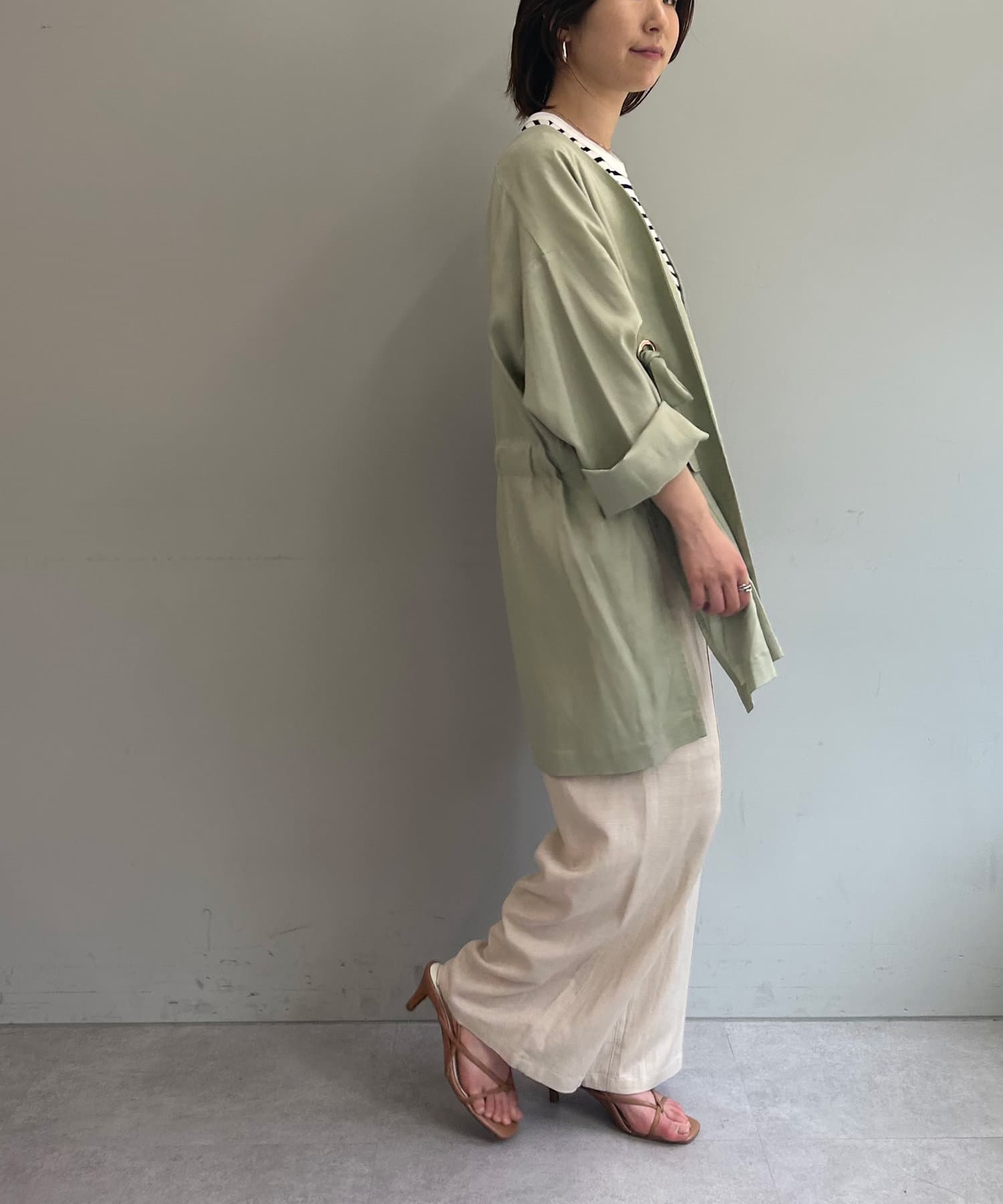 ・清涼感あふれるリネン混素材で、夏場まで活躍する万能コート。