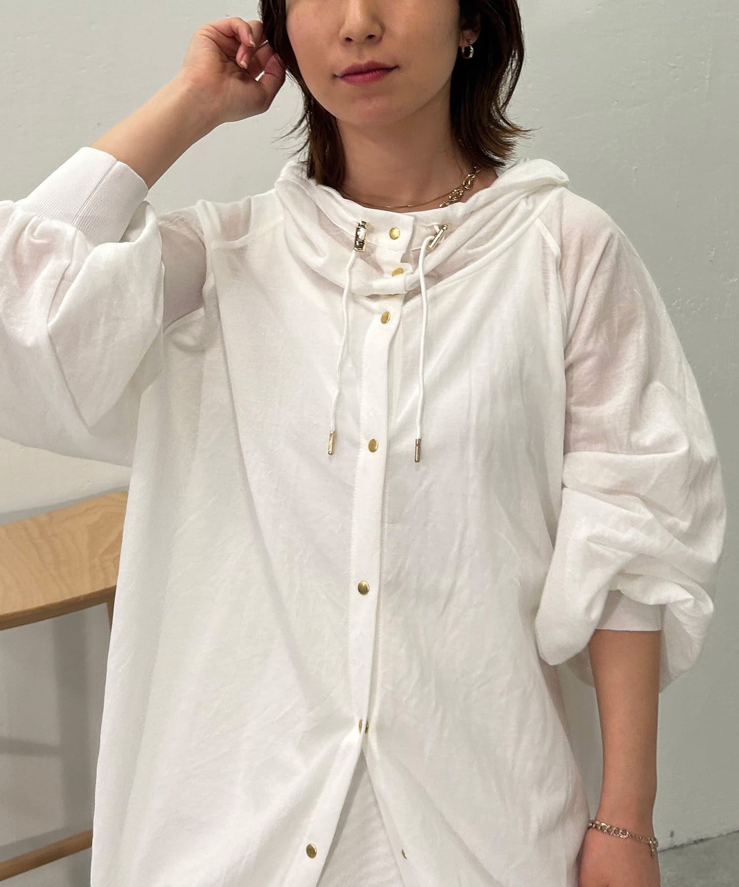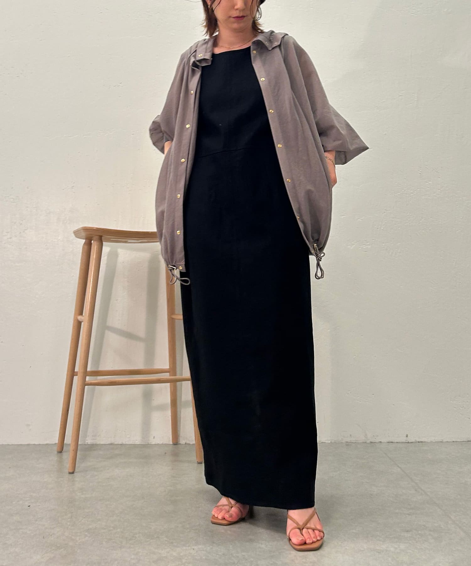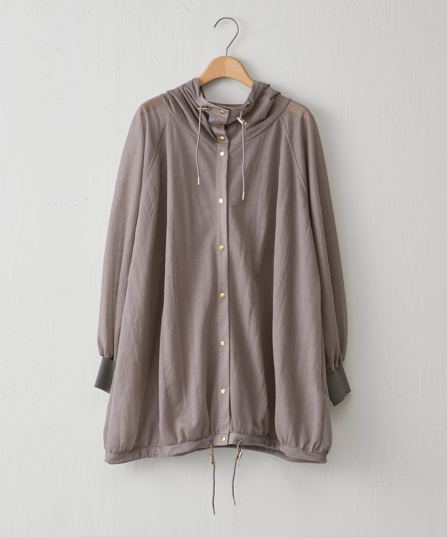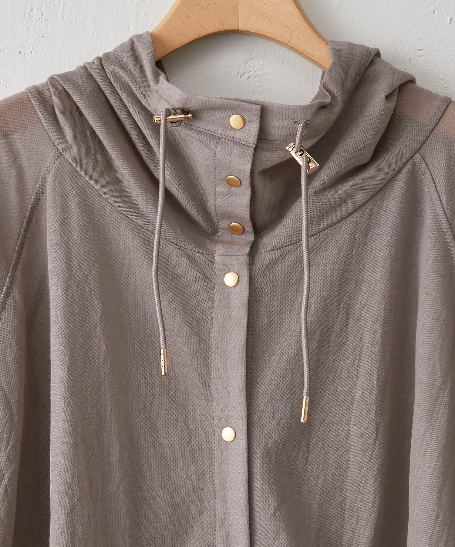 ・スナップボタンで開け閉めしやすく前を開けて羽織でも、閉じてアノラック風に着るのもおすすめです。