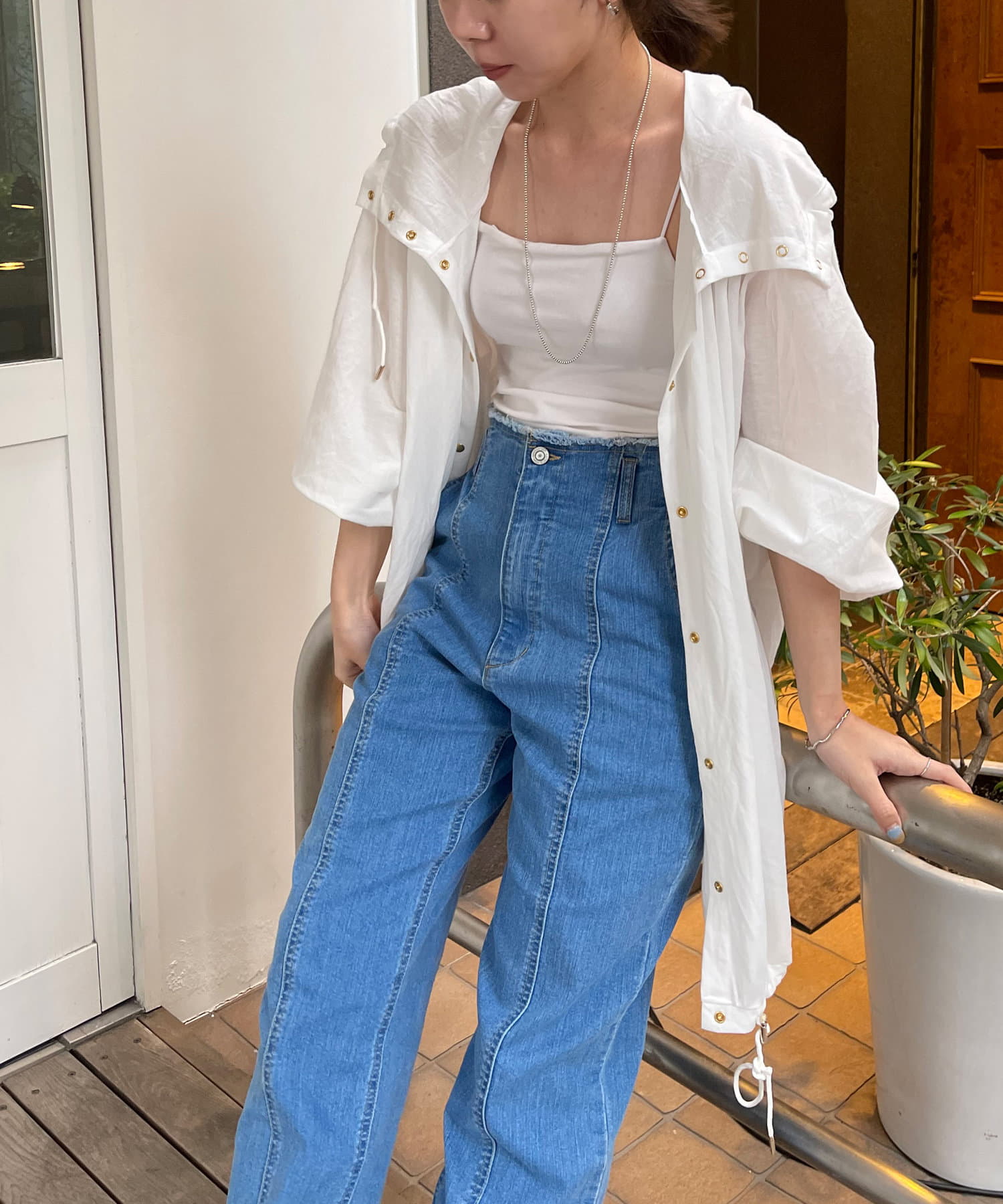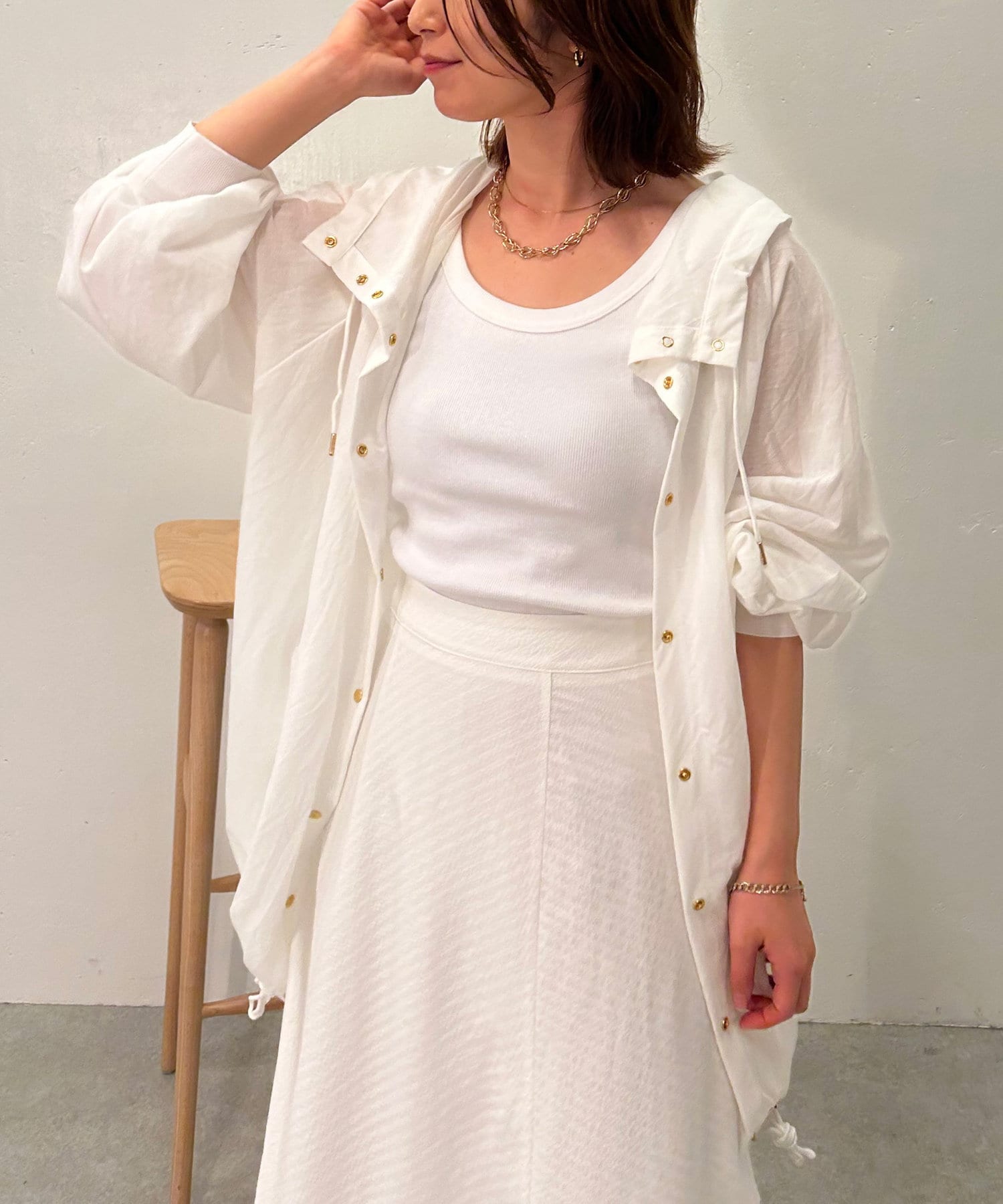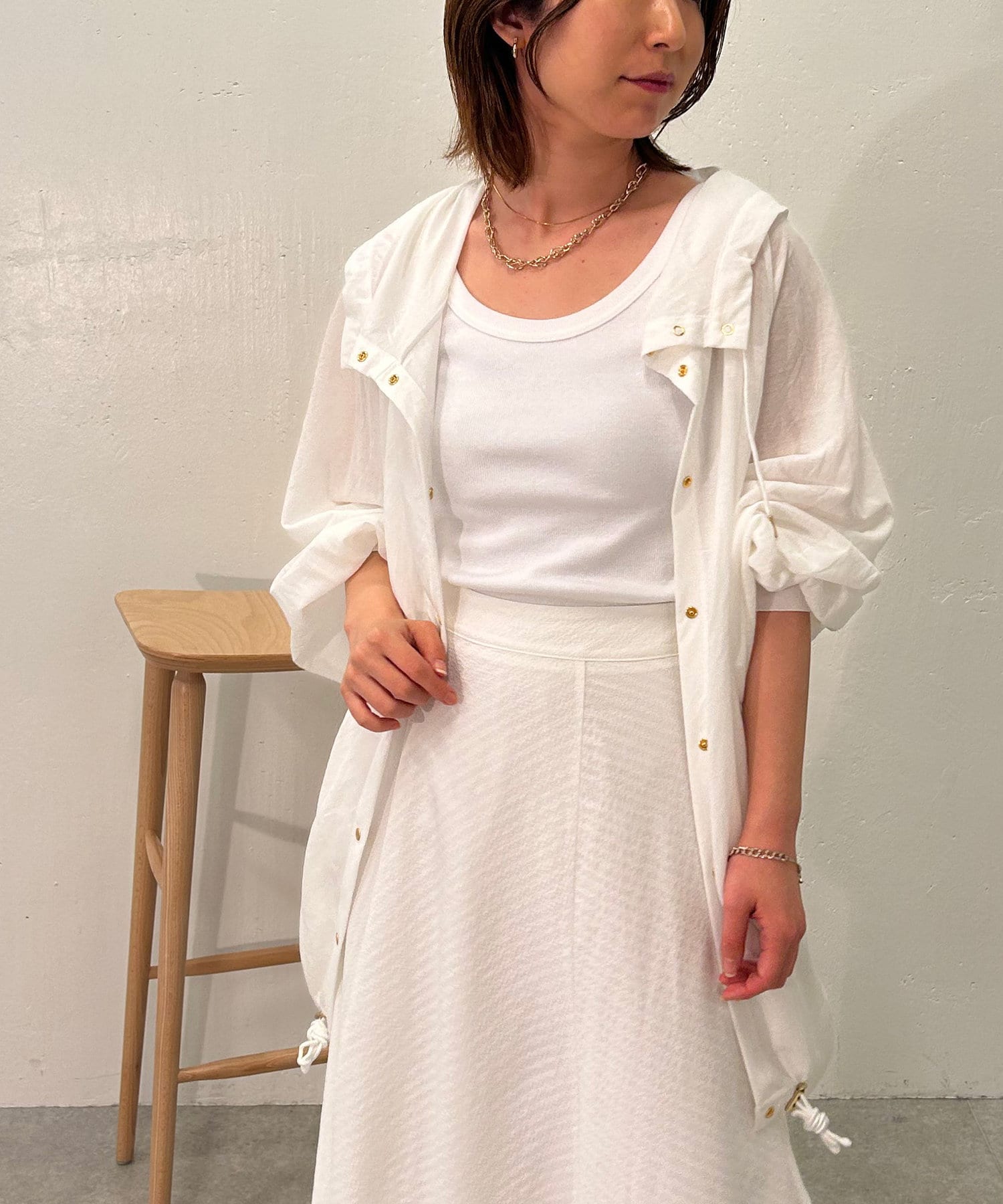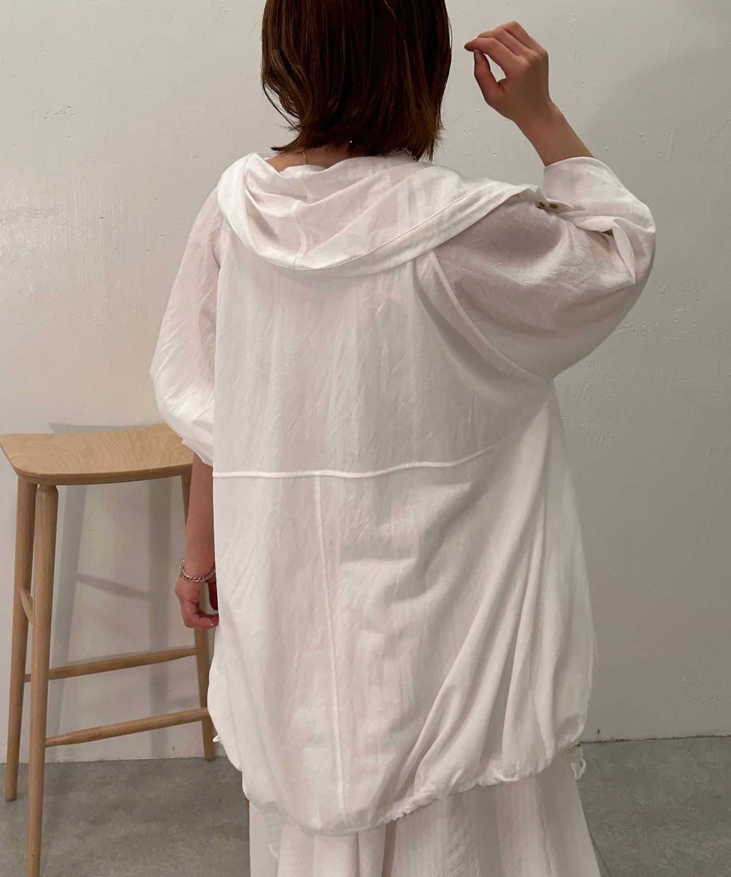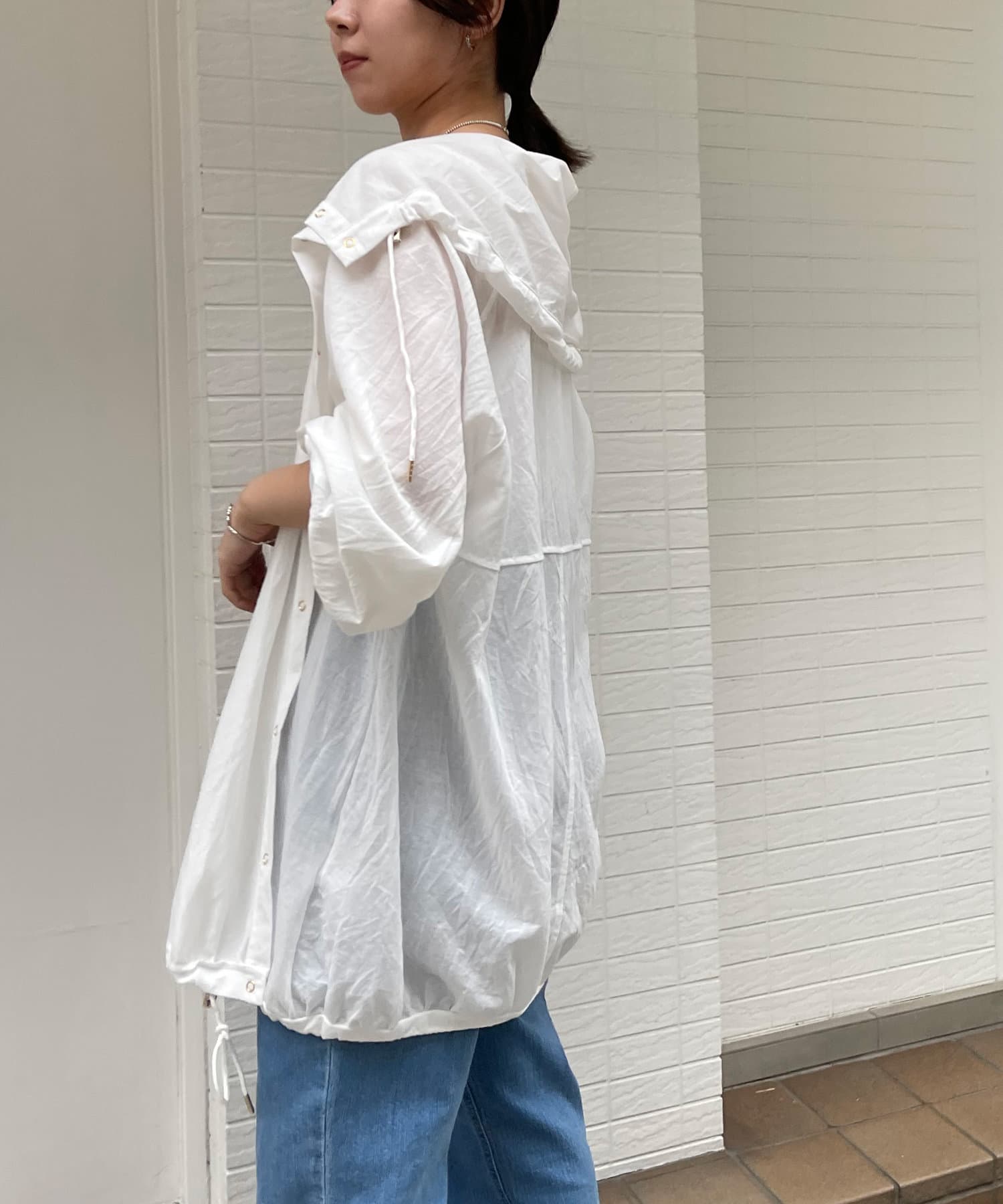 ・スナップボタンで開け閉めしやすく前を開けて羽織でも、閉じてアノラック風に着るのもおすすめです。