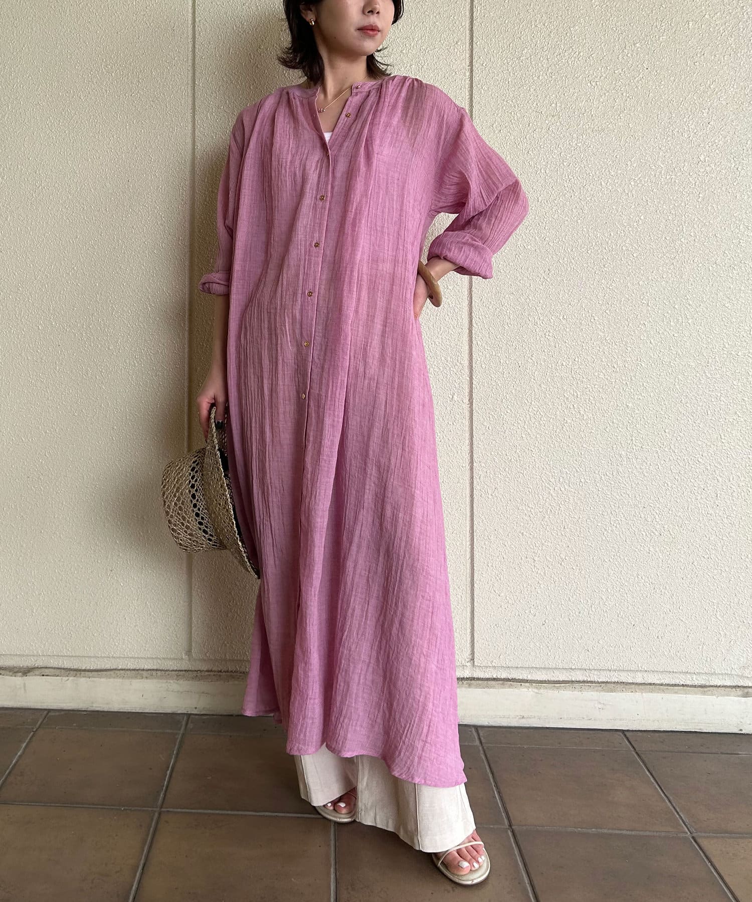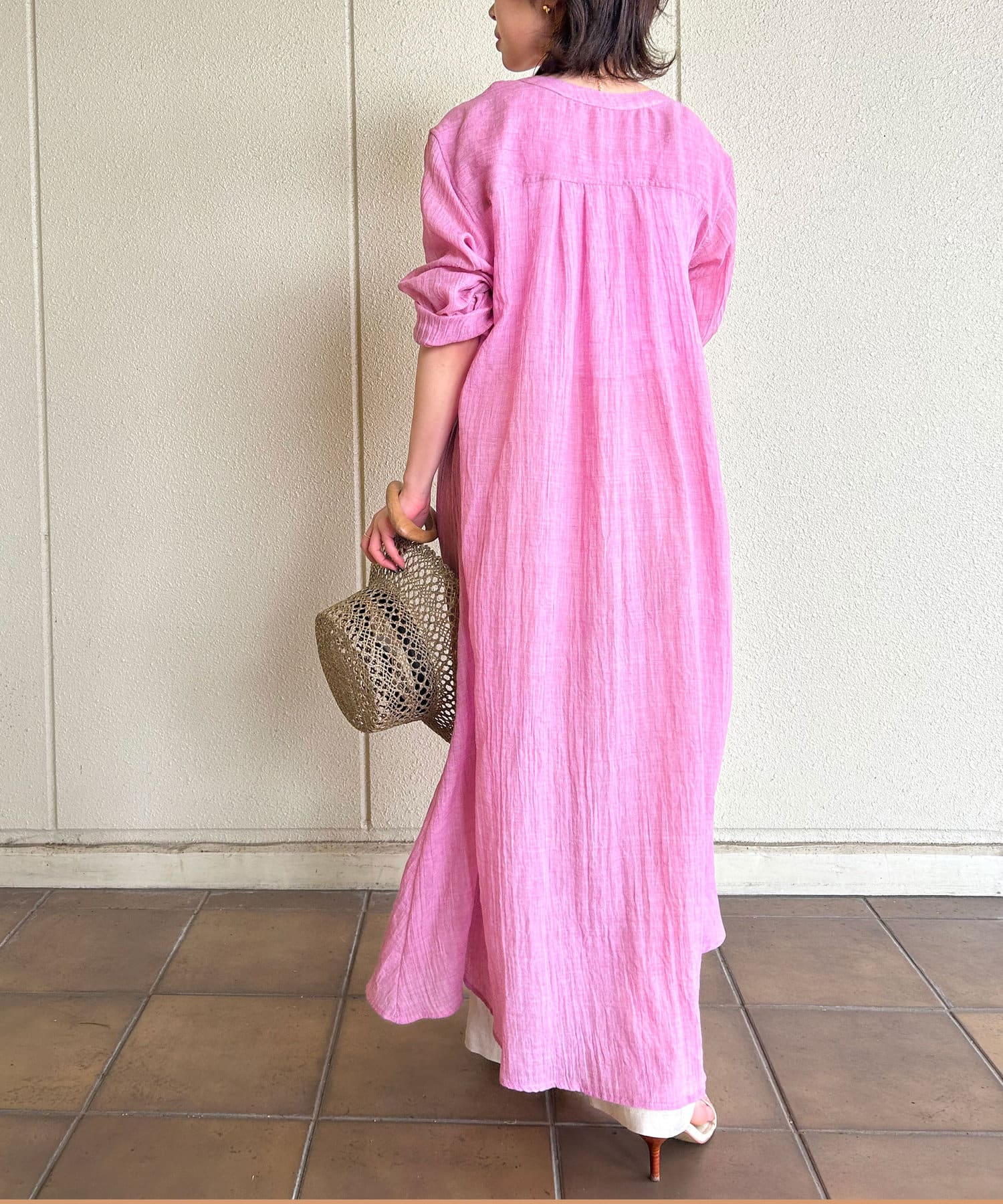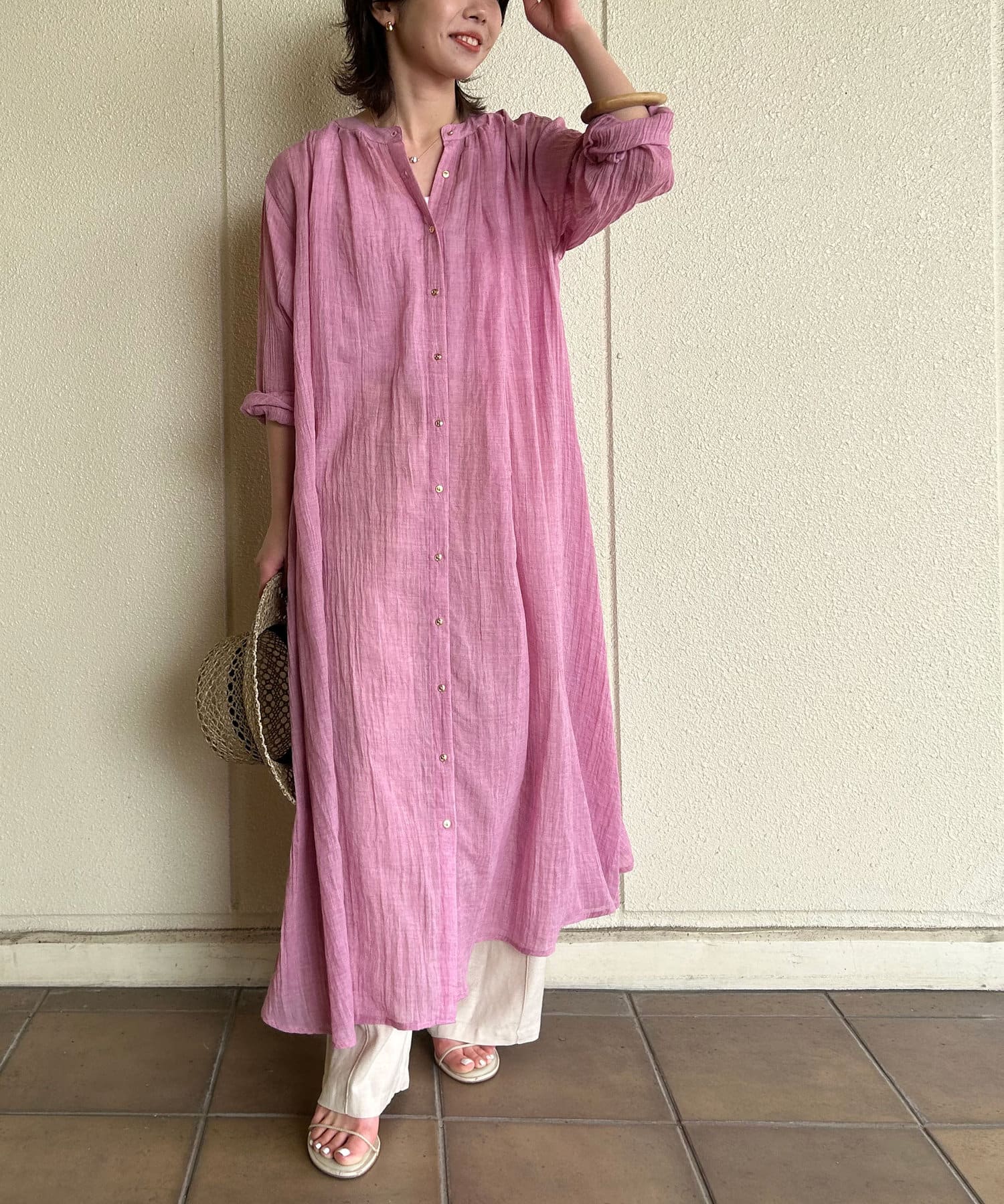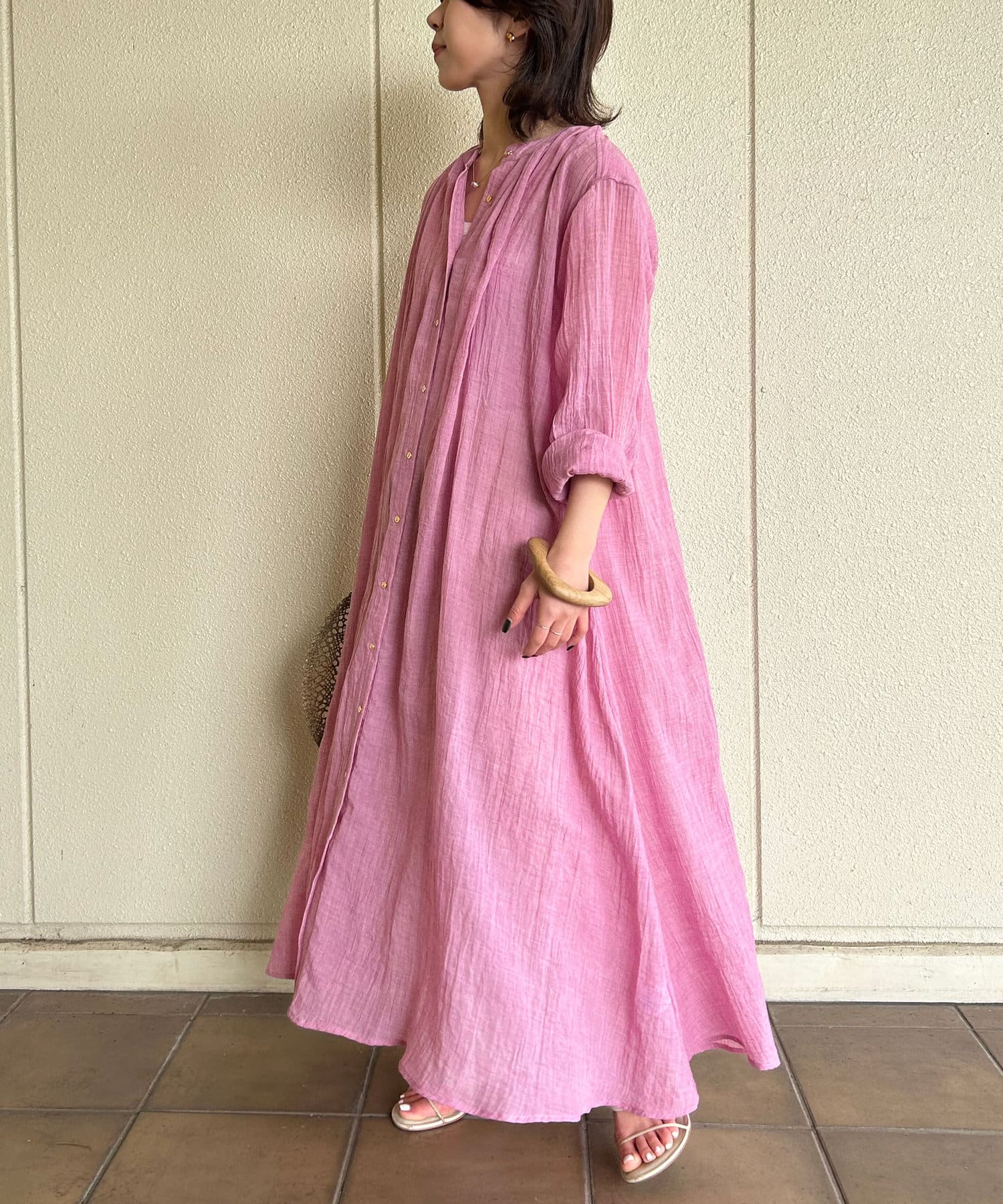 【軽やかな着心地】プチボタンガーゼロングワンピース