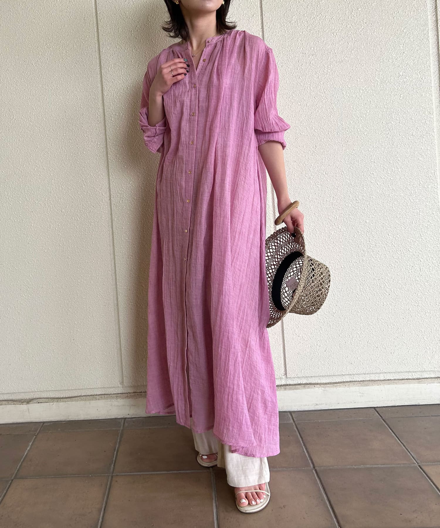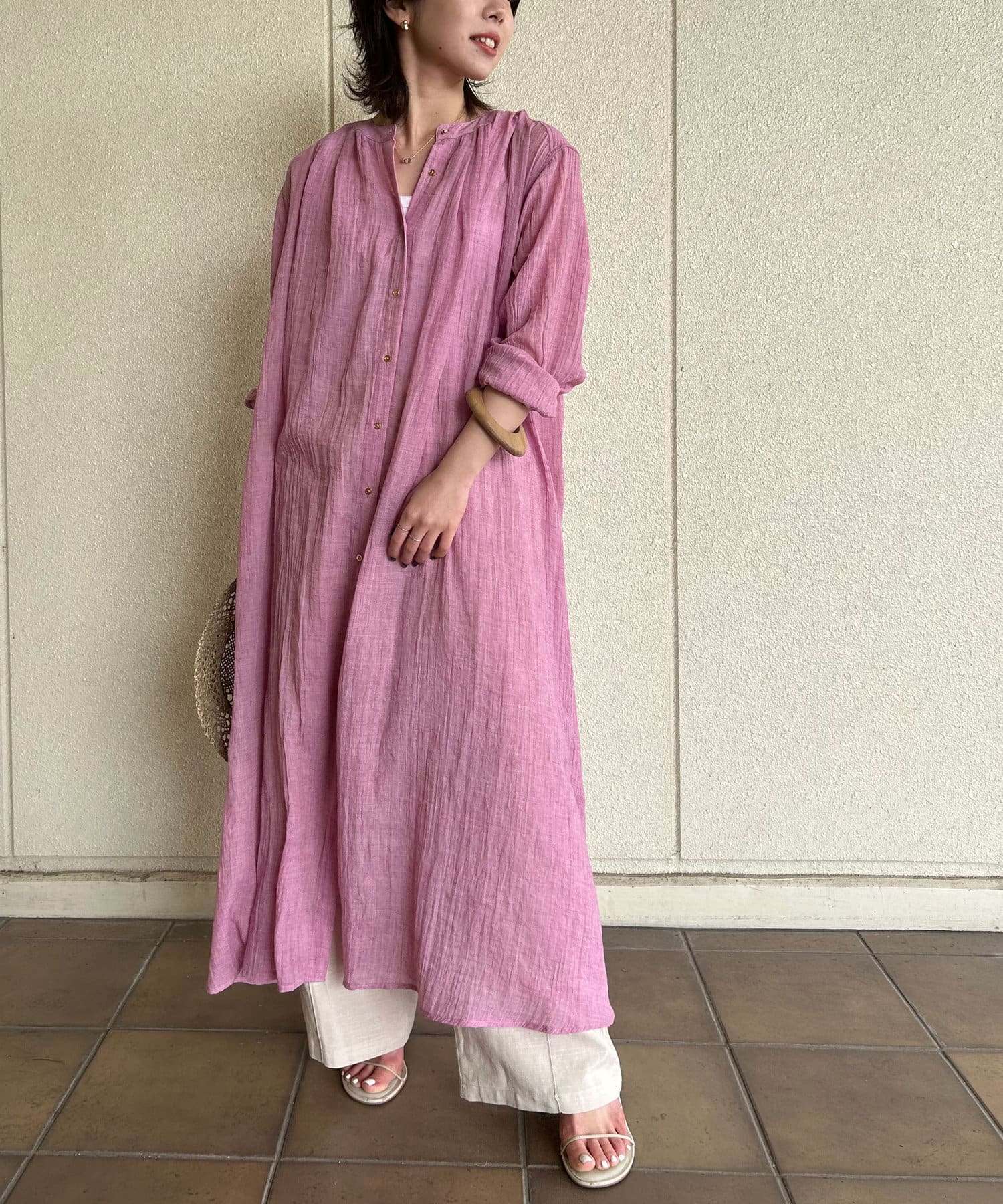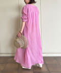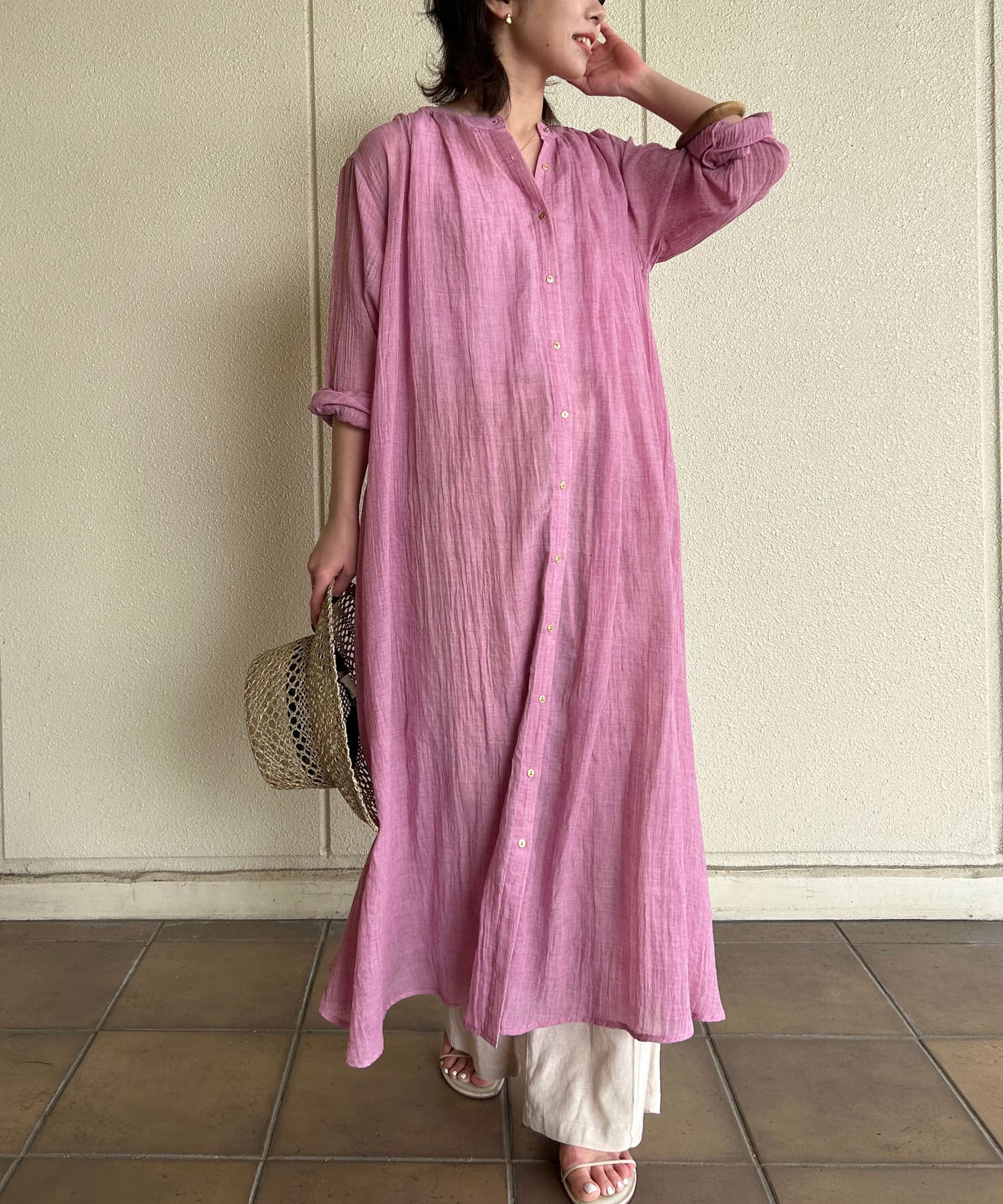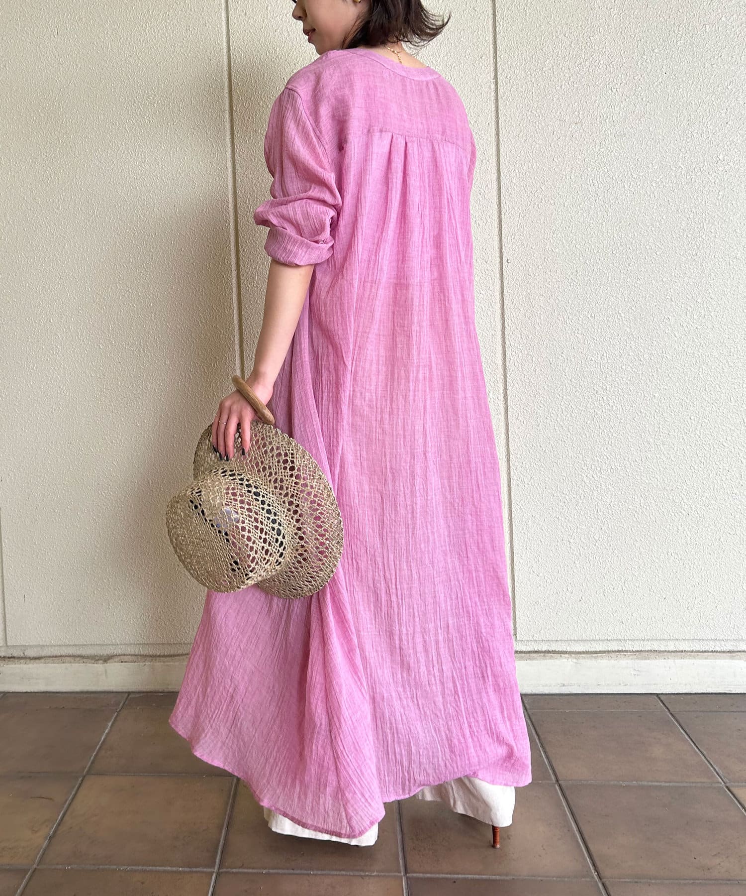 【軽やかな着心地】プチボタンガーゼロングワンピース