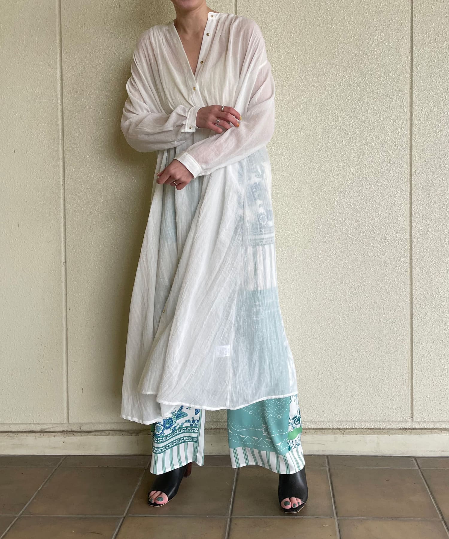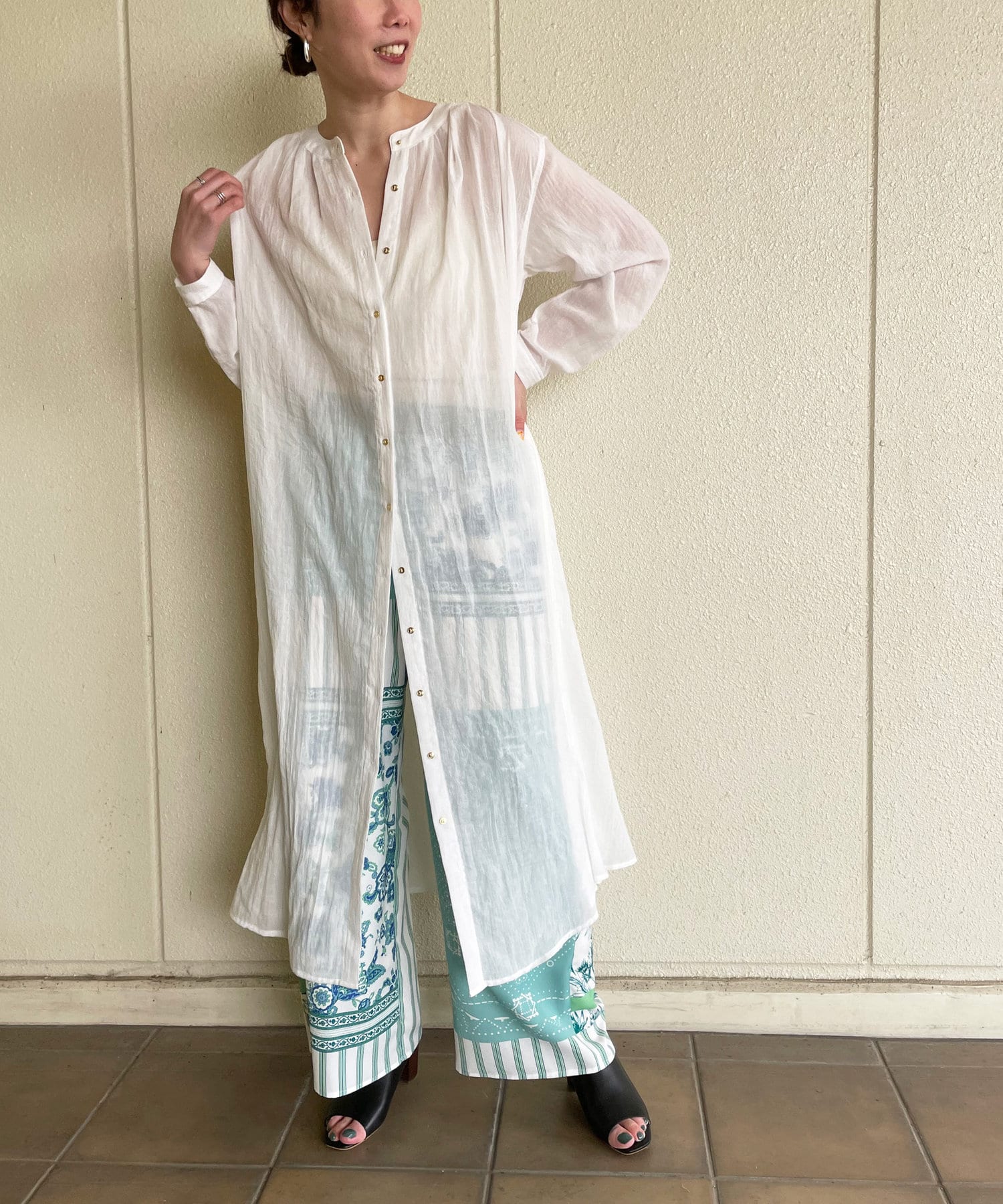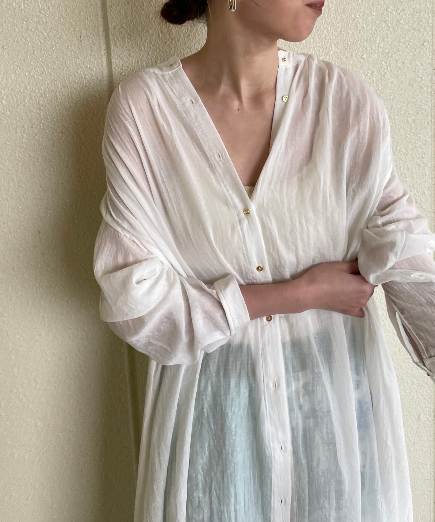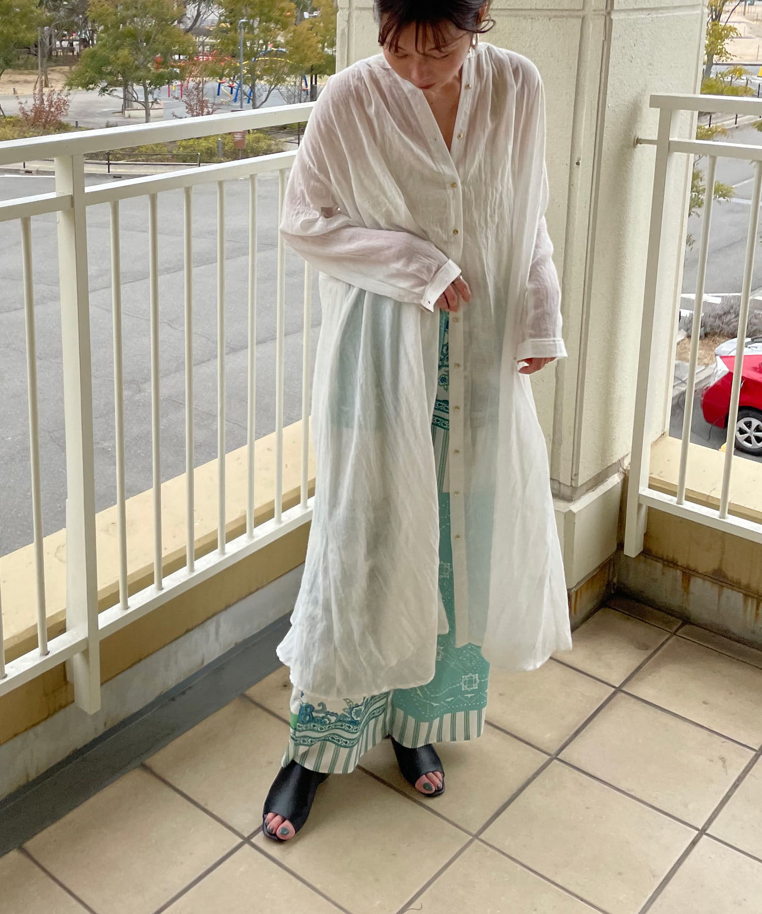 【軽やかな着心地】プチボタンガーゼロングワンピース