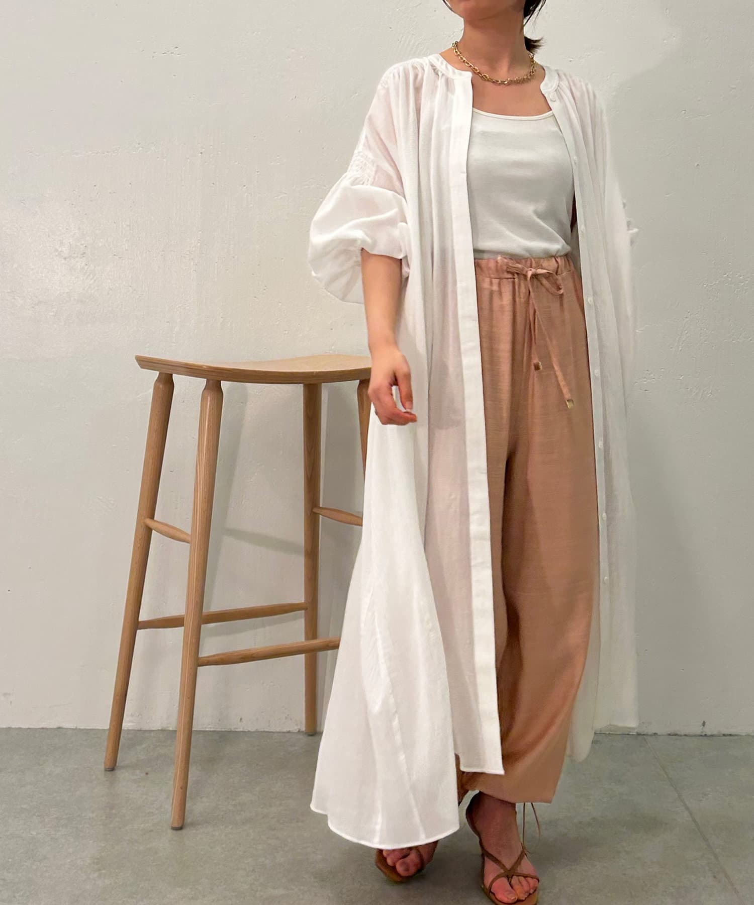 ・リネンライクなさらっとした肌触りと表面感のある素材で清涼感のある一枚。