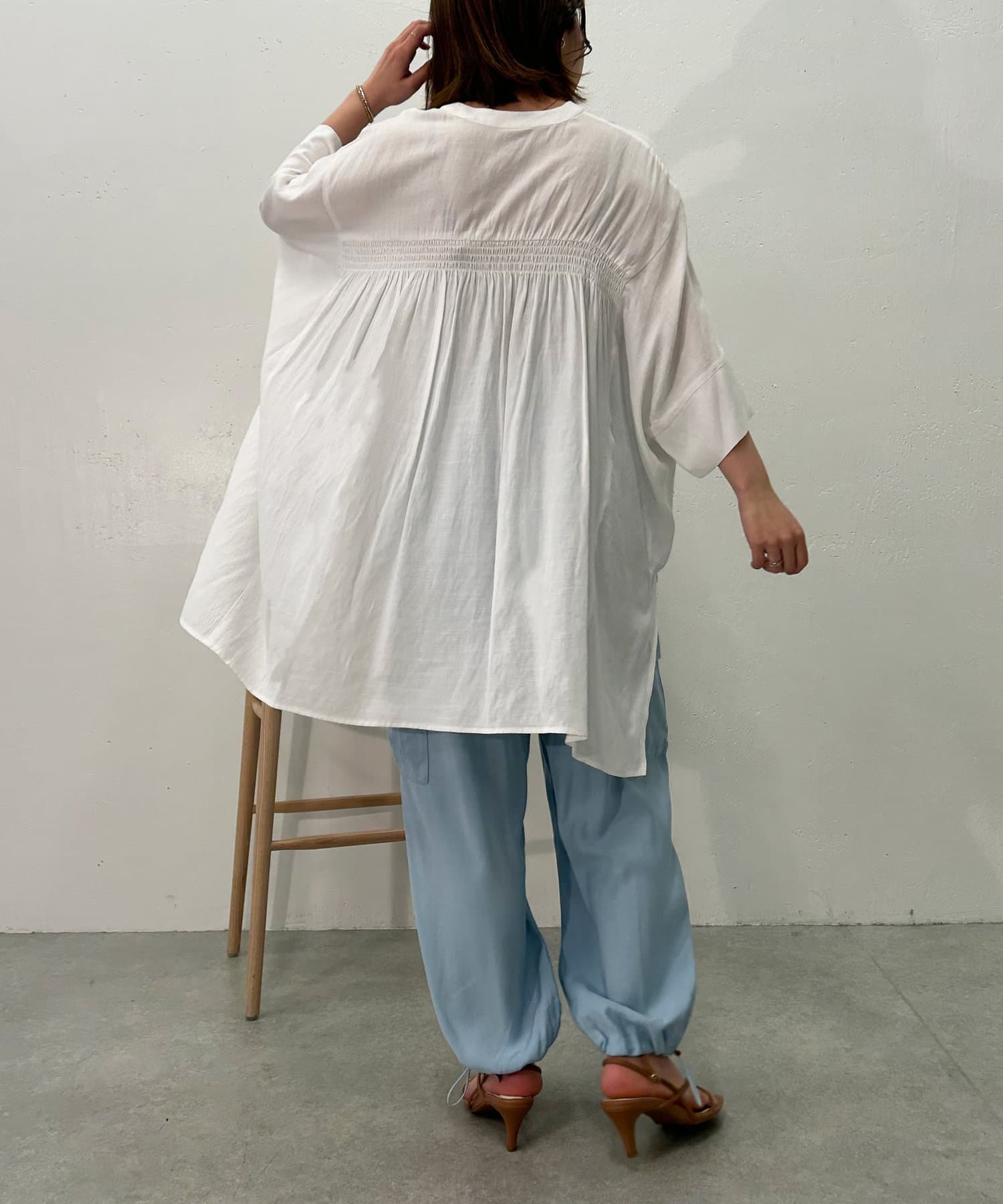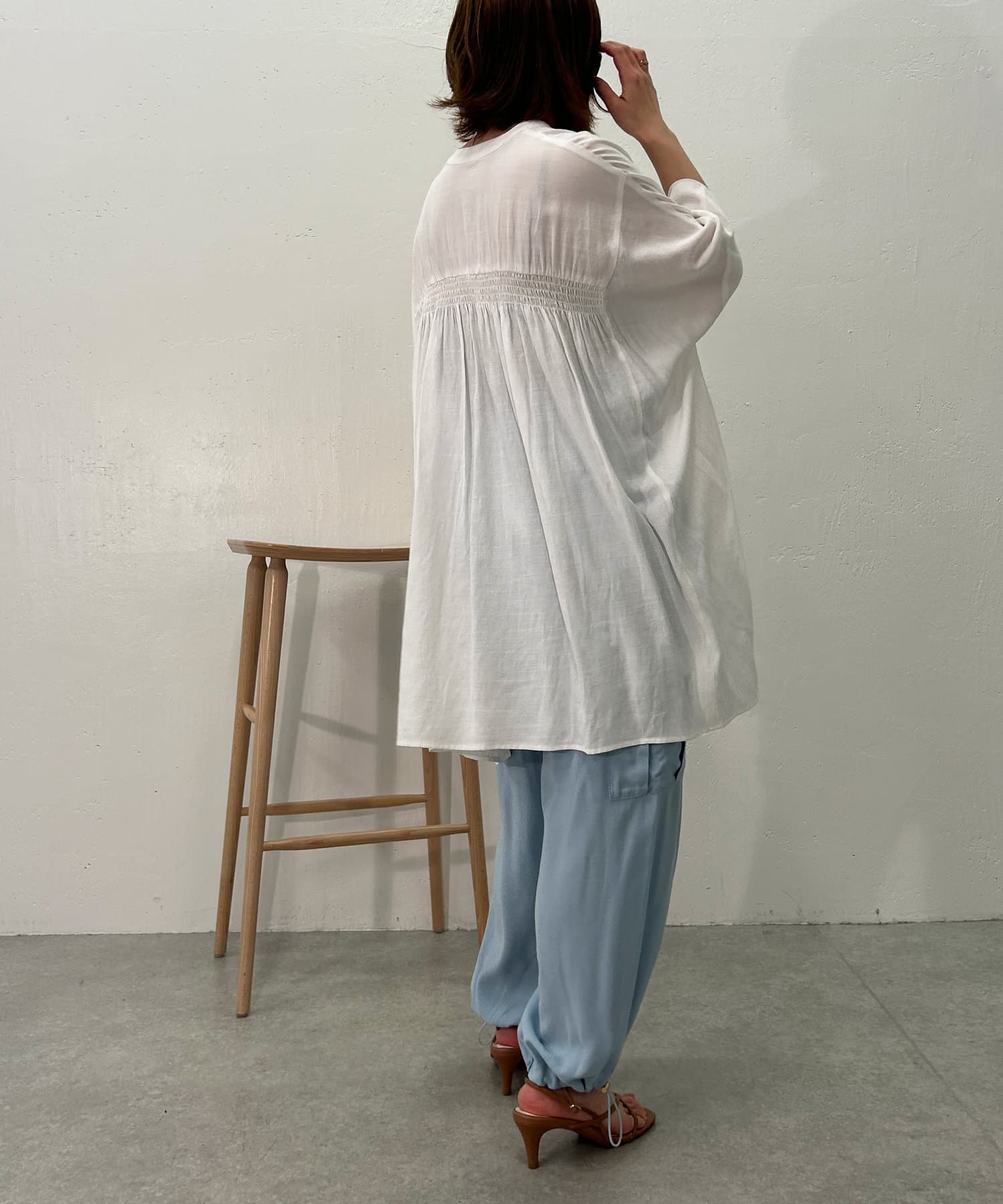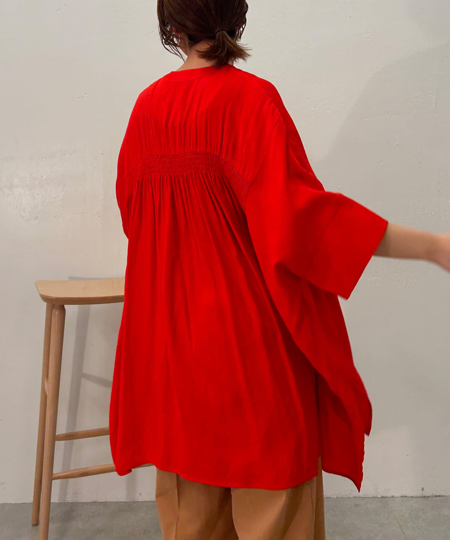 ・シンプルながらもシャーリングデザインがポイントに女性らしい印象でお召いただけます。