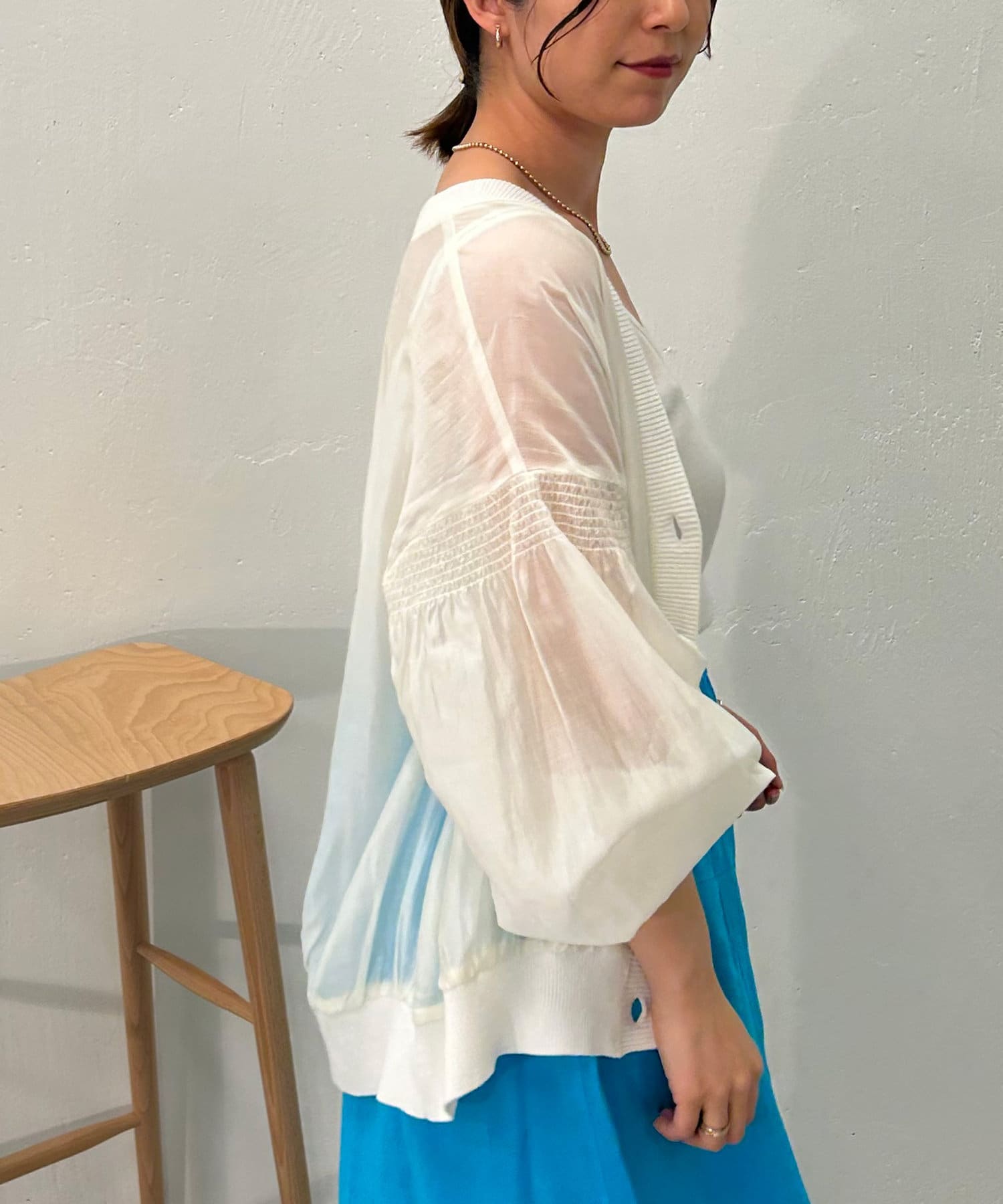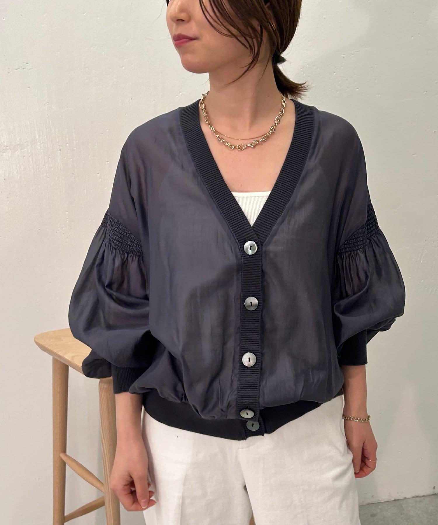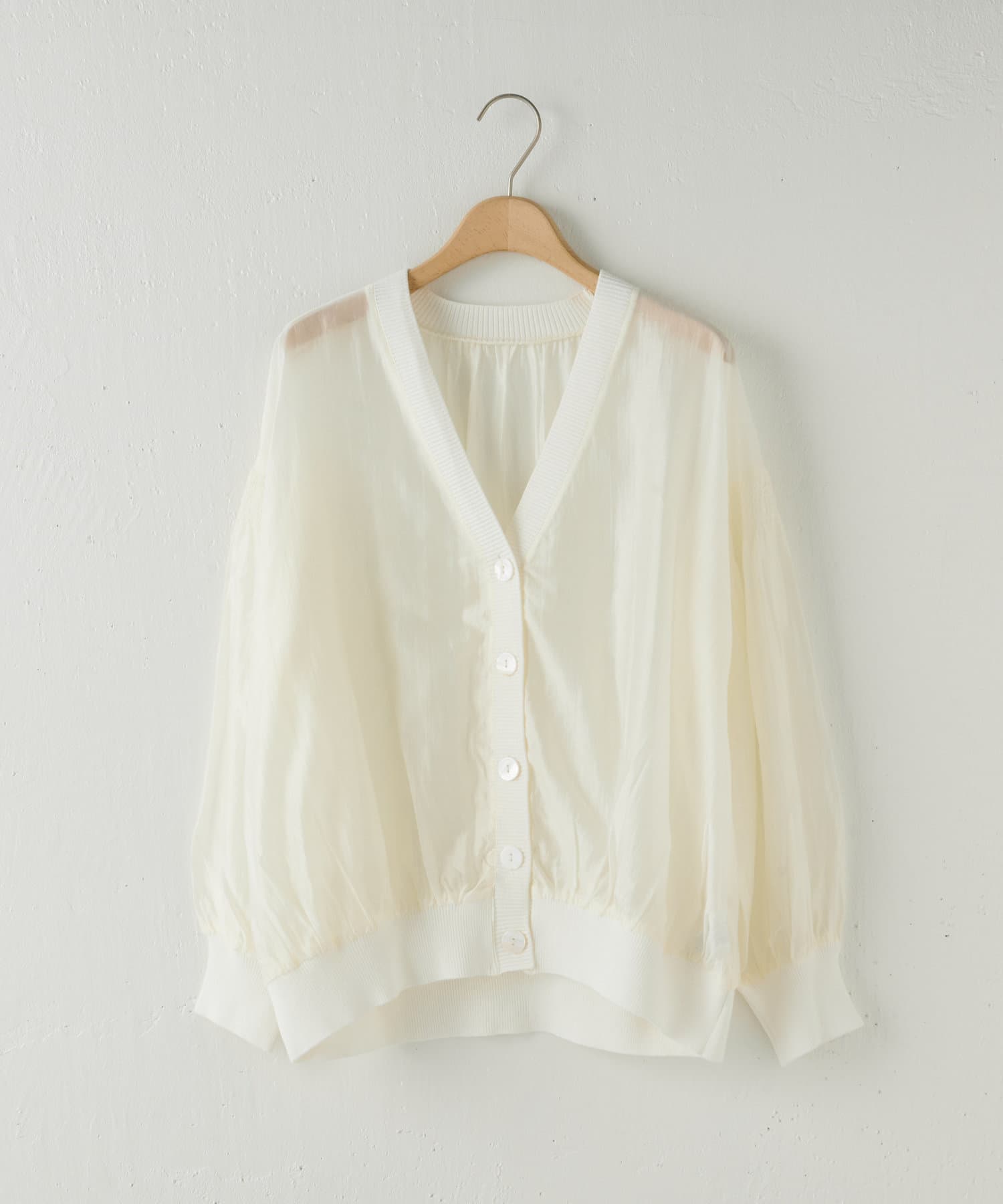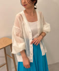 【上品な透け感アイテム】シャーリングシアーカーディガン