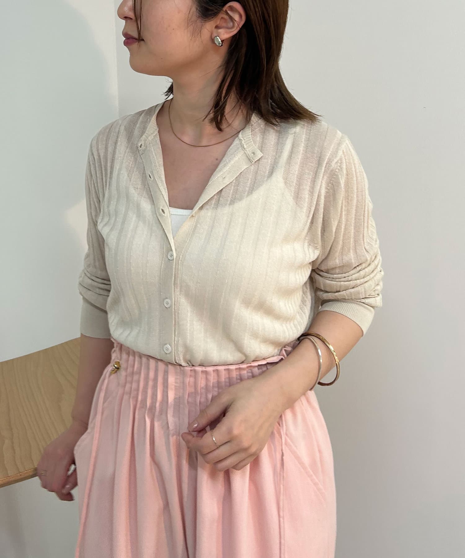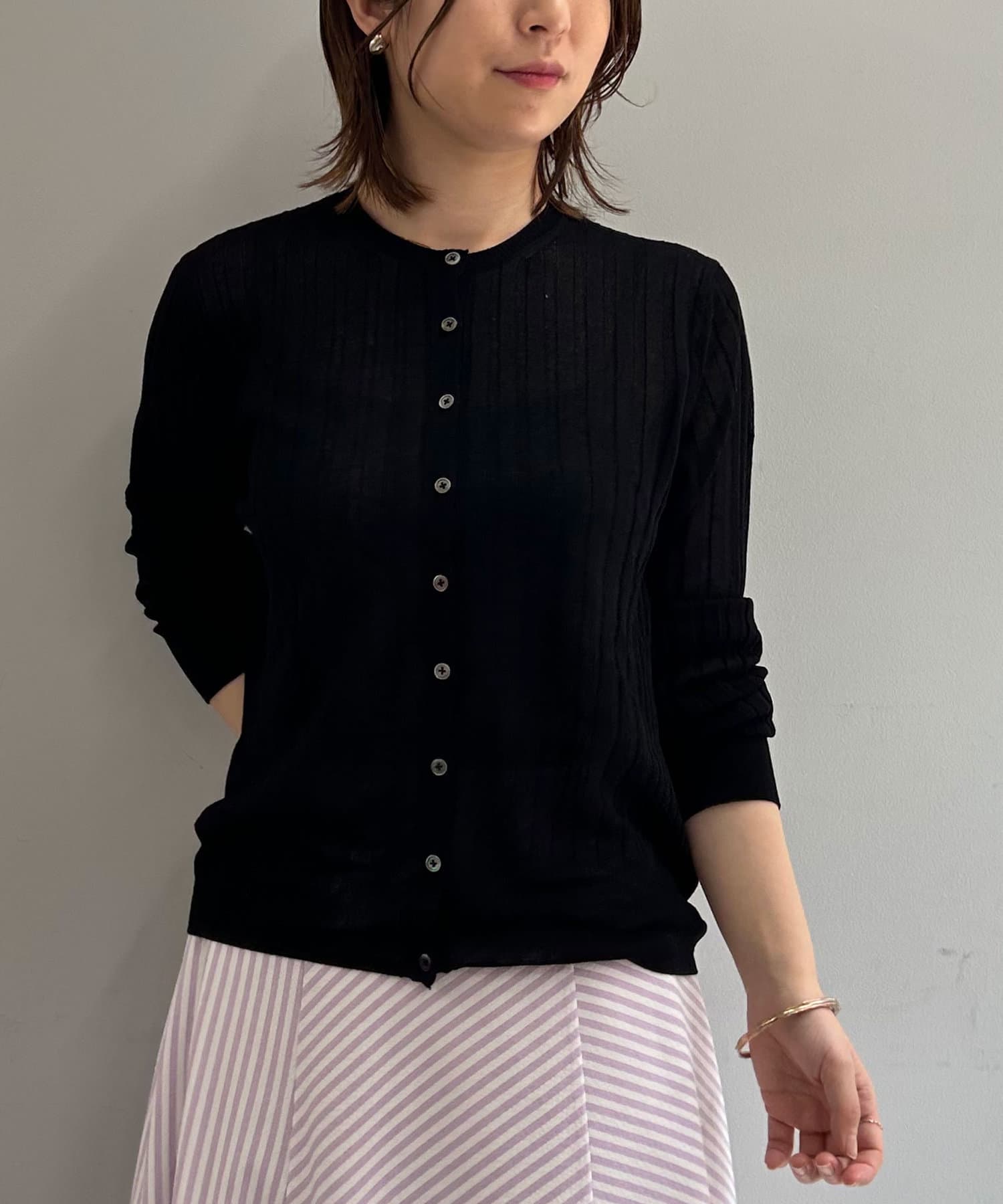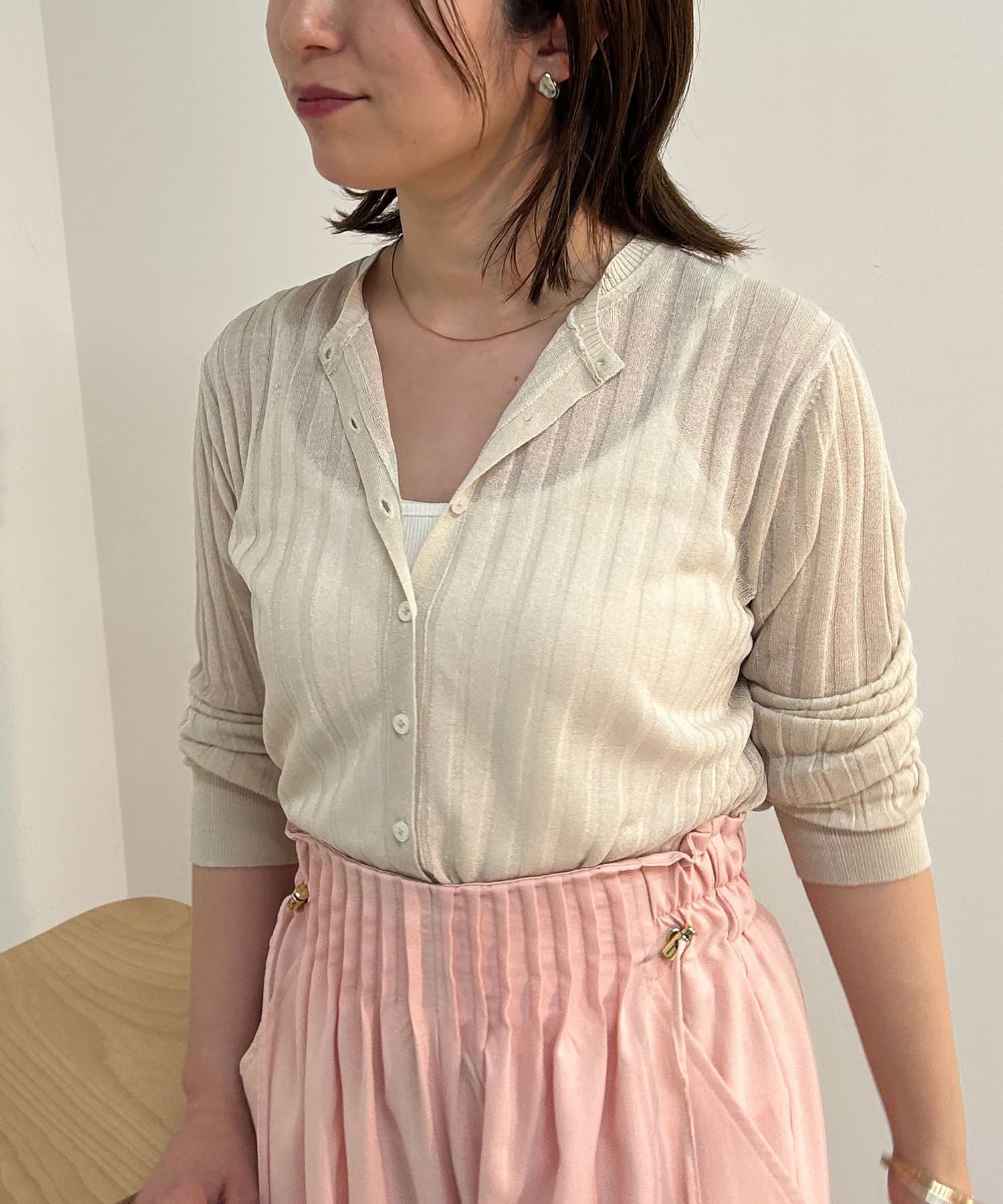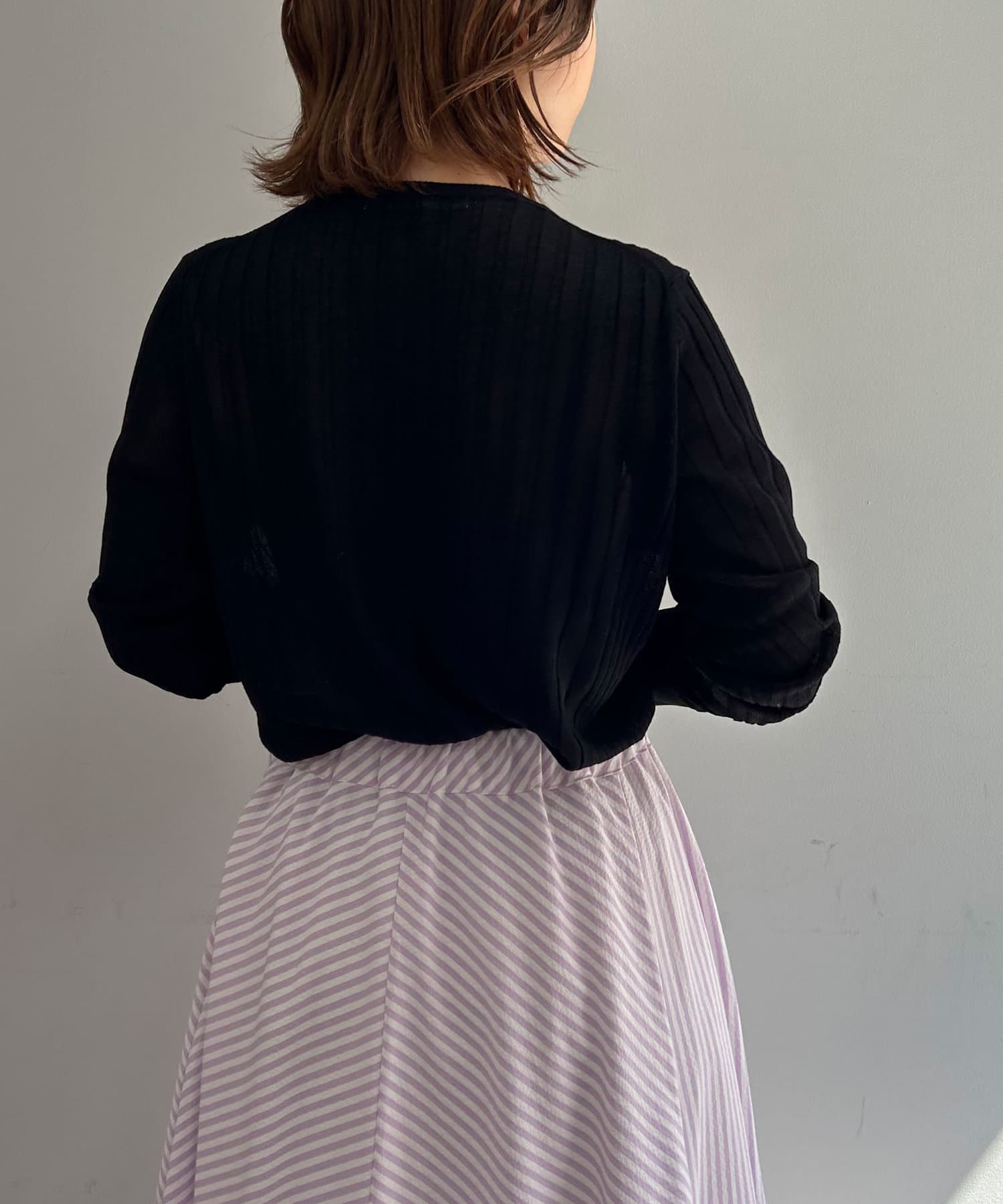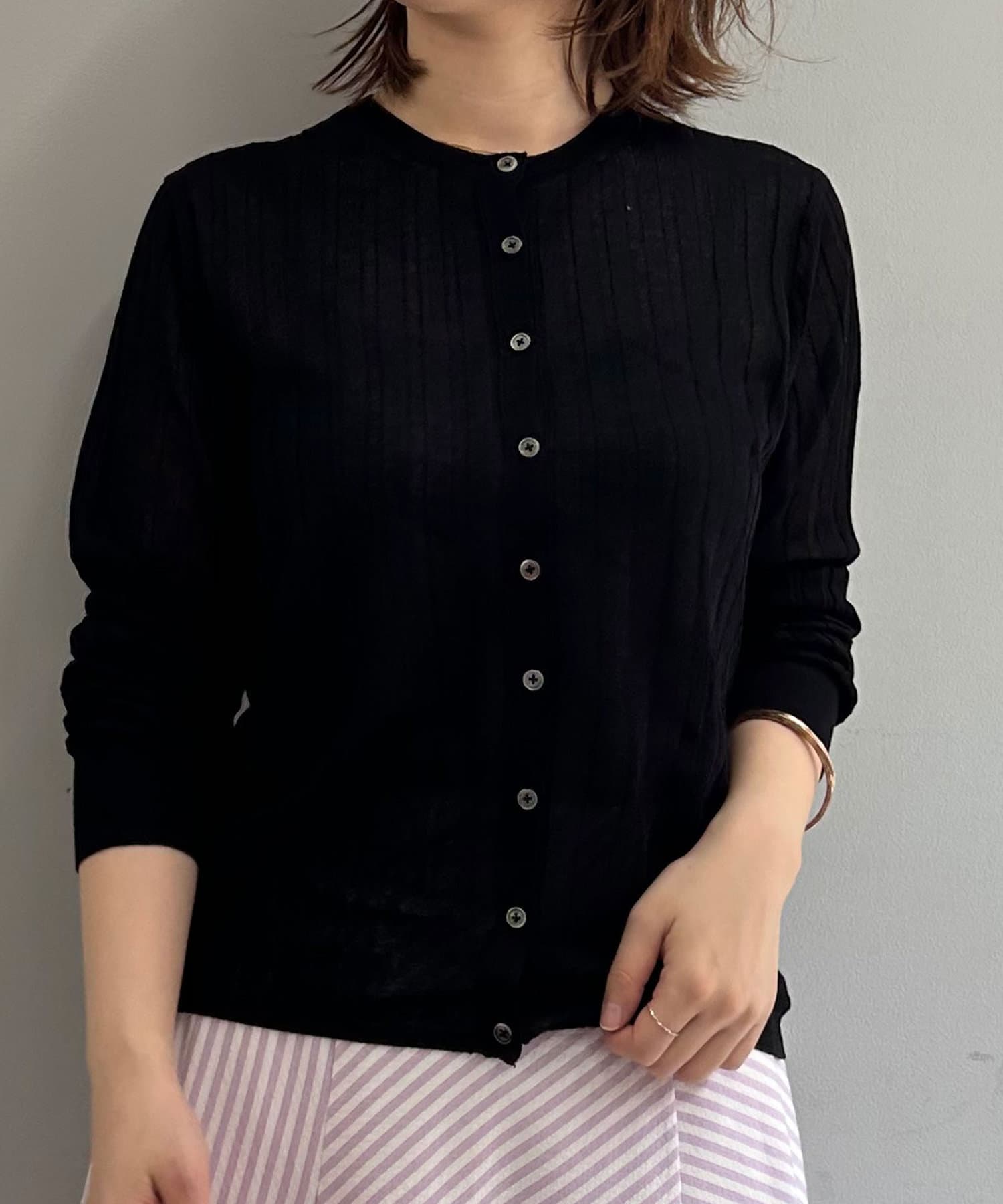 ・リブ編みになった薄手のサマーニットカーディガン。