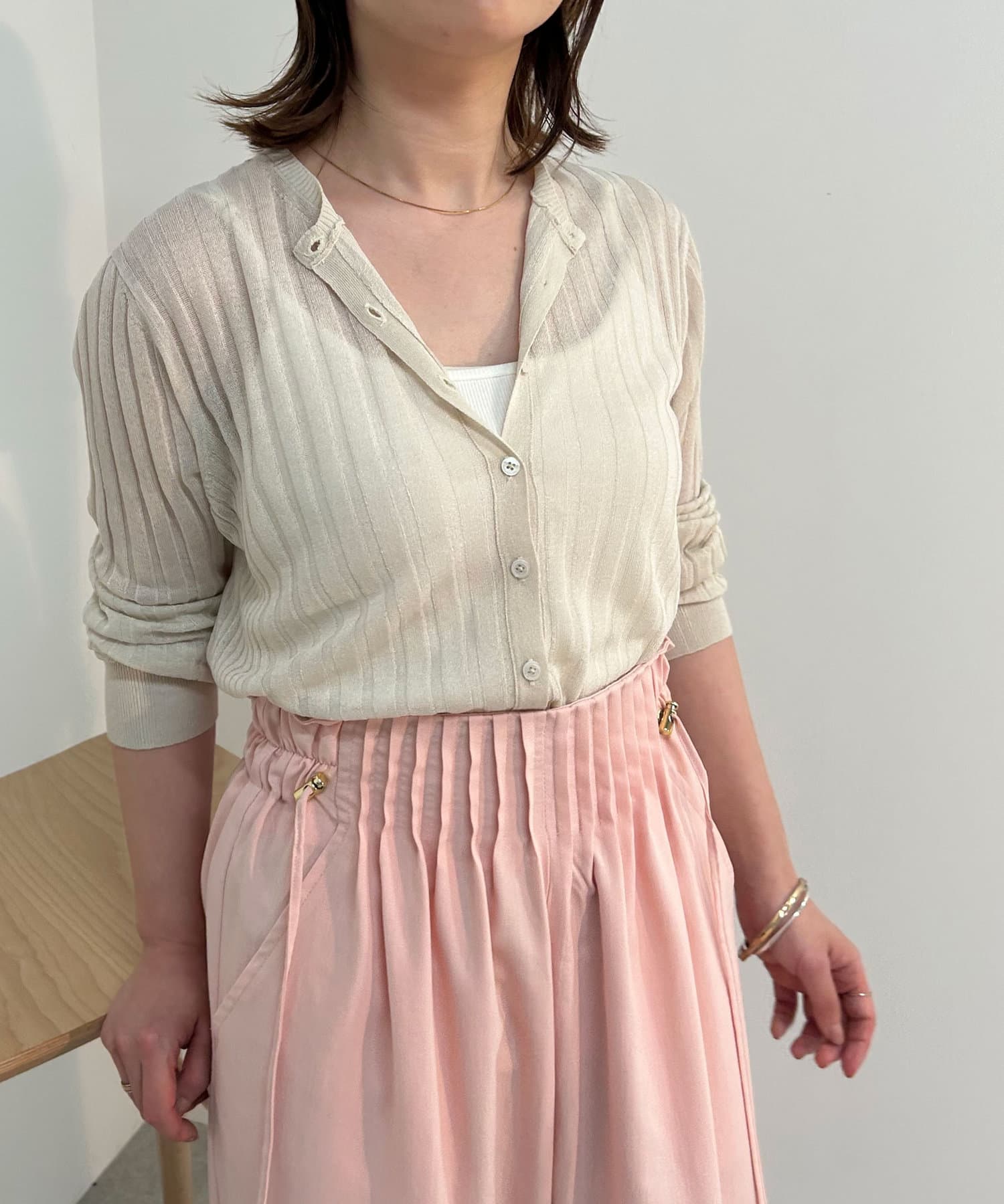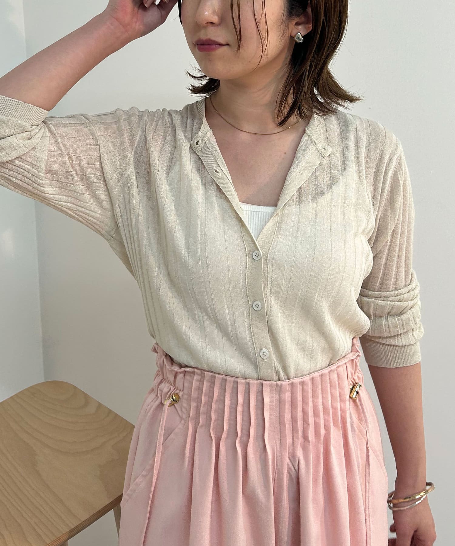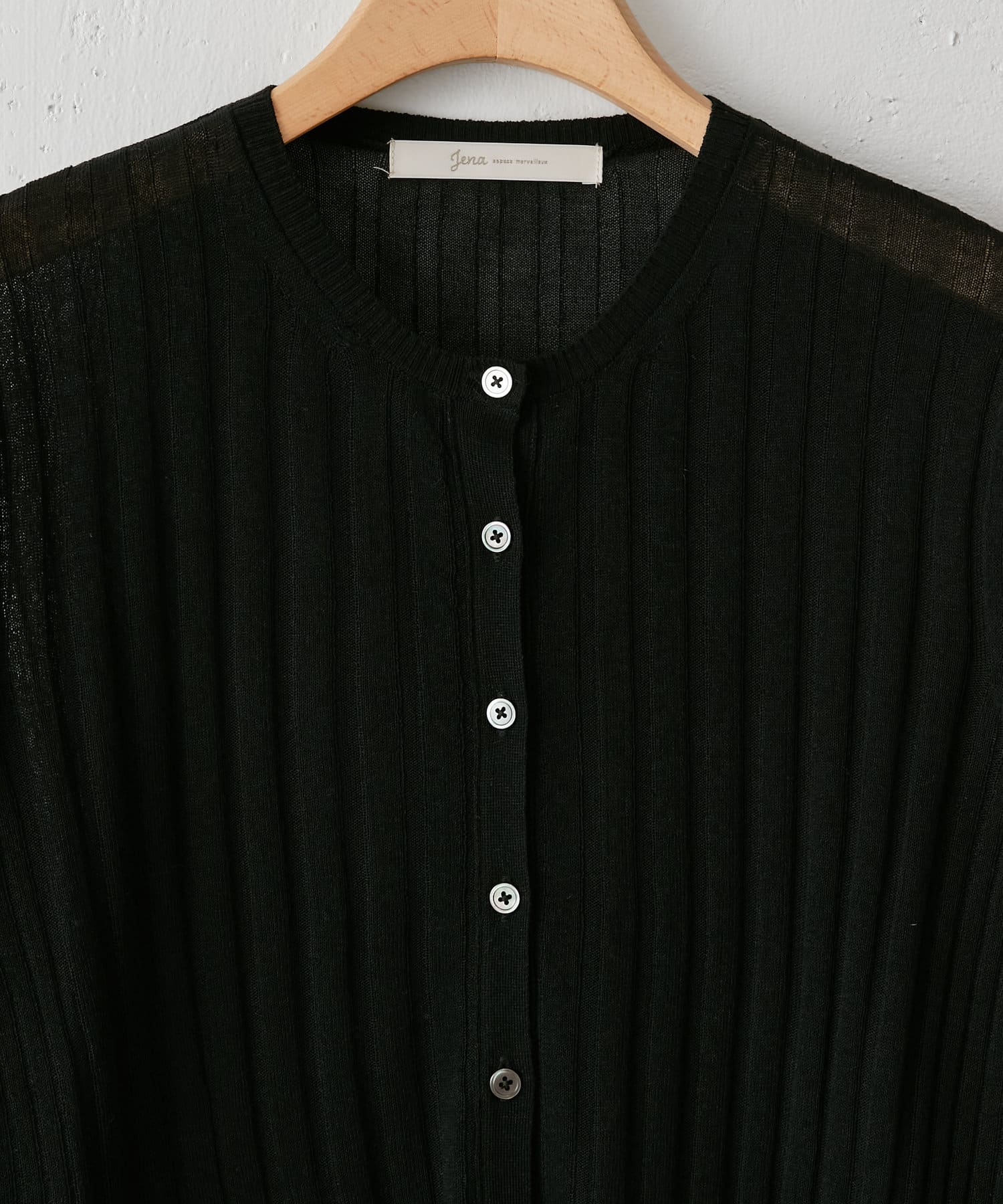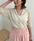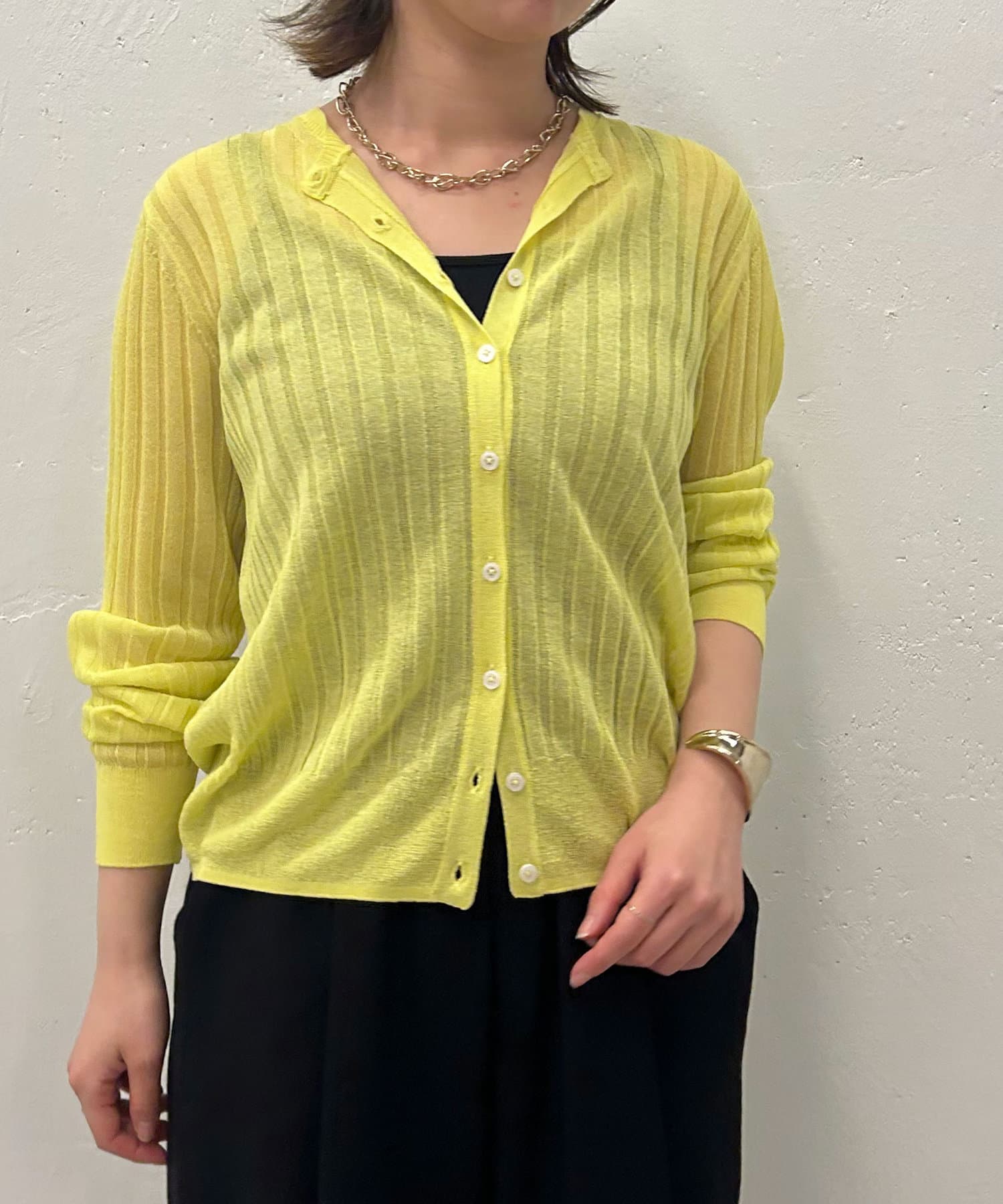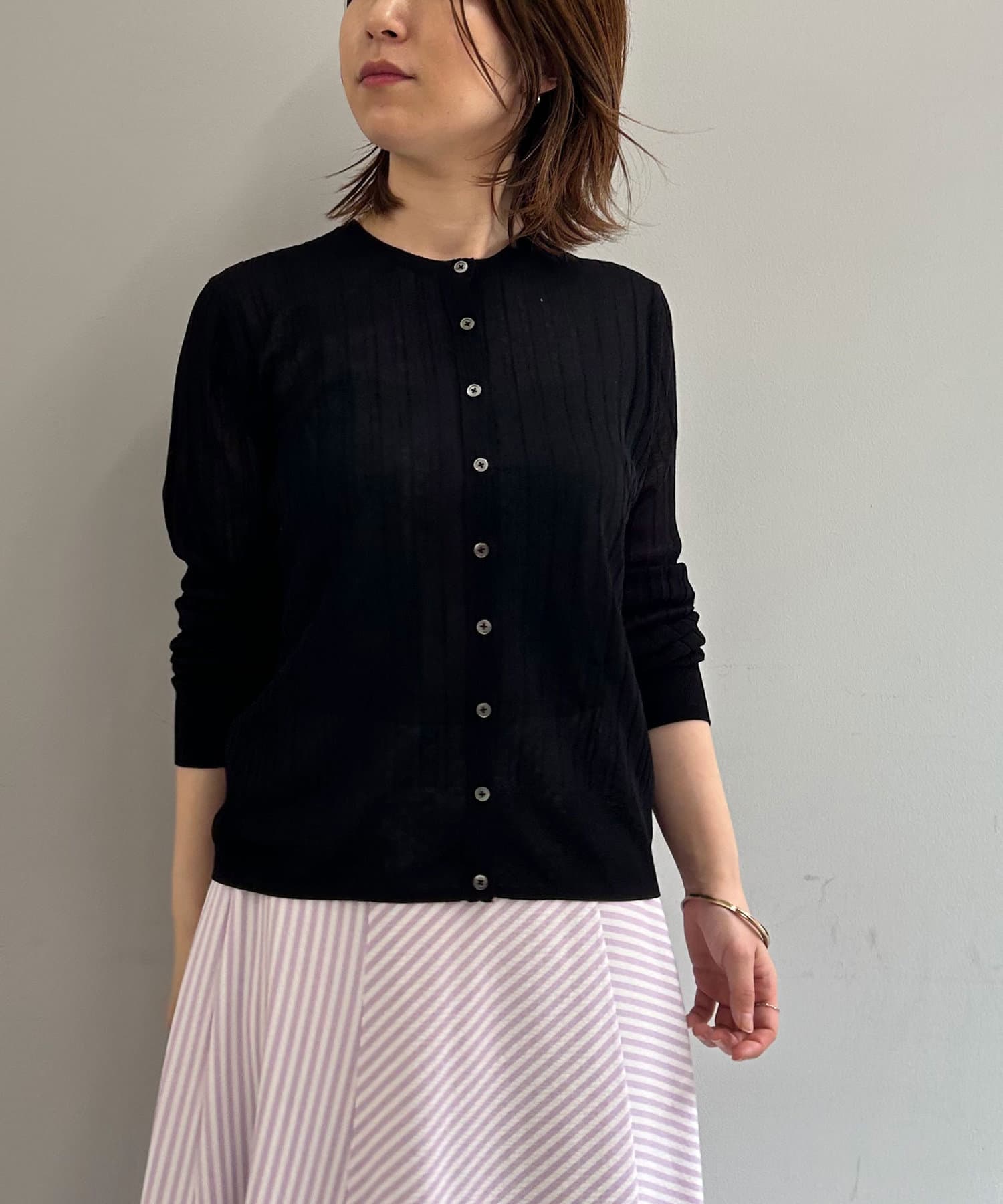 ・リブ編みになった薄手のサマーニットカーディガン。
