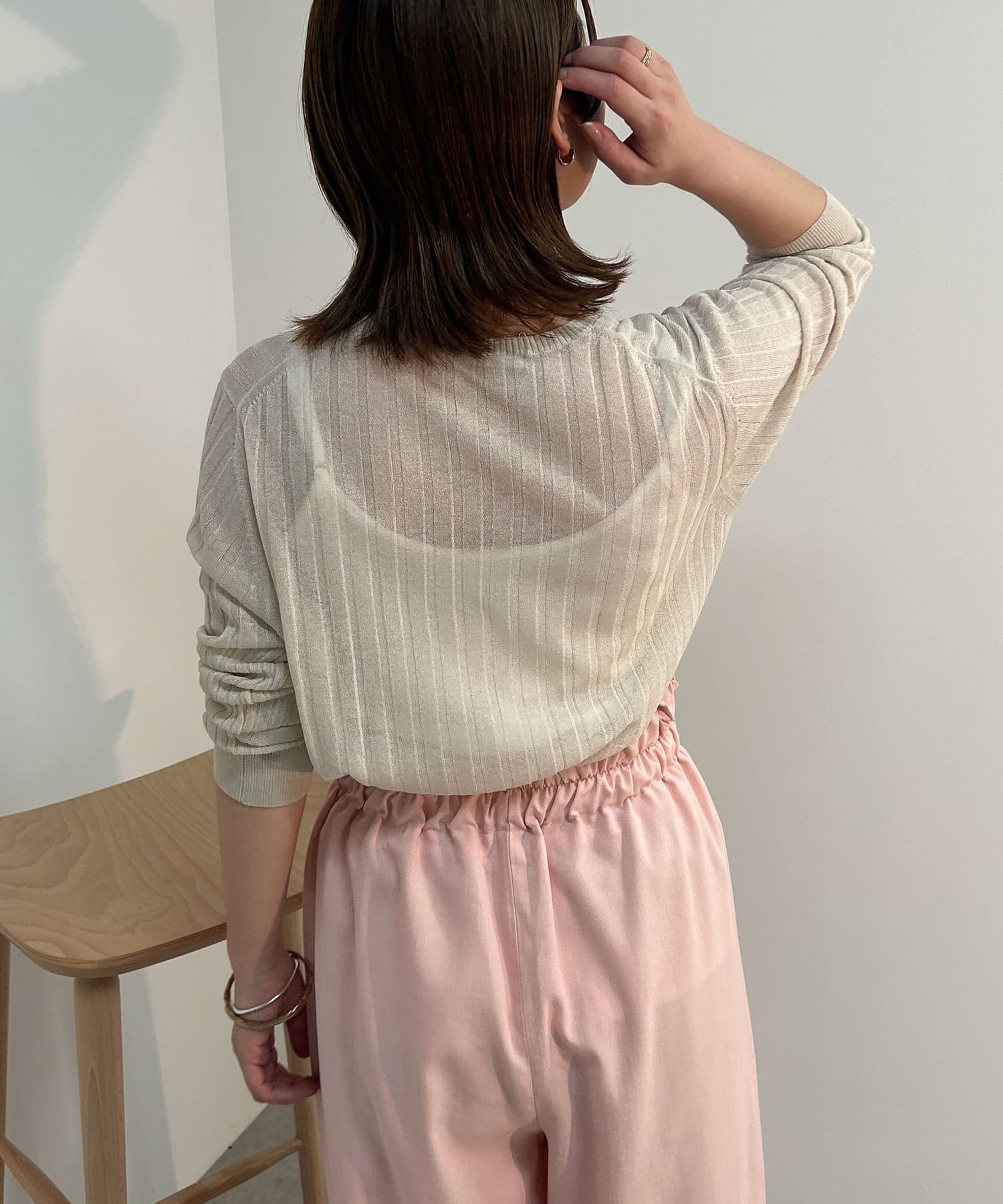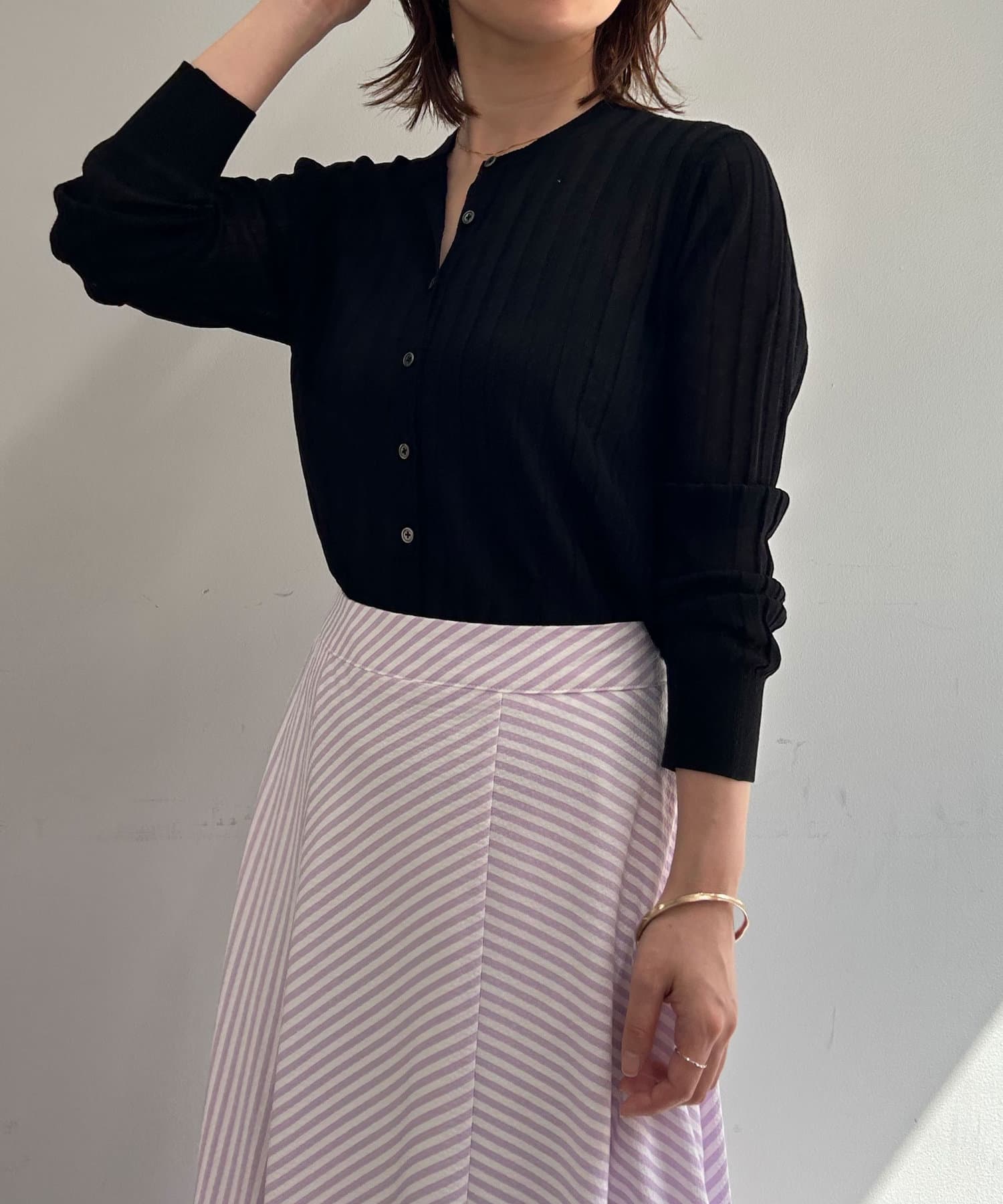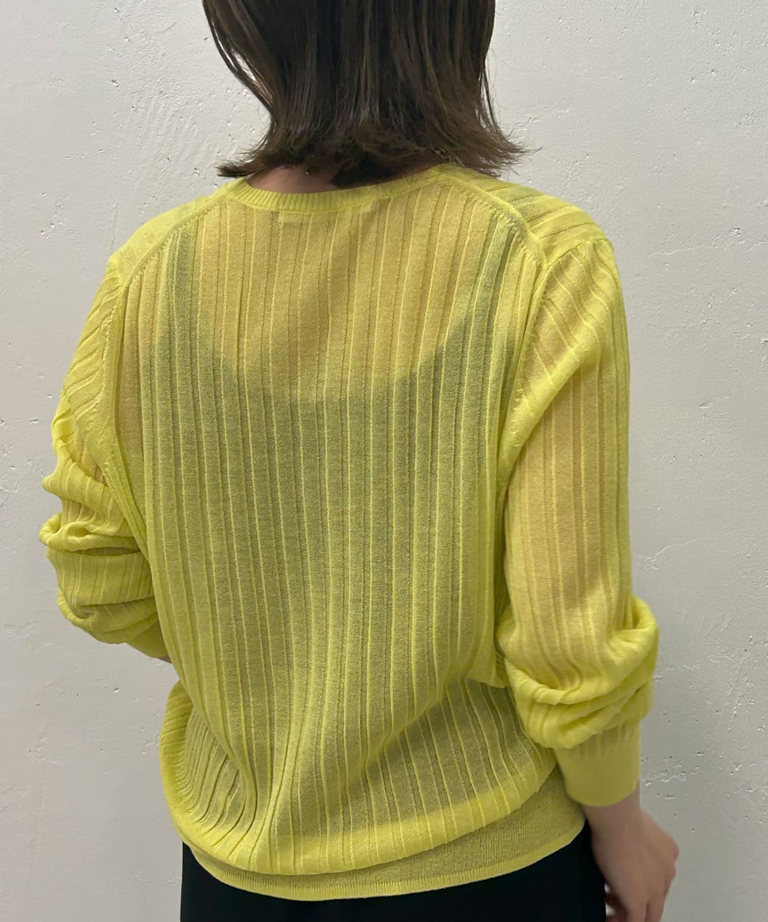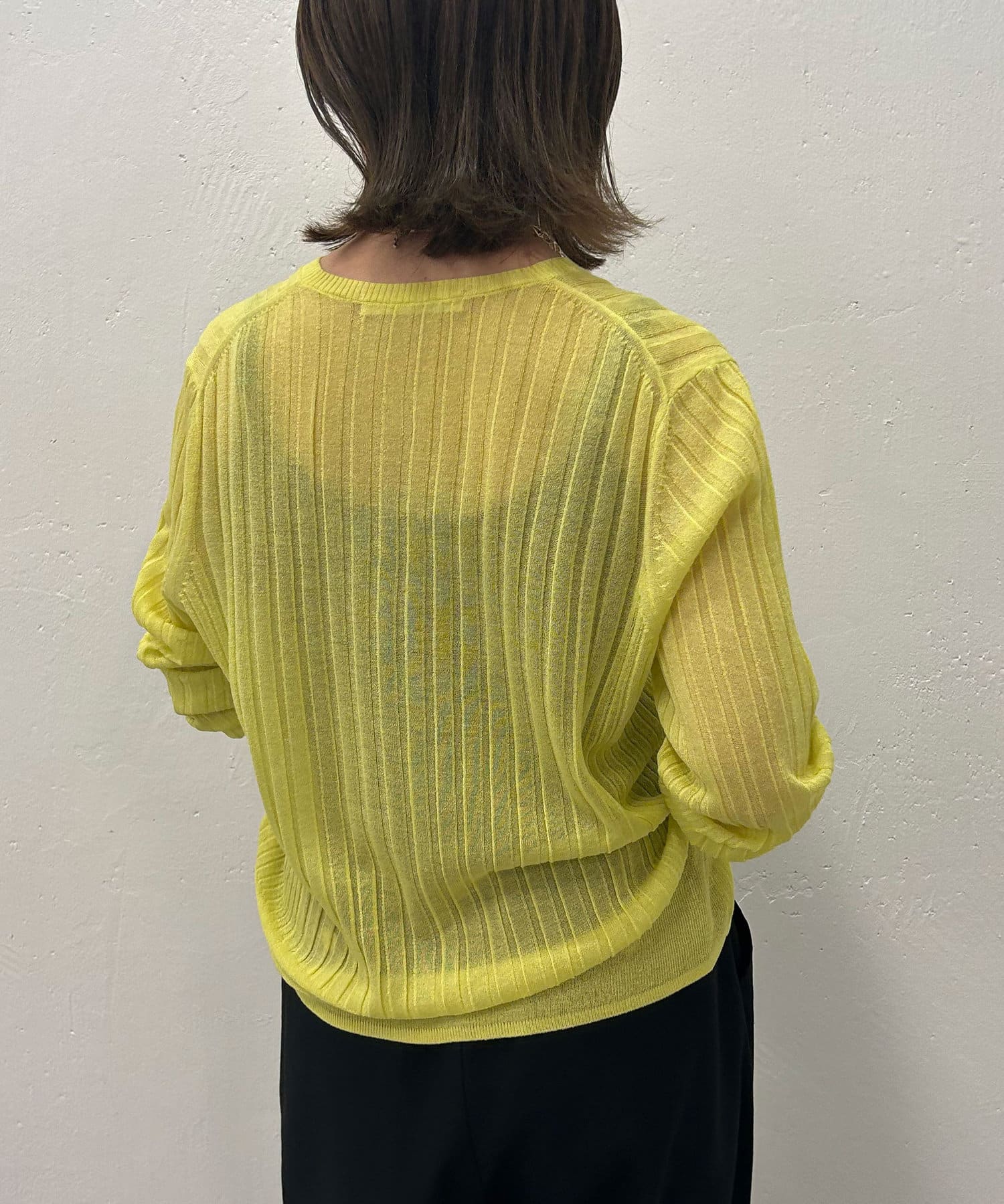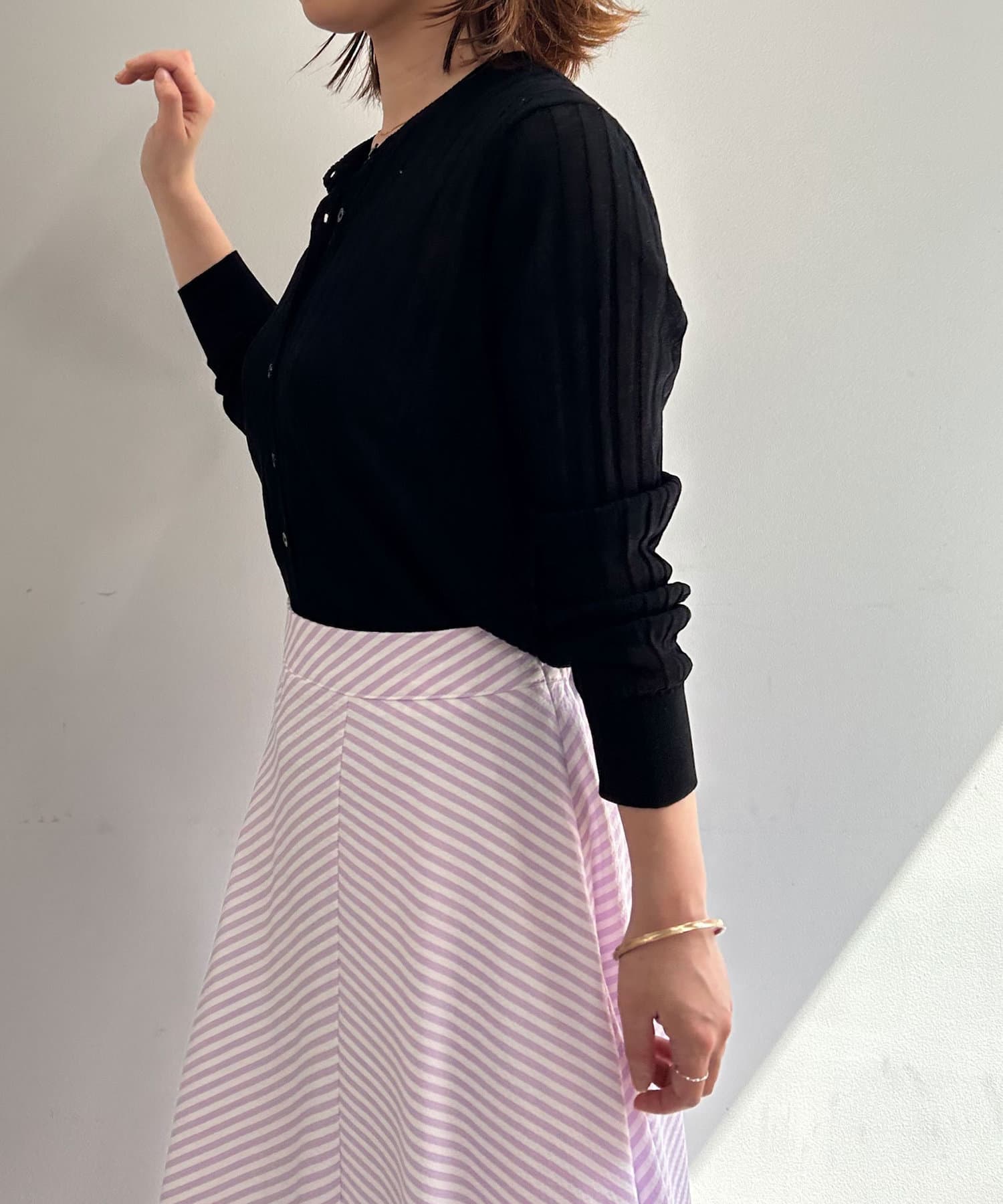 ・リブ編みになった薄手のサマーニットカーディガン。