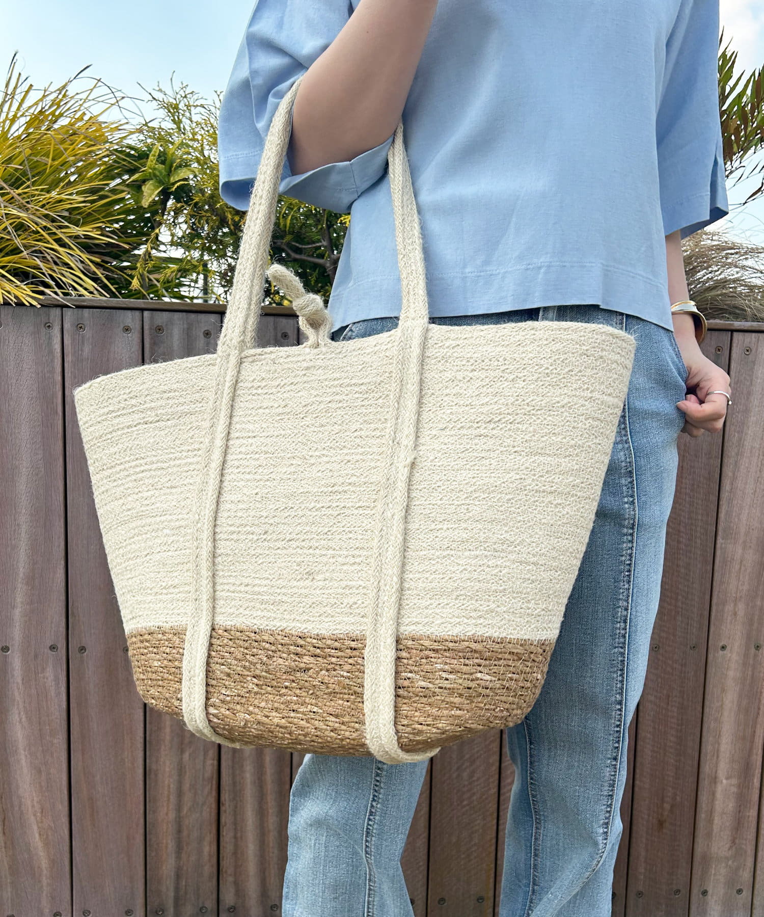 ・夏らしい素材を使用したトートバッグ
