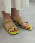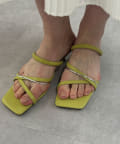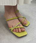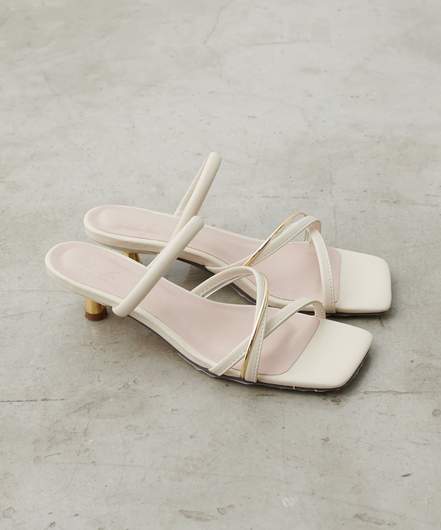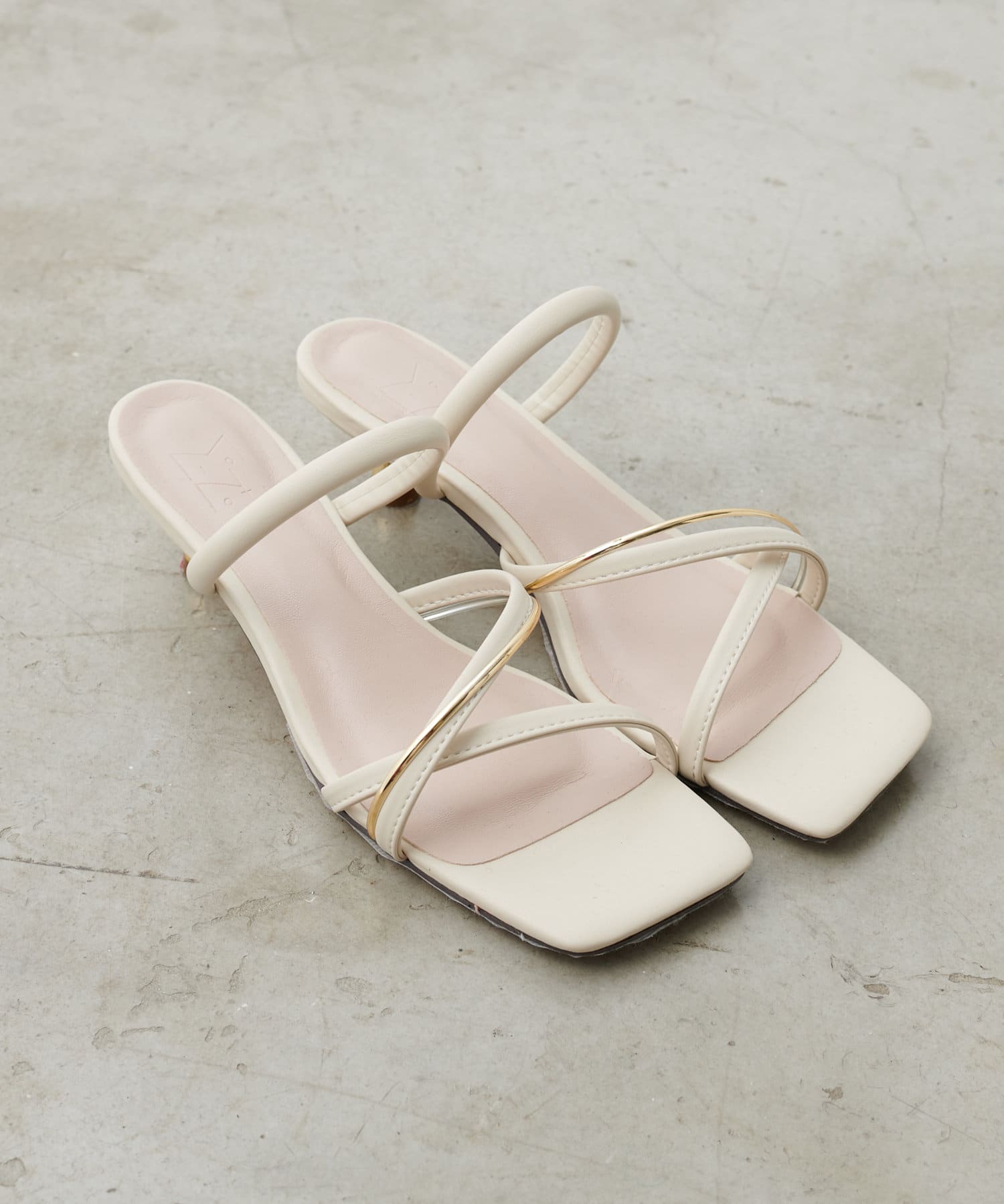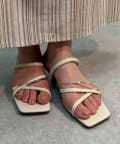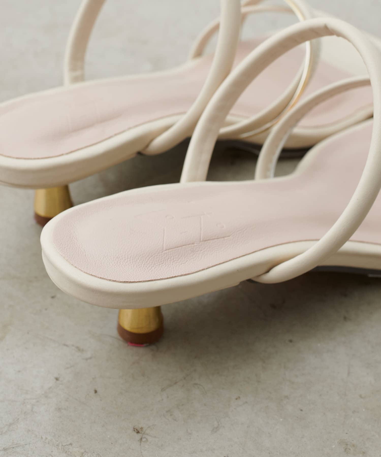 ・華奢なベルトとアクセントになる金具で女性らしい足元に。
