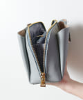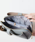 ・ファスナーがサイドまで広くついており、口を大きく広げることができ、物の出し入れもしやすい構造。