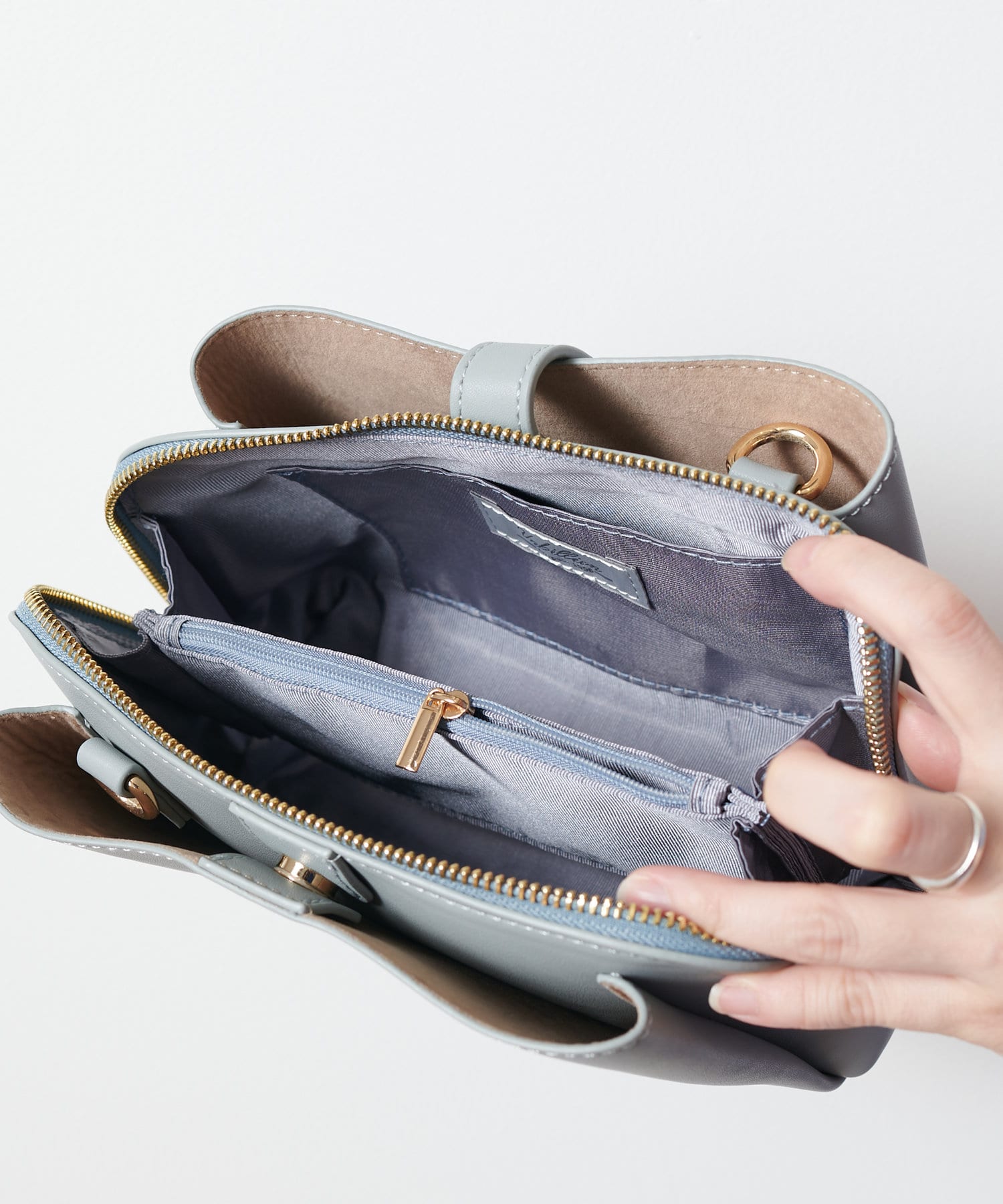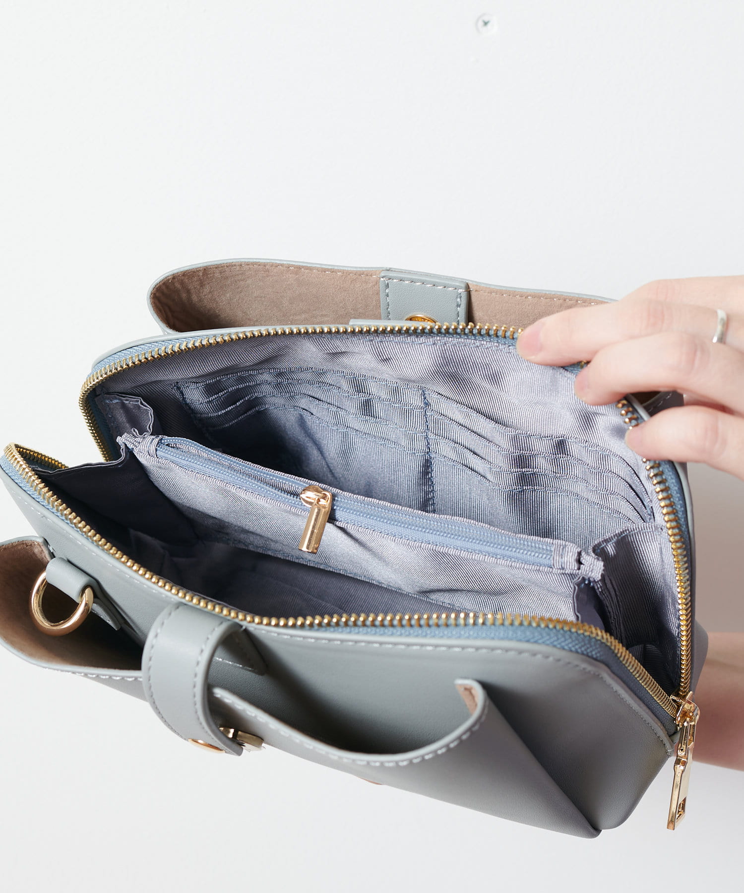 ・中には仕切りとカードや小銭を入れられるポケットがついており、財布いらずのバッグ。