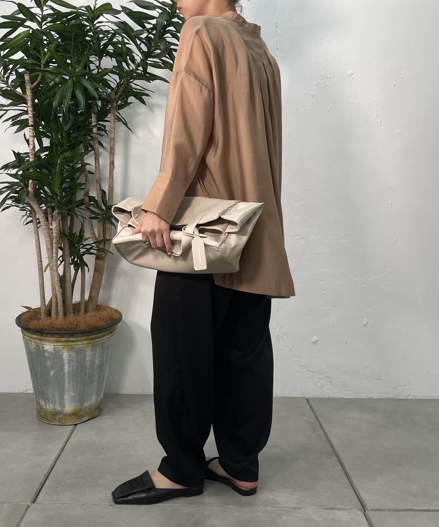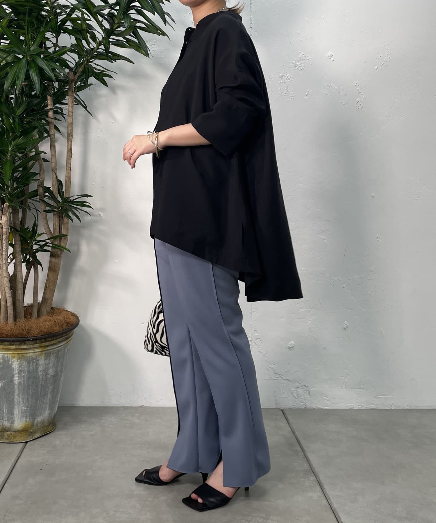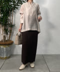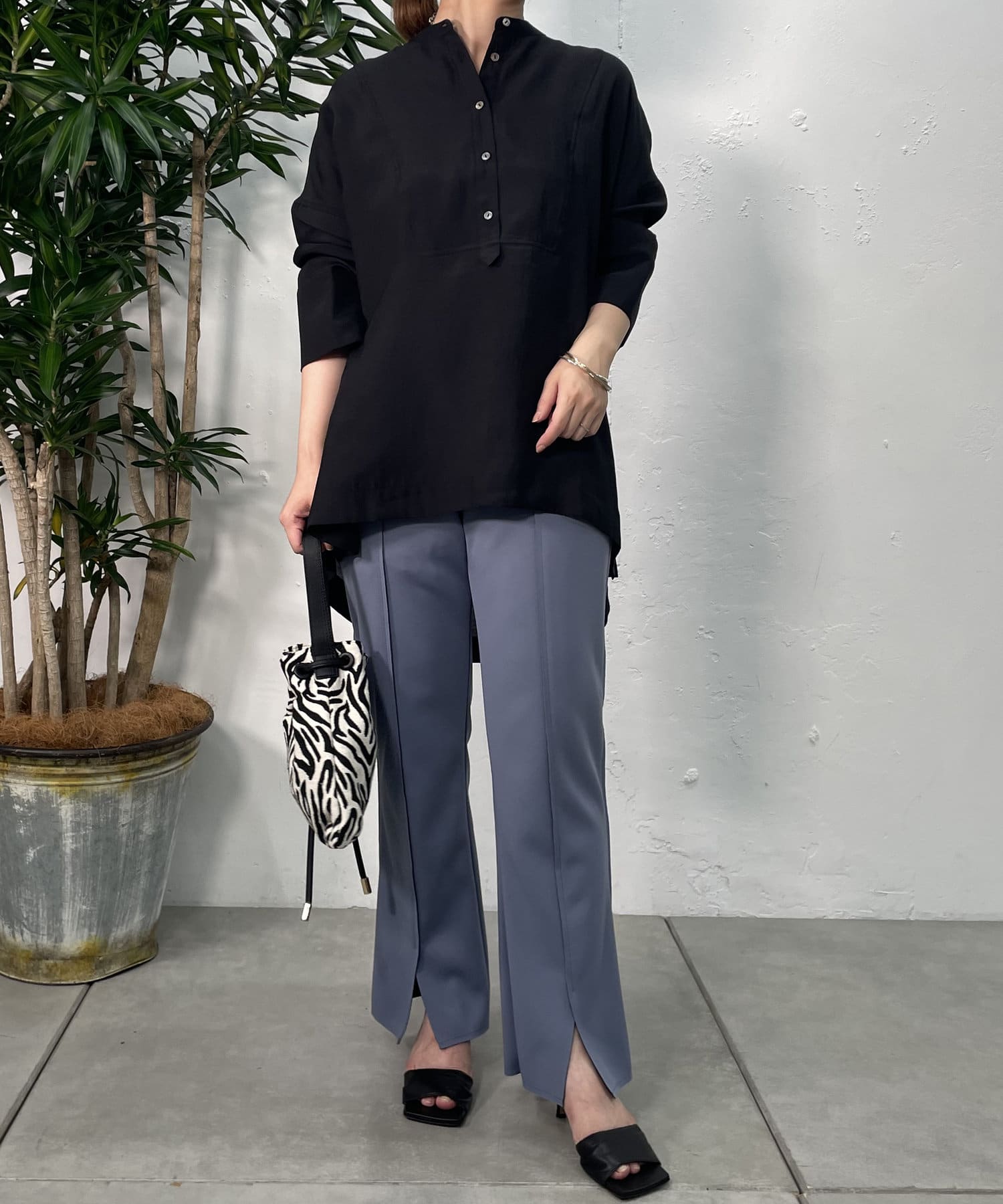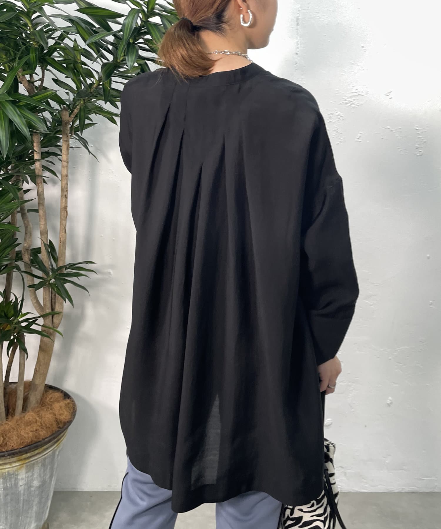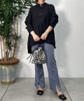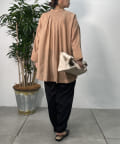 バックシルエットが綺麗です。気になる腰廻りもカバーしてくれる丈感なので安心です。ややゆったりシルエットなのに細見えします。