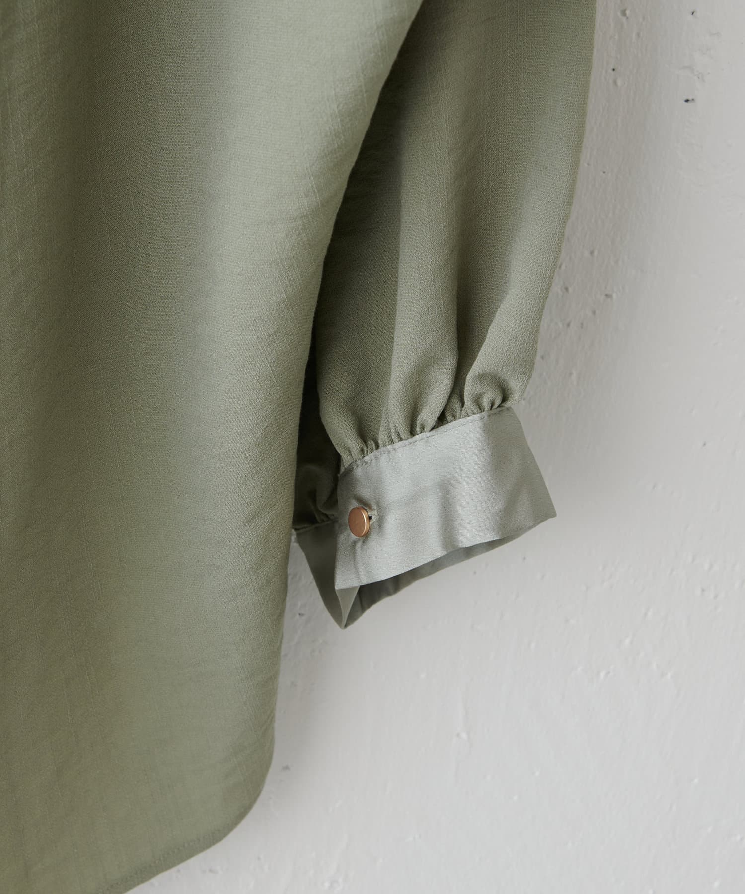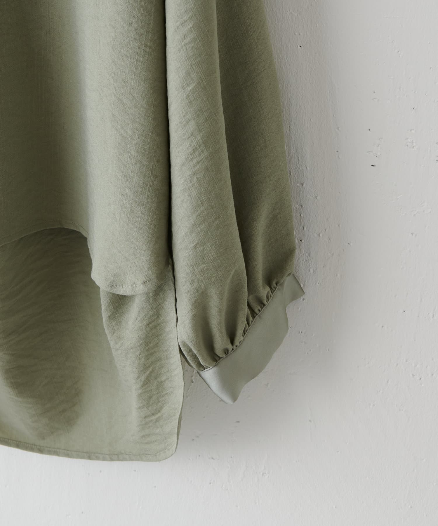・ボリューム袖が魅力的で、袖の裾にはサテンを使用し上品さもプラス。