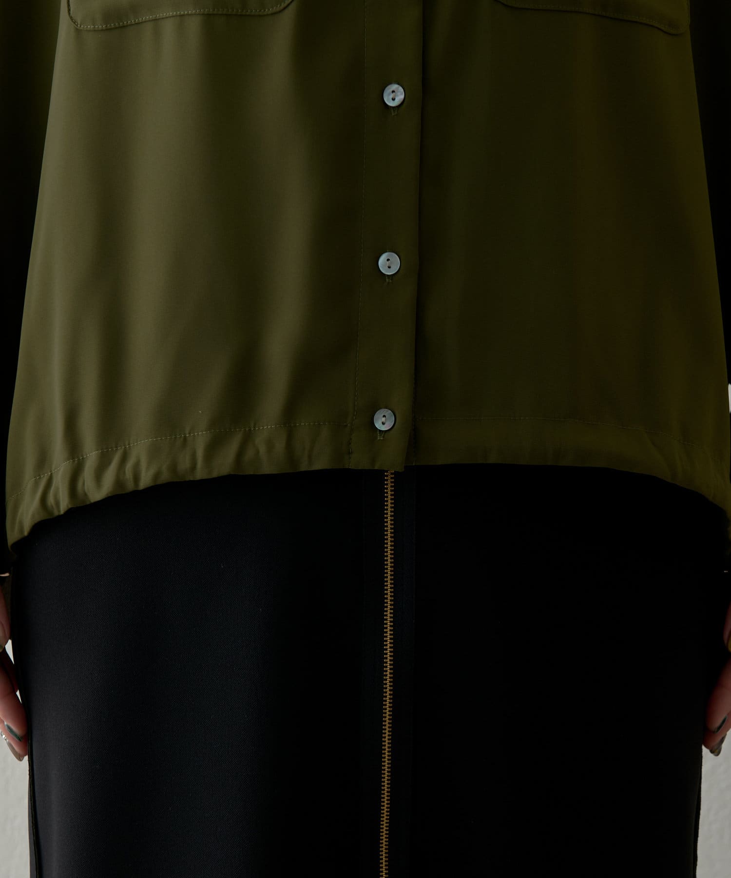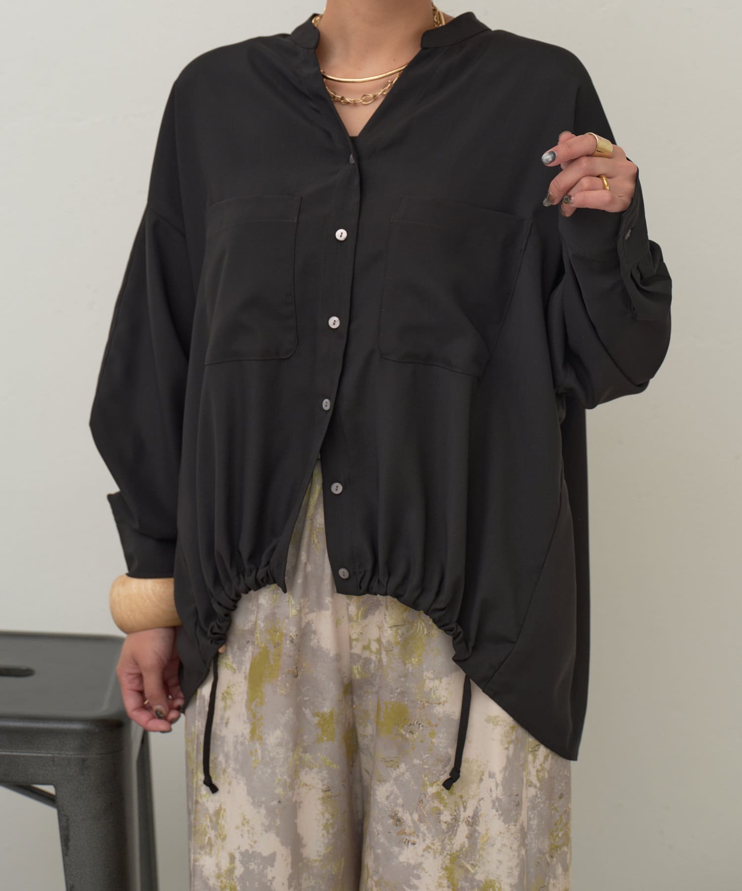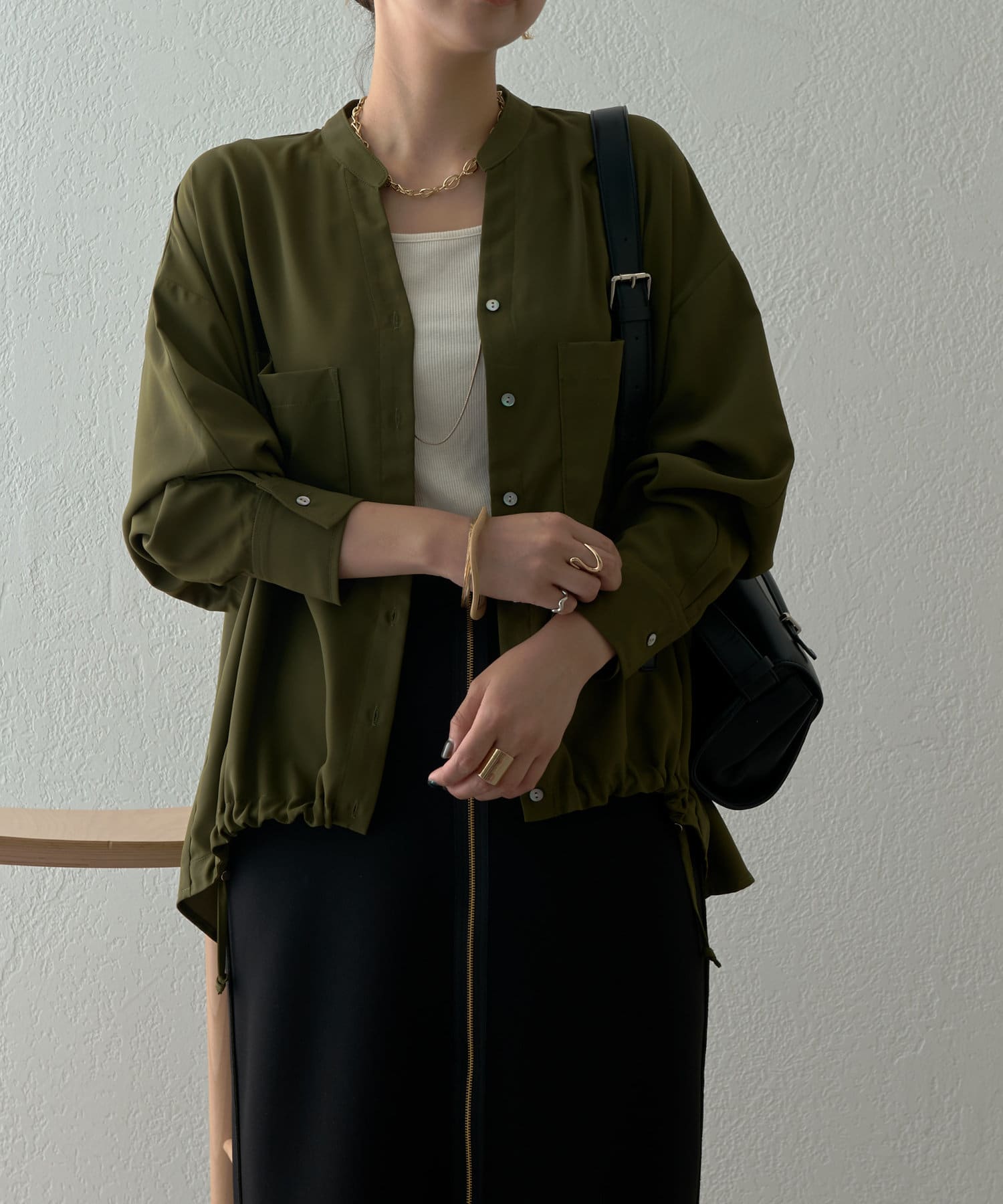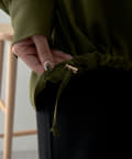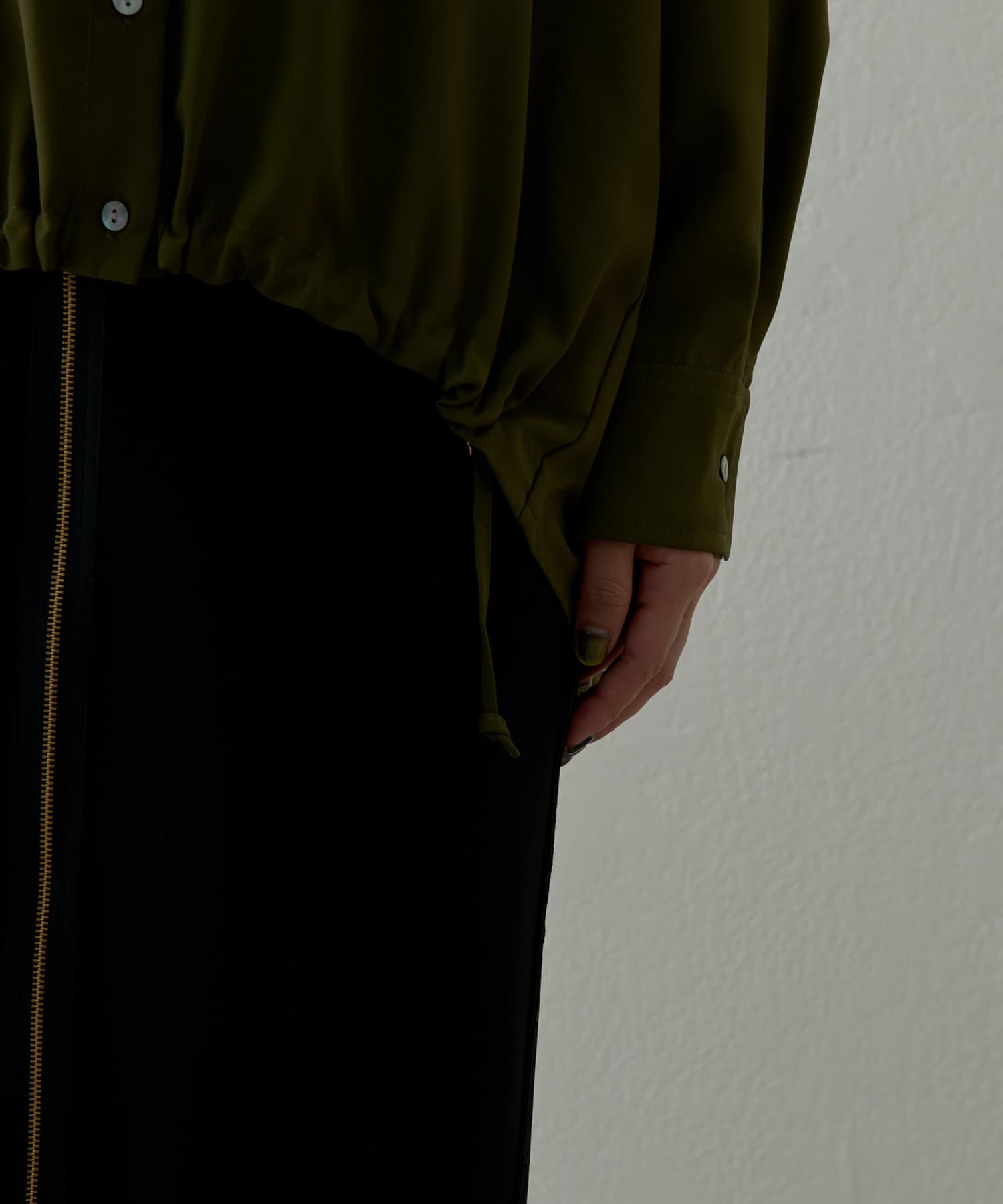 ・前身頃の裾には紐が通っているので、絞ってシルエットを調節し楽しめるアイテムです。