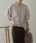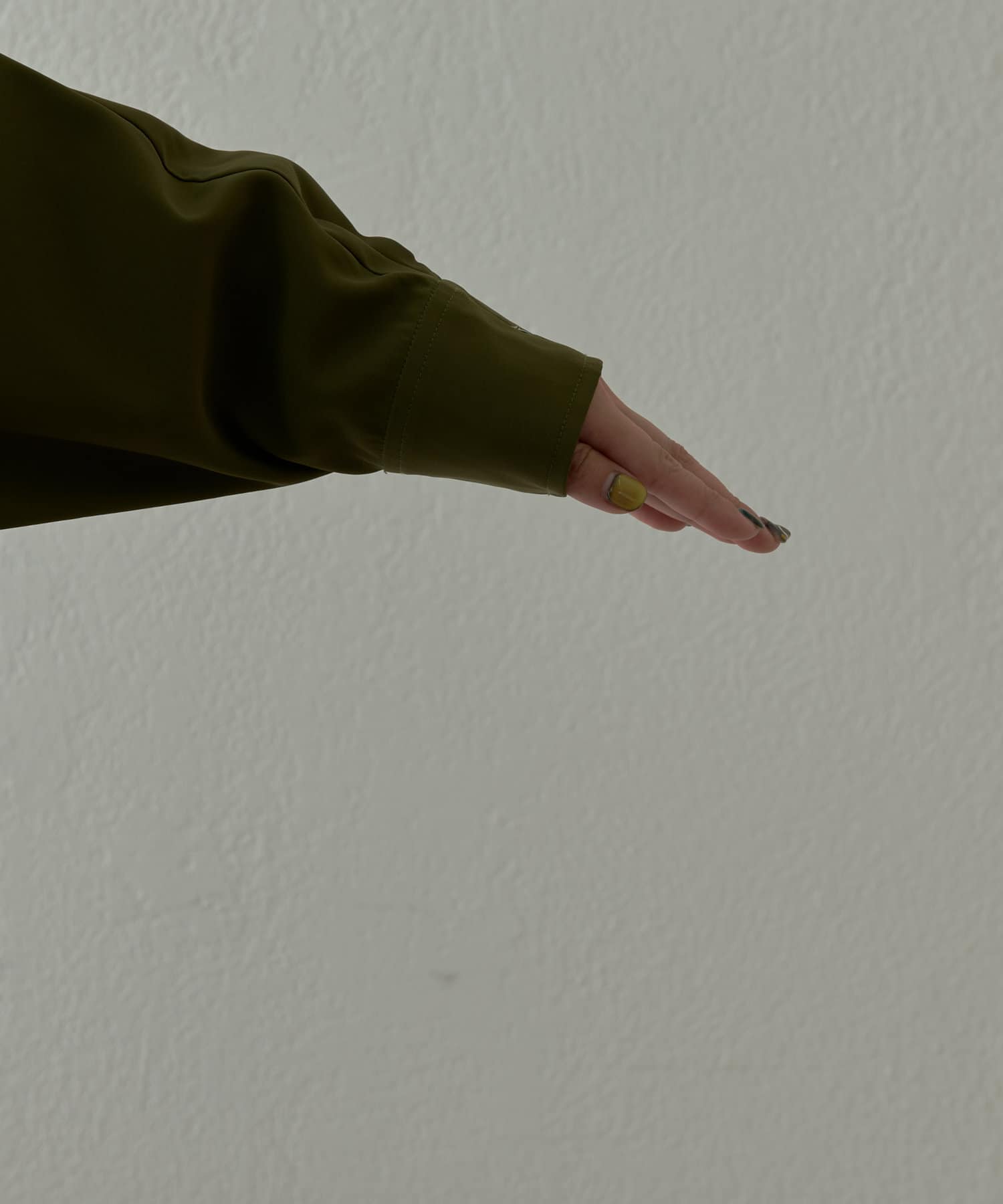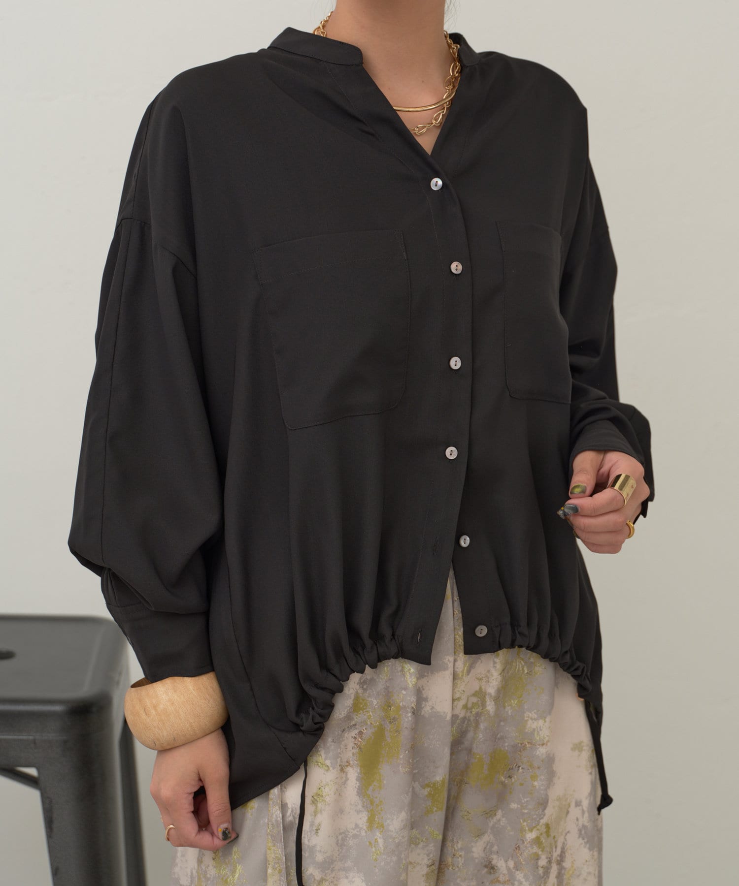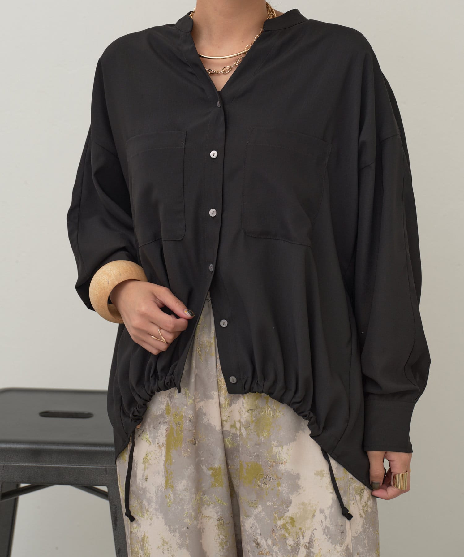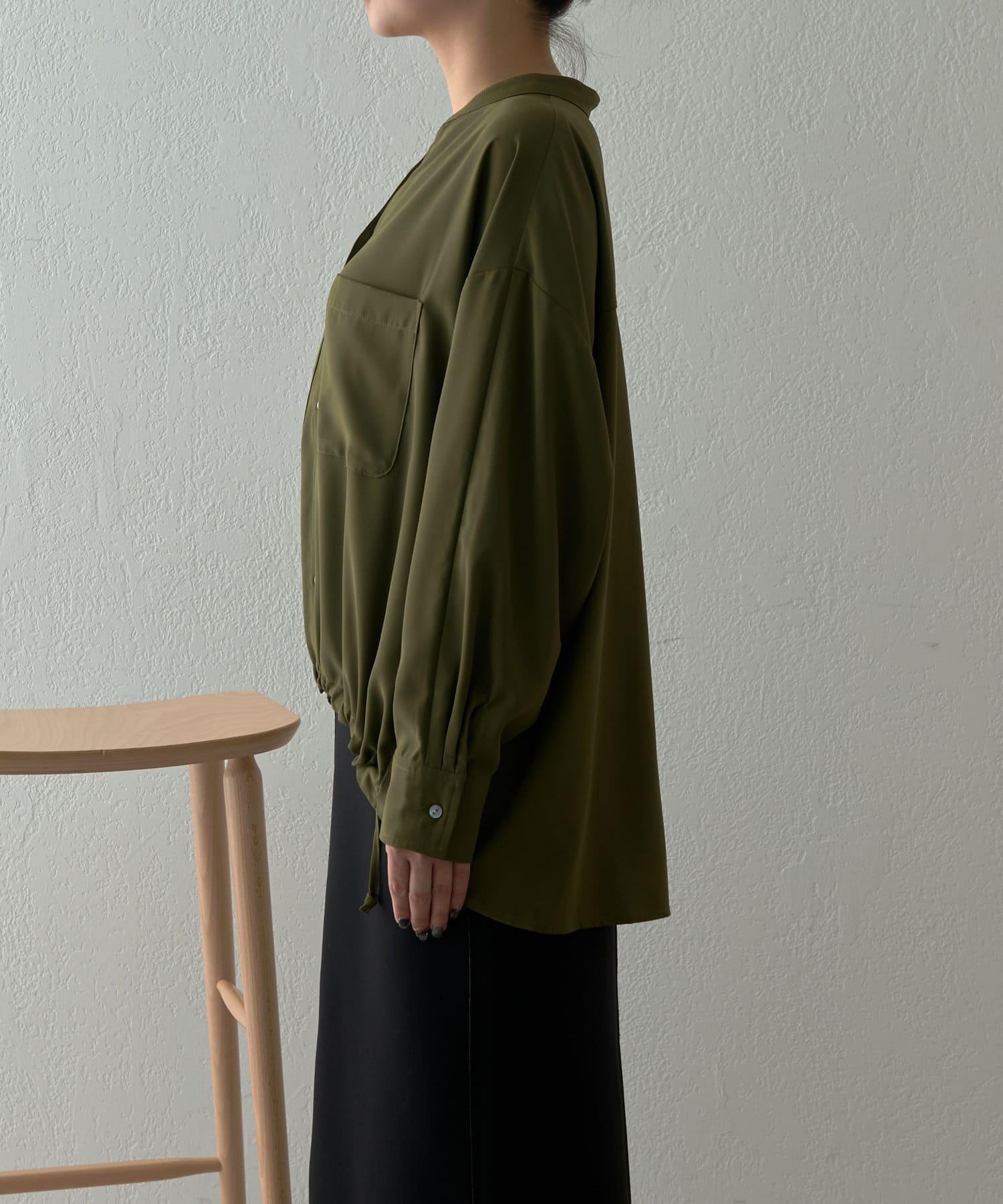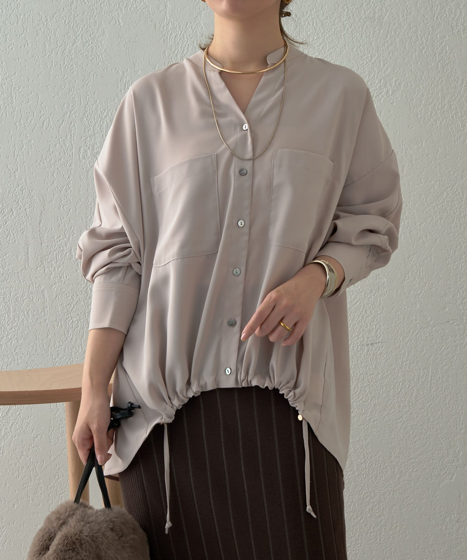 ・前身頃の裾には紐が通っているので、絞ってシルエットを調節し楽しめるアイテムです。