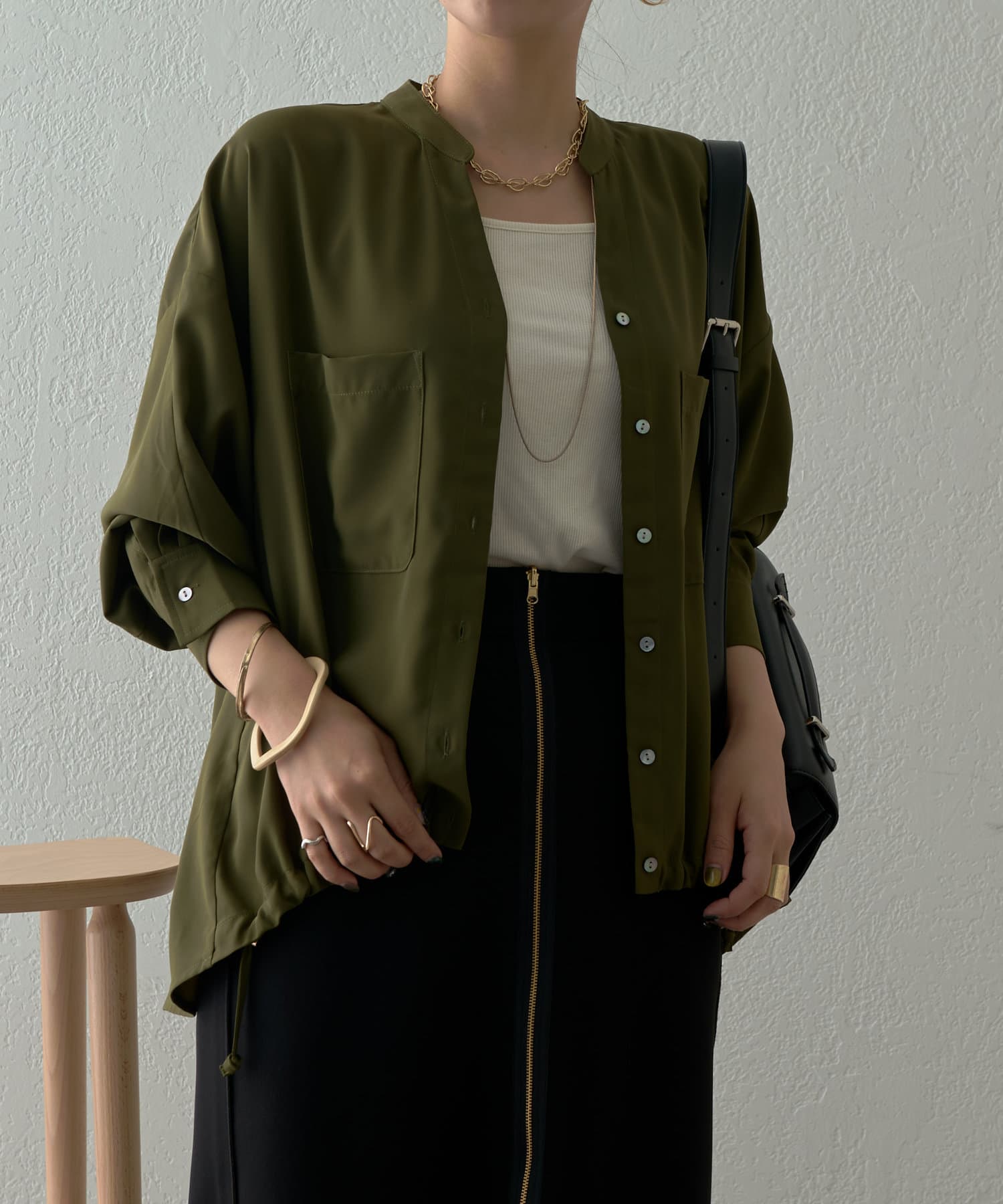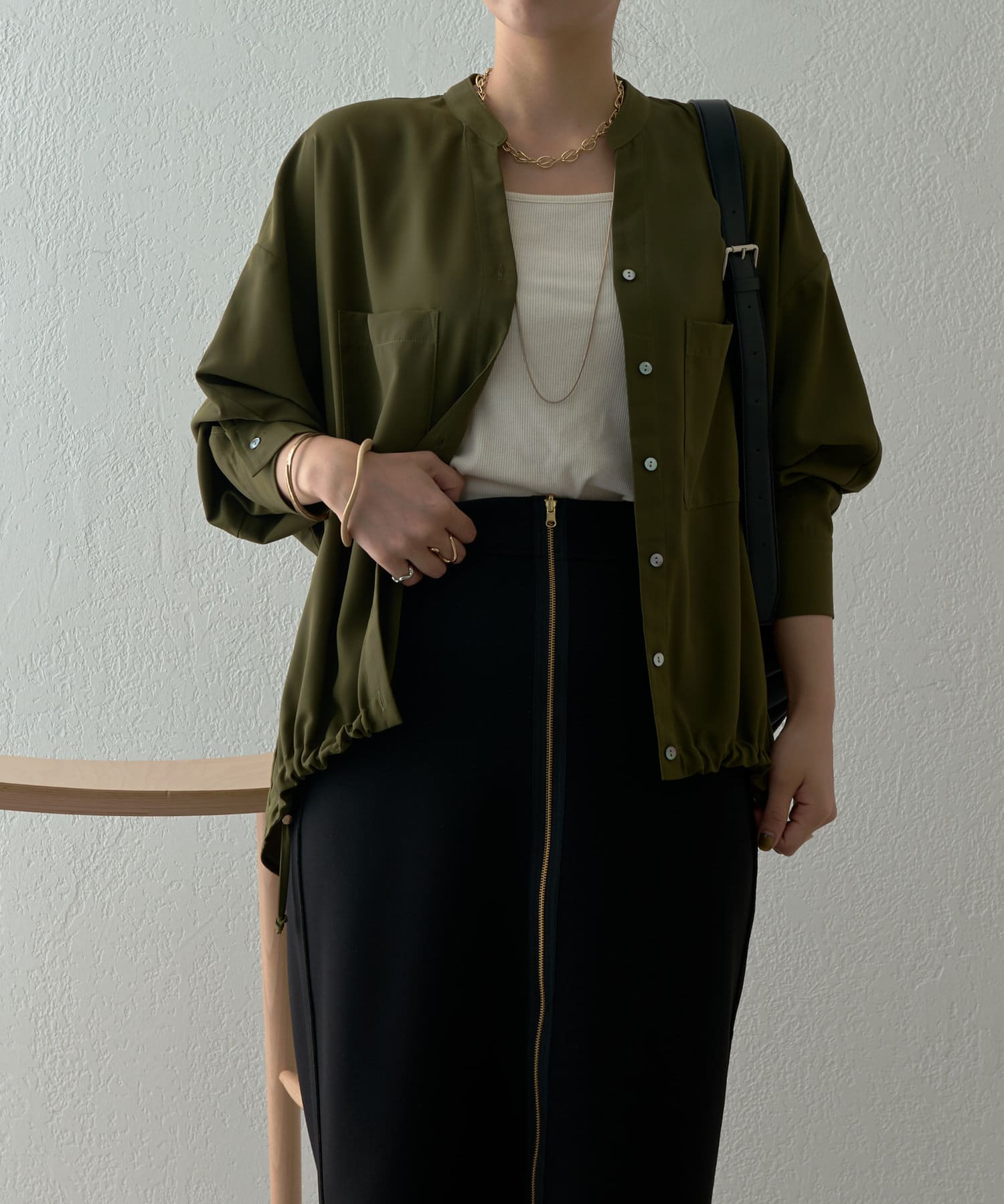 ・裾のドロストデザインがポイントに、アウトスタイルでもバランスがとりやすい一枚。