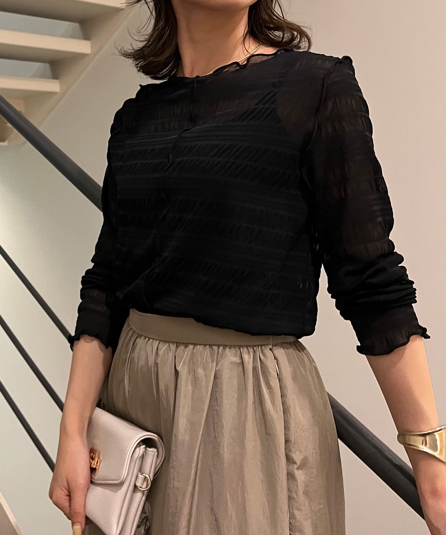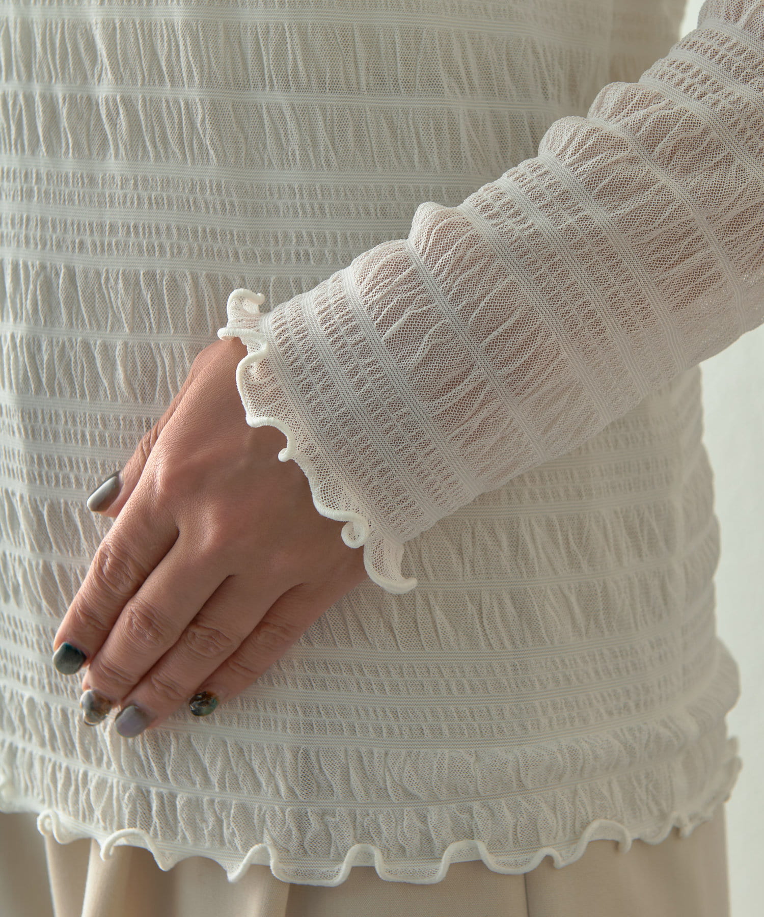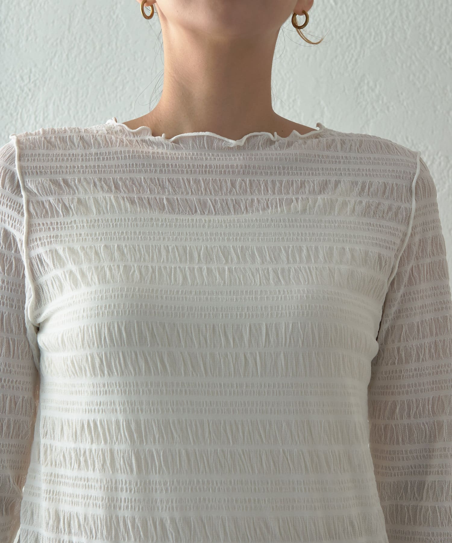 ・ポコポコとしたシャーリングデザインでトレンド感を押さえた一枚。