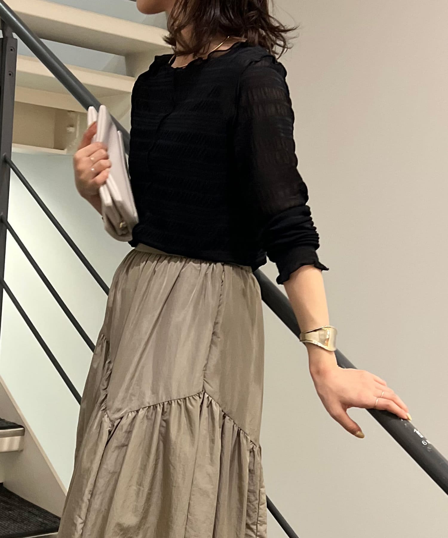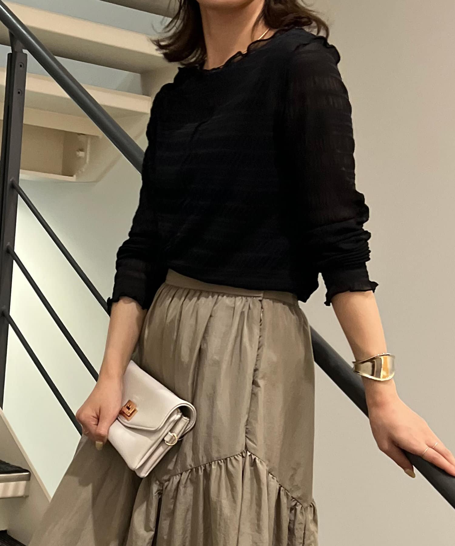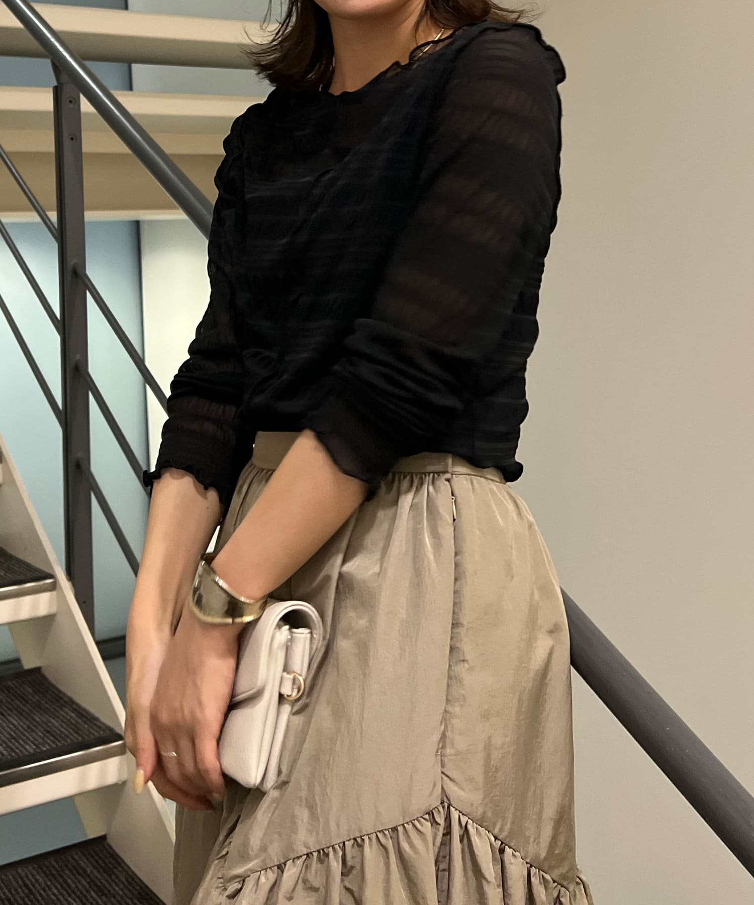 ・ポコポコとしたシャーリングデザインでトレンド感を押さえた一枚。
