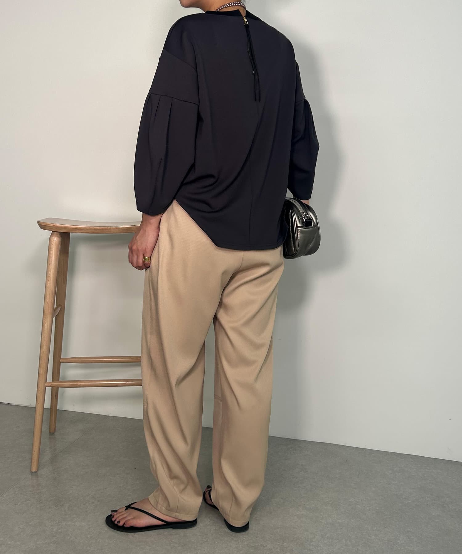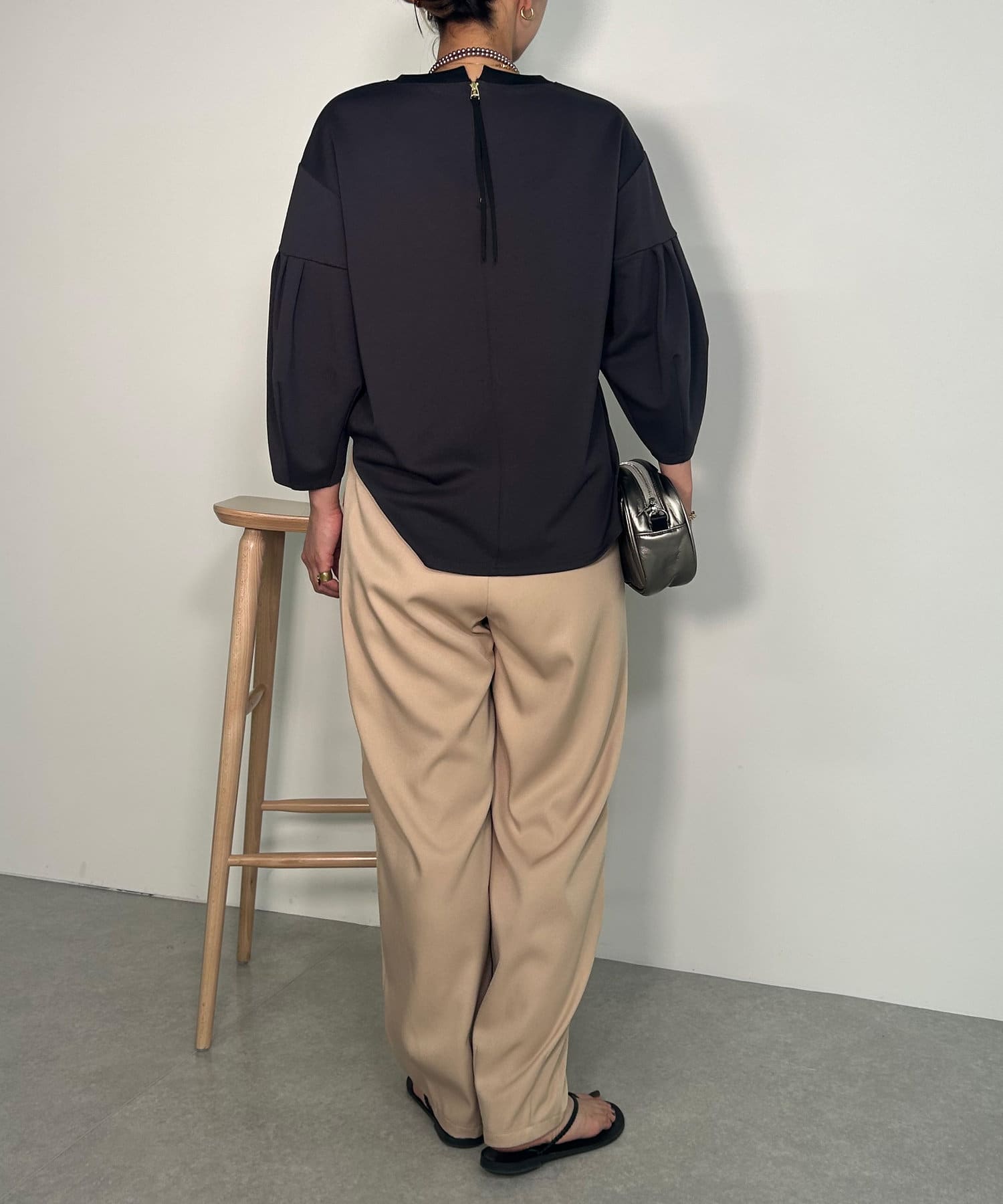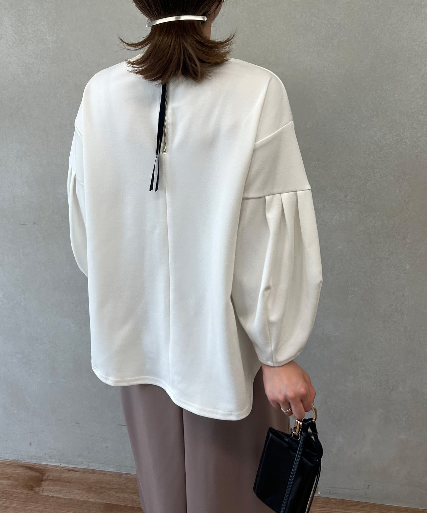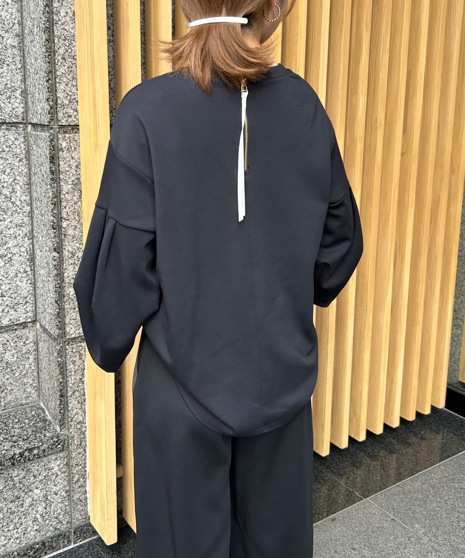 ・バックスタイルはファスナー×グログランテープでポイントに。