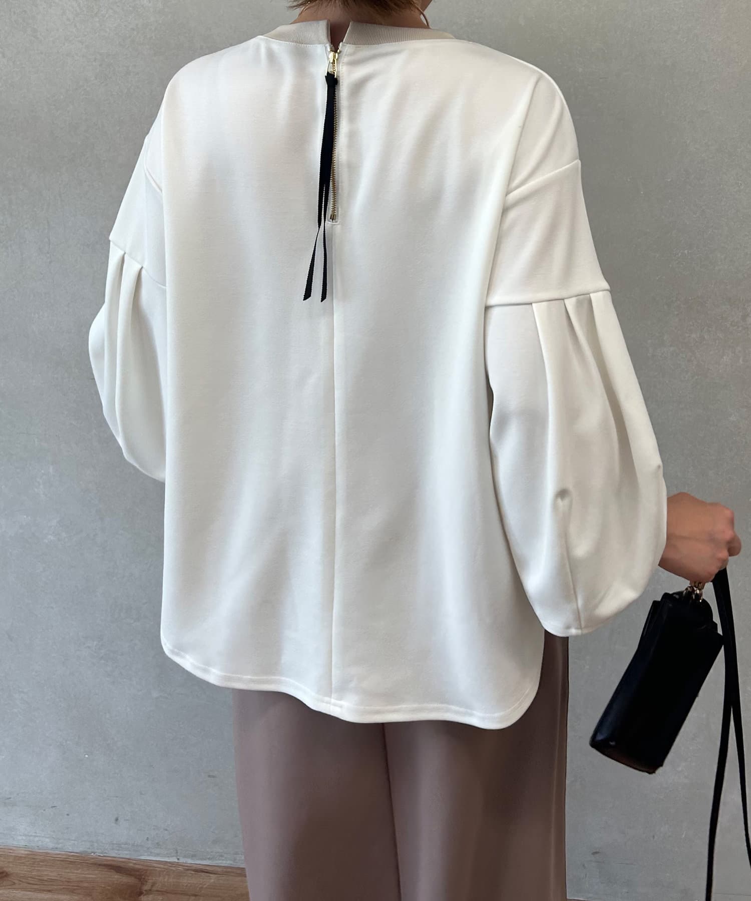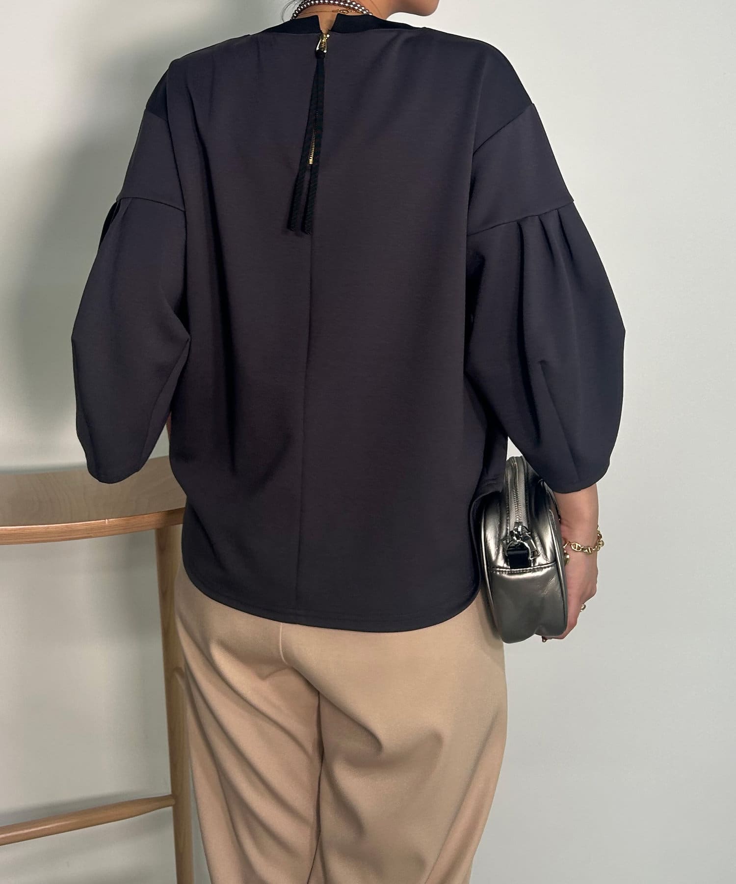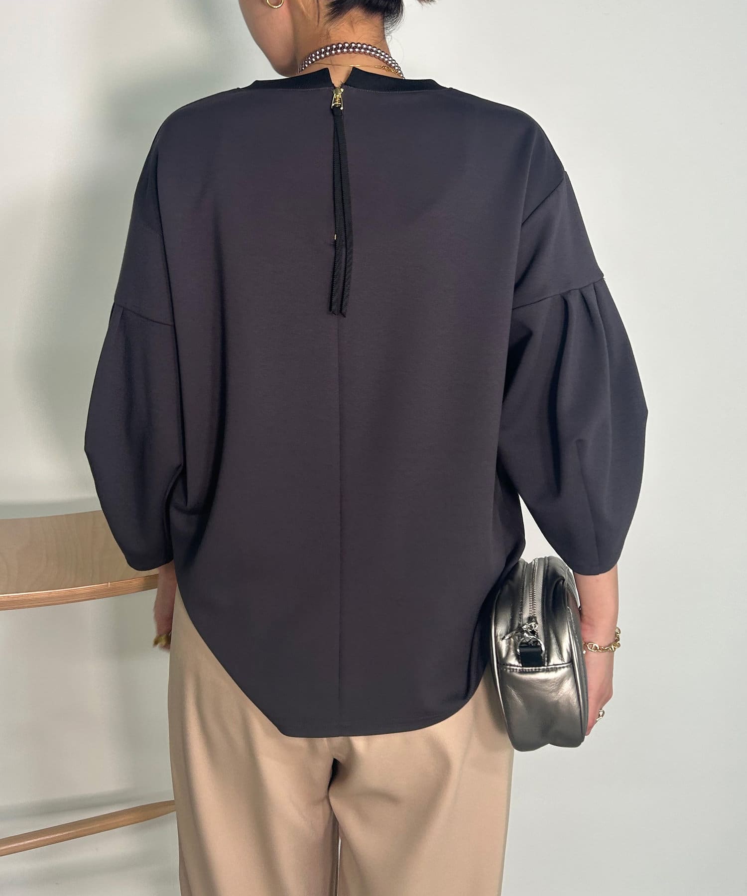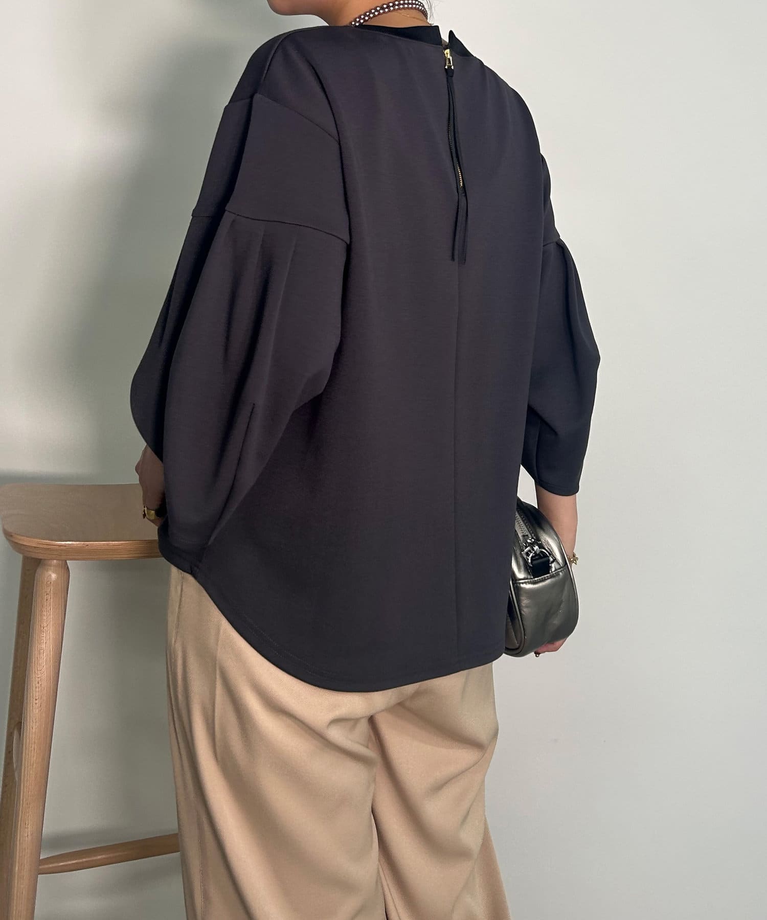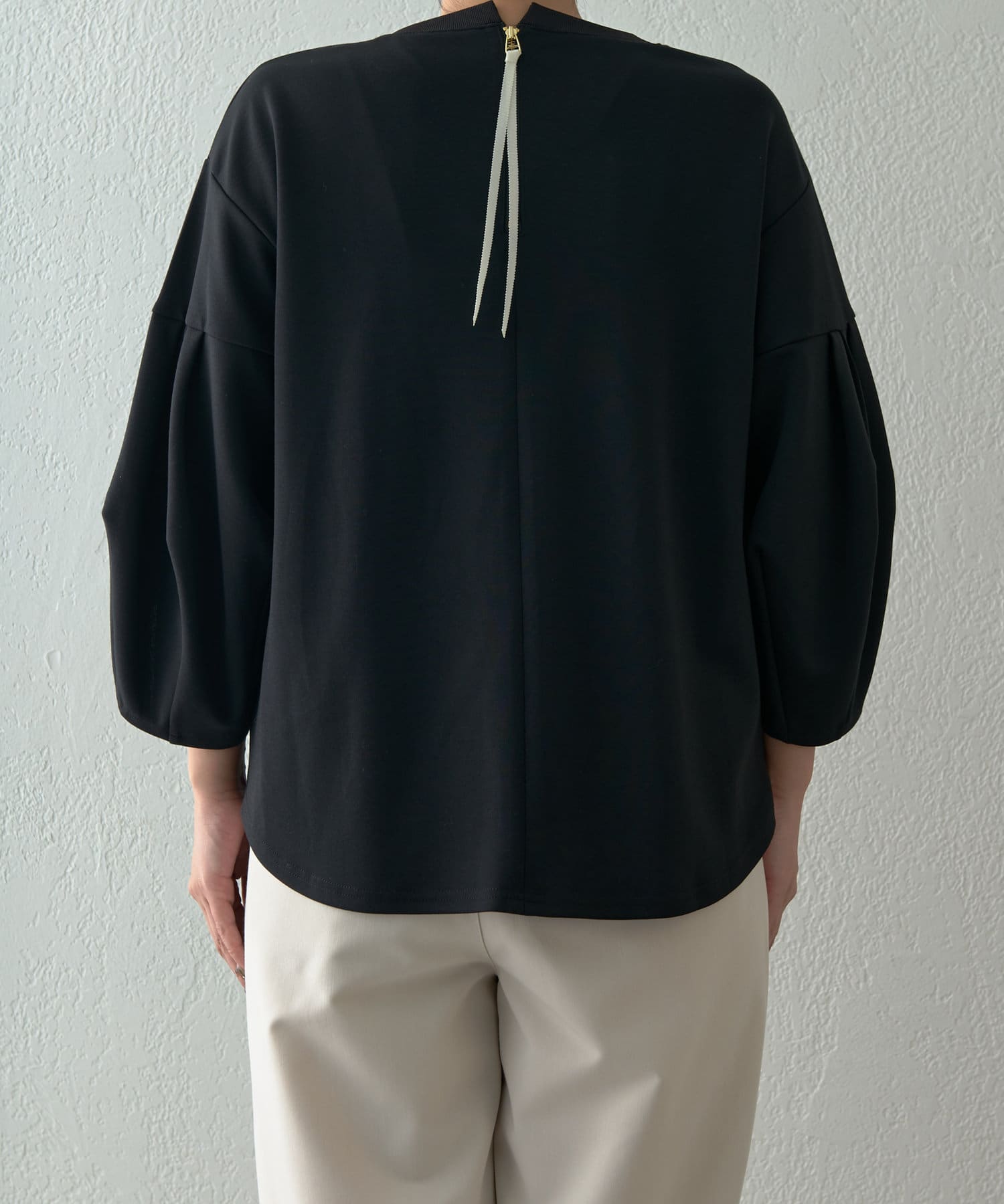 ・バックスタイルはファスナー×グログランテープでポイントに。