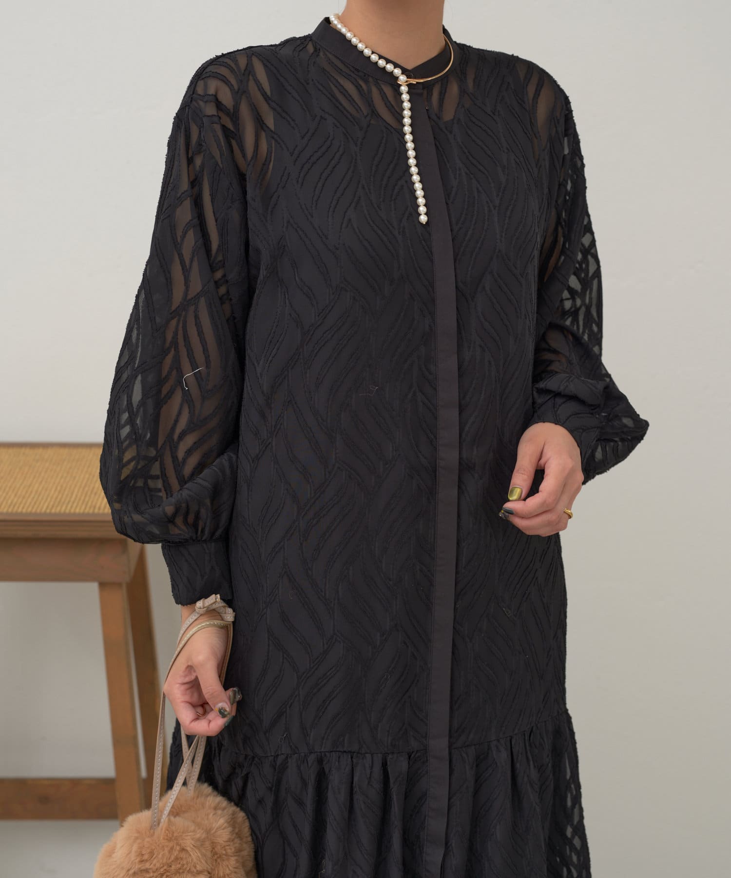 ・オケージョンでも使えるシアージャガードを使用したワンピース。