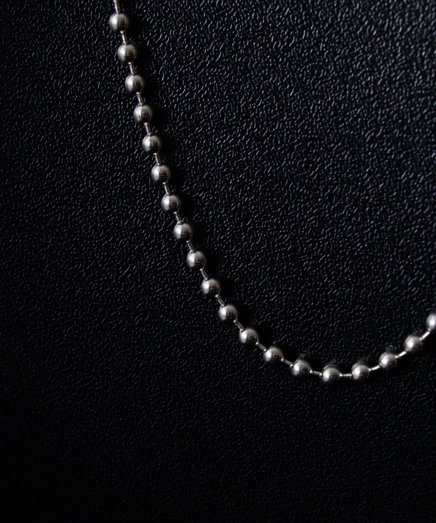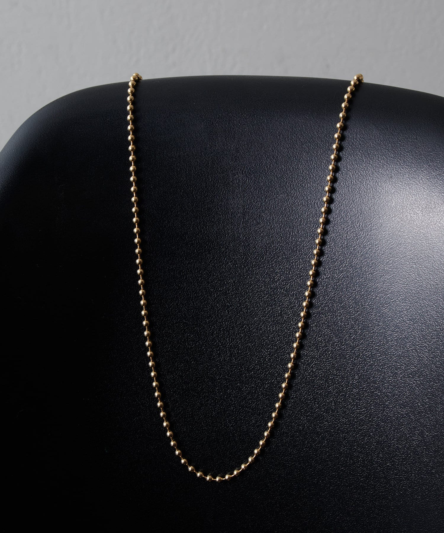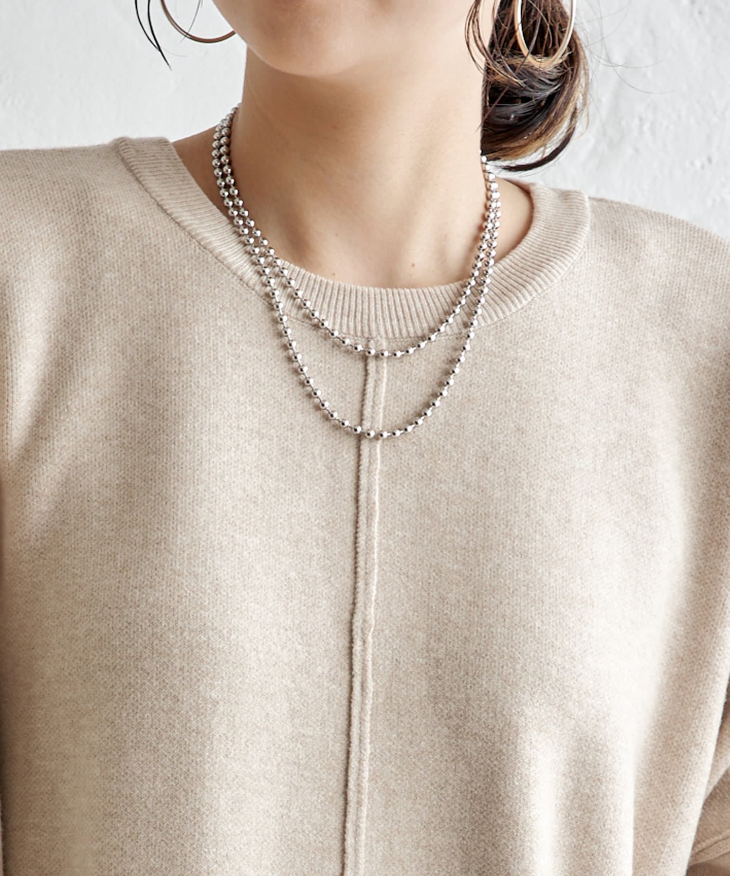 ・程よい存在感のボールパーツを連ねたロングネックレス。