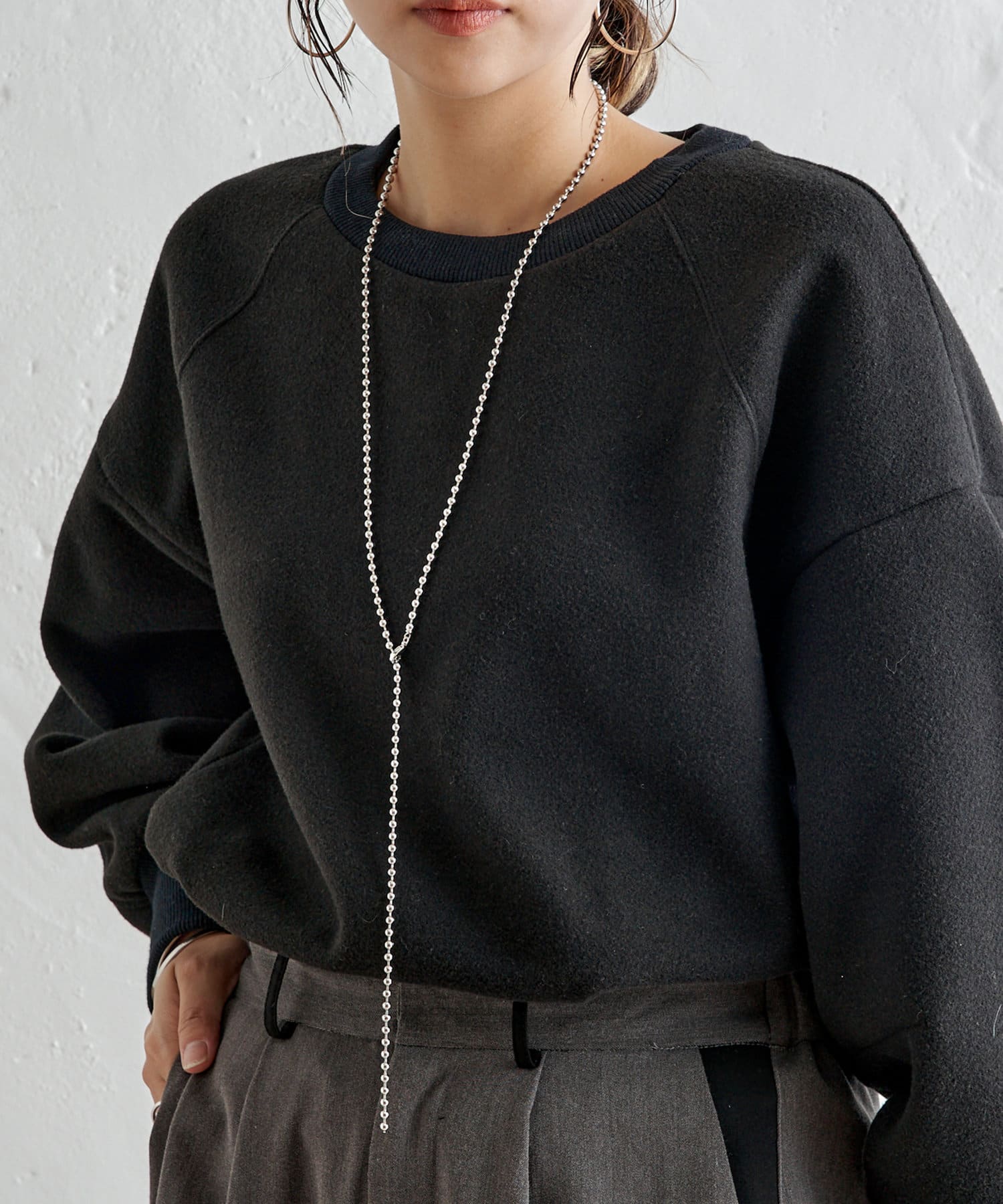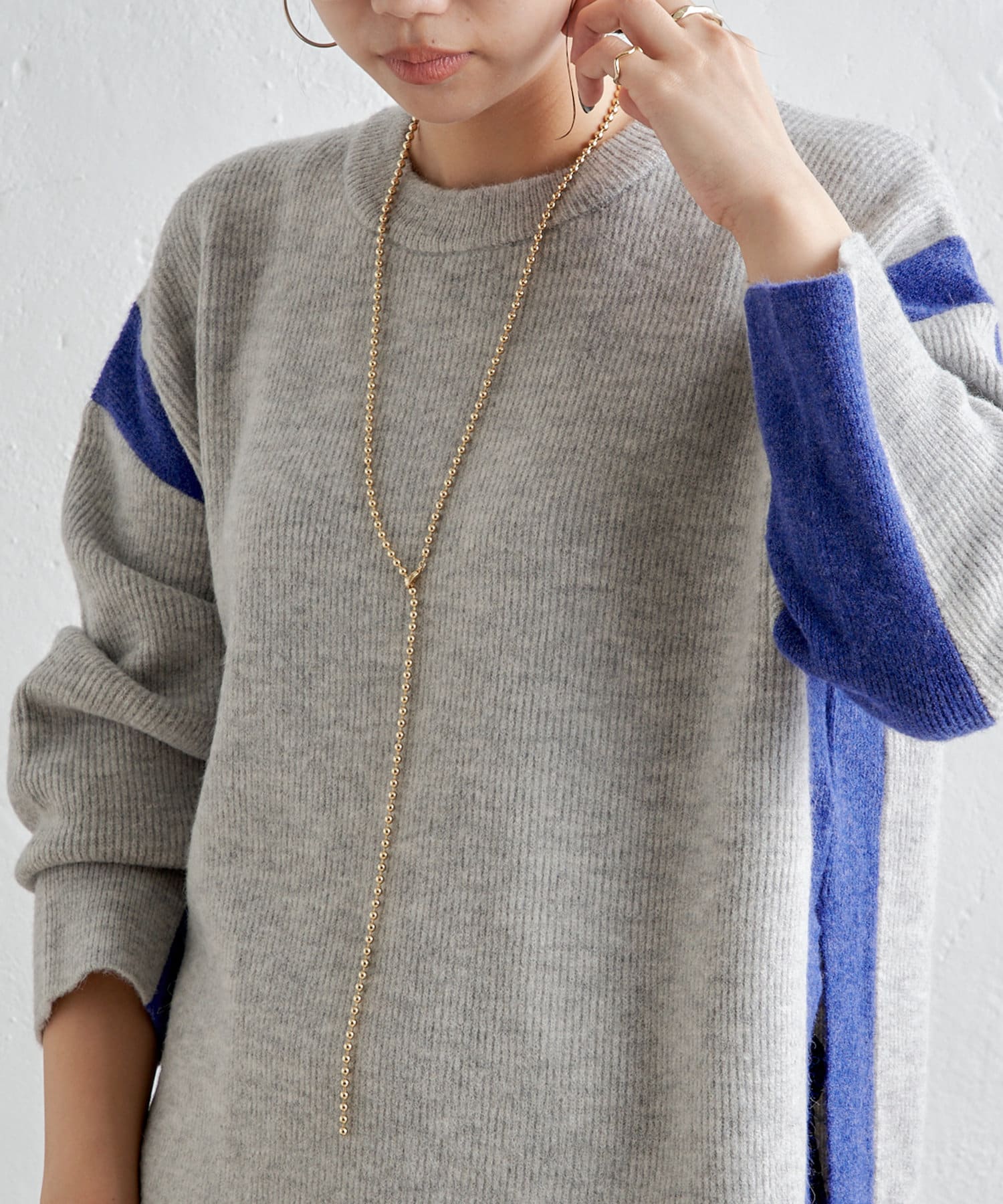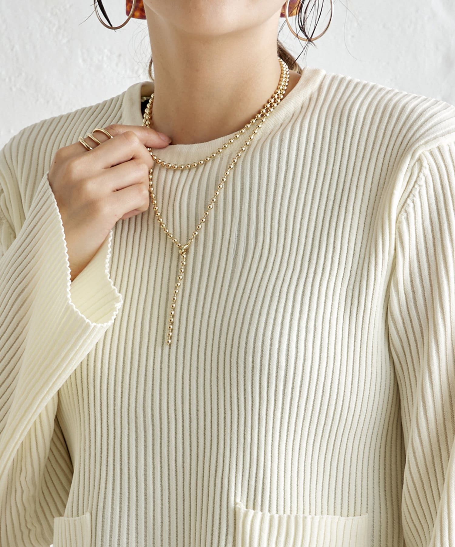 ・程よい存在感のボールパーツを連ねたロングネックレス。