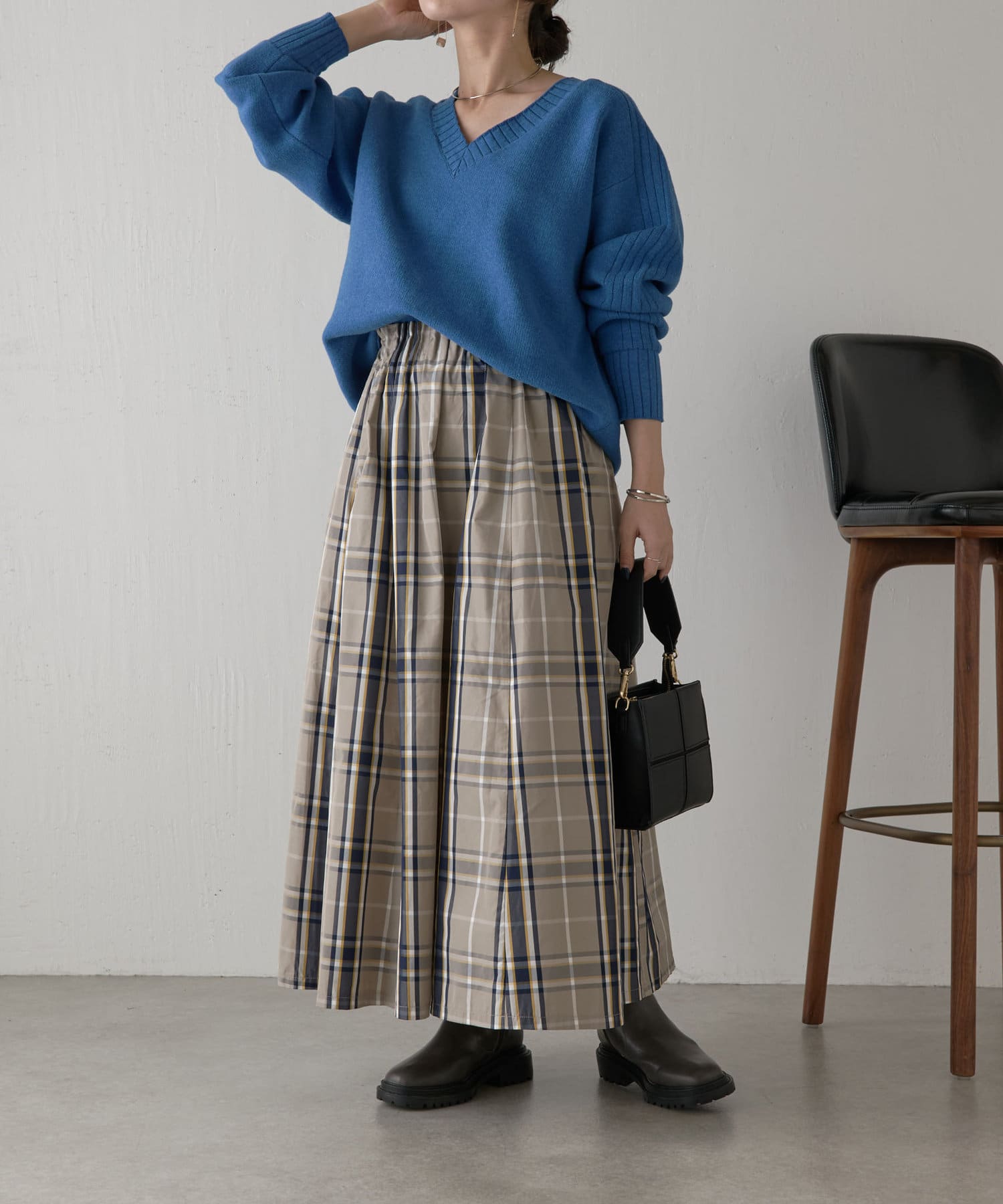 ・シンプルなトップスでスカートを主役にしたきれいめカジュアルなスタイリングがオススメです◎