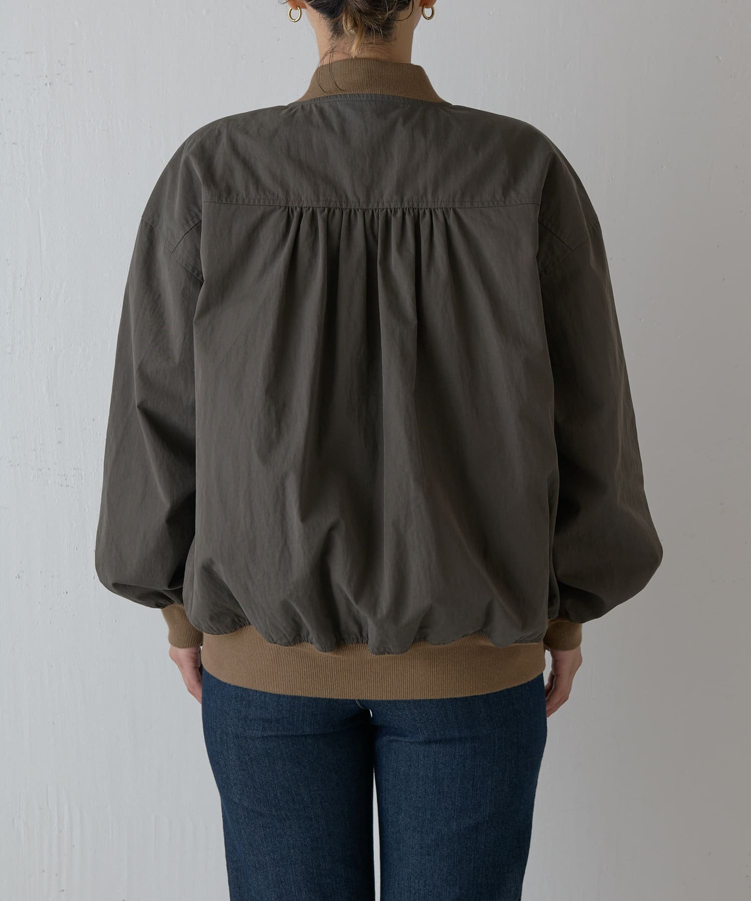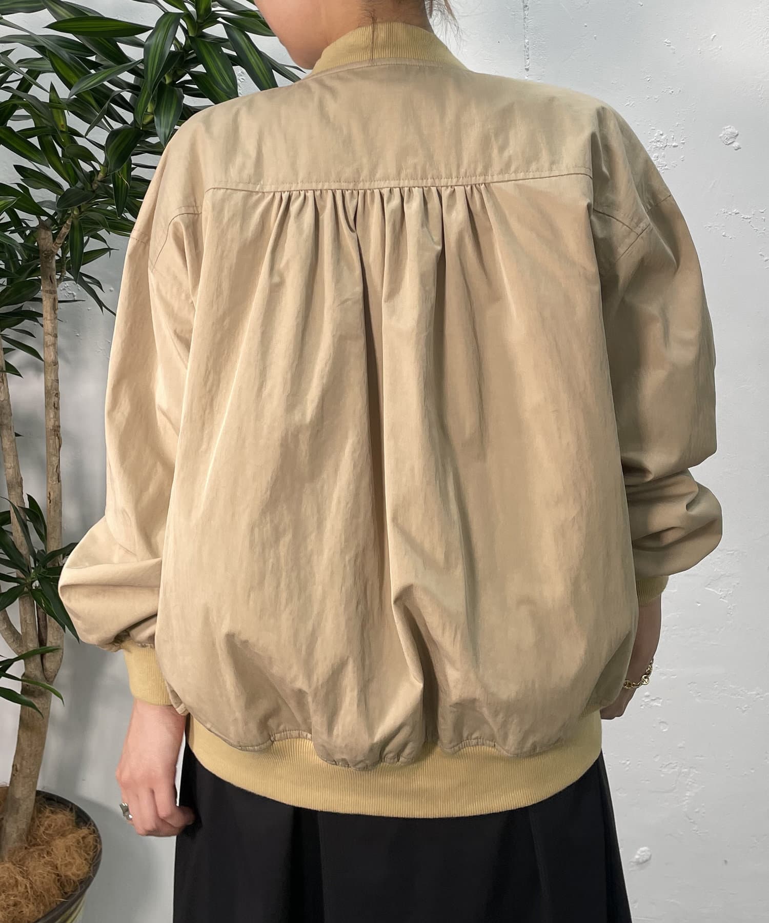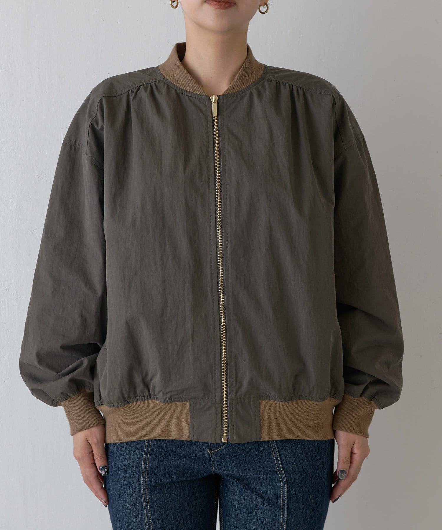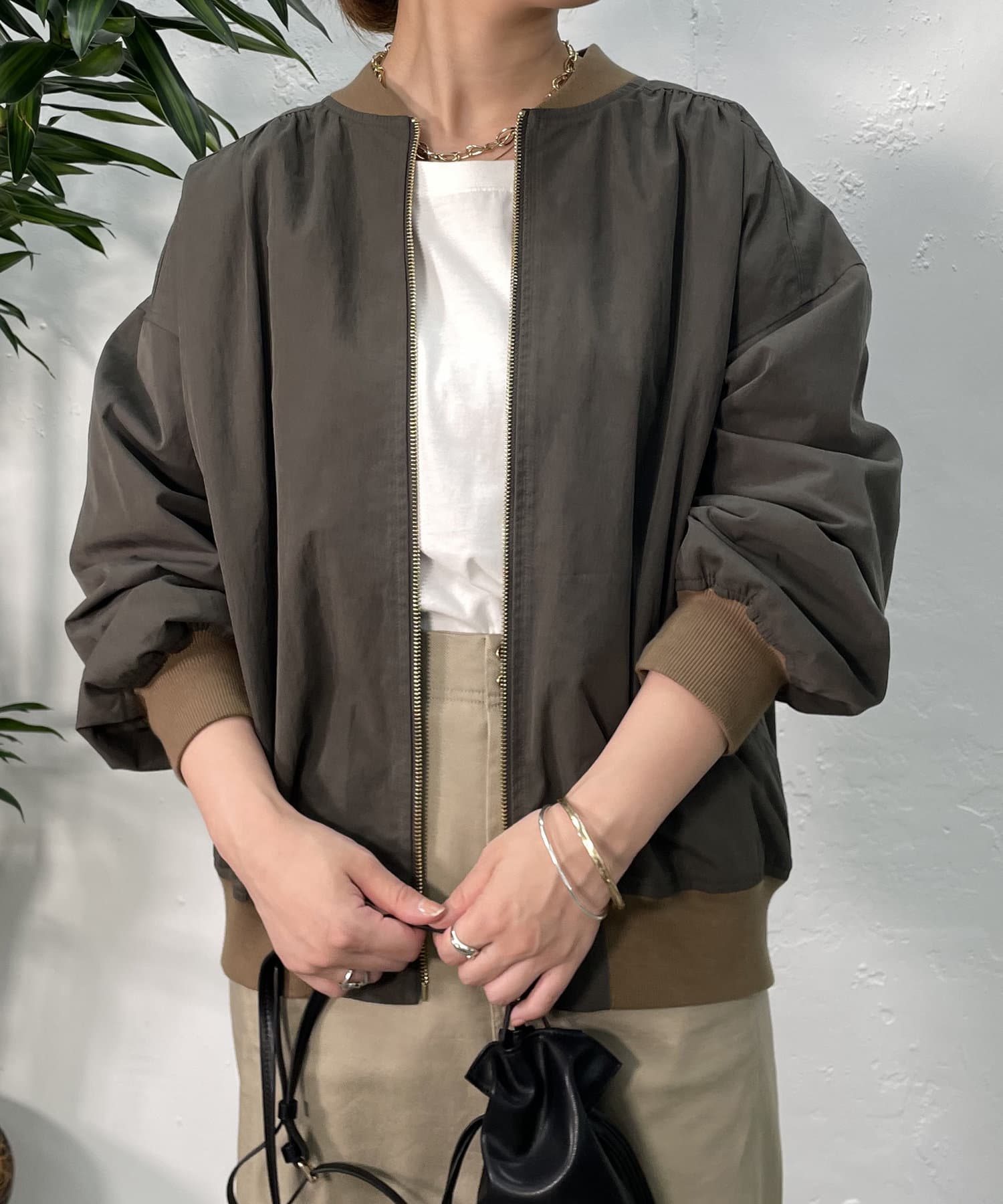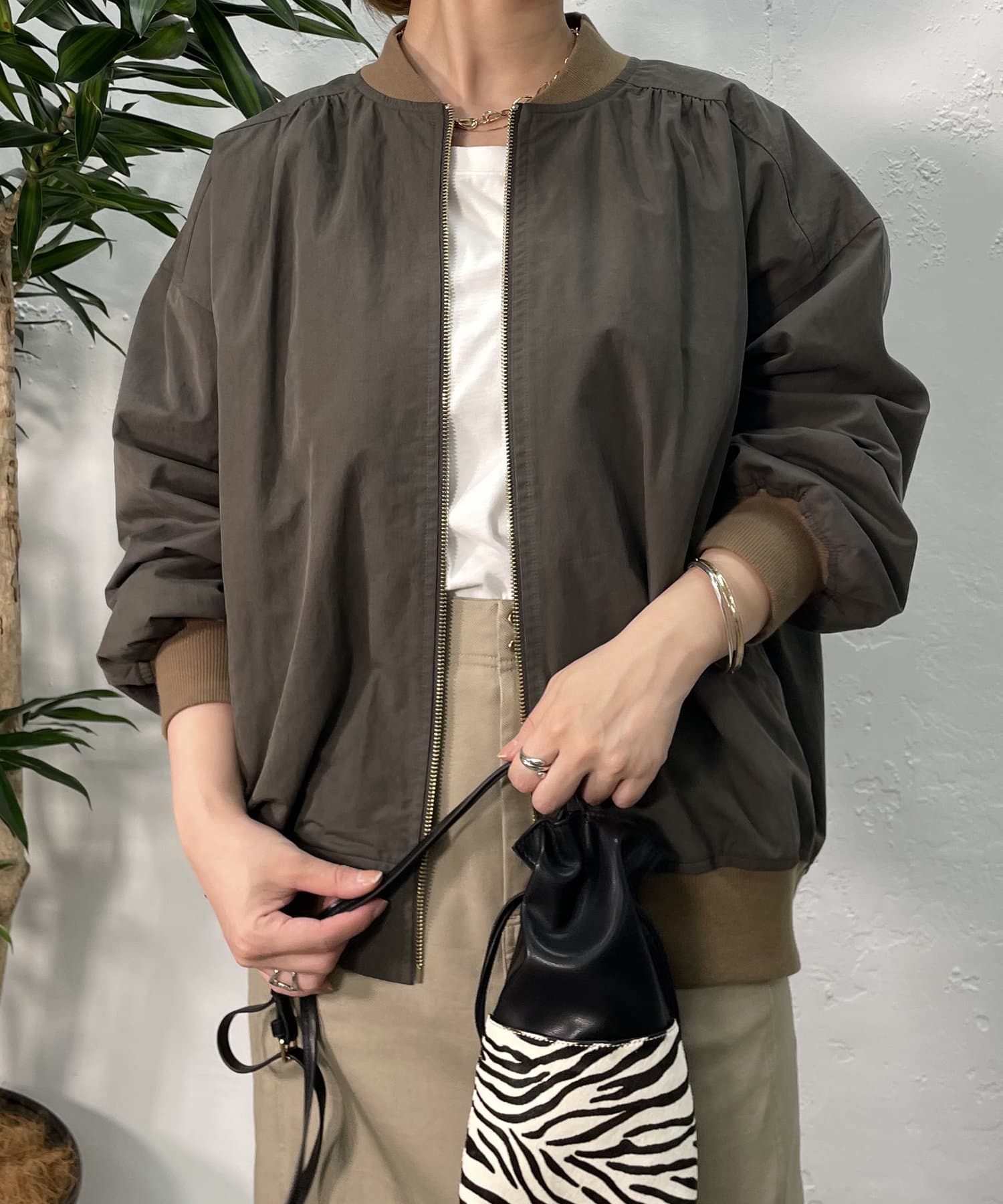 ・たっぷりのギャザーでボリューム感を出すことでカジュアルながらも女性らしいシルエットに仕上げたブルゾン