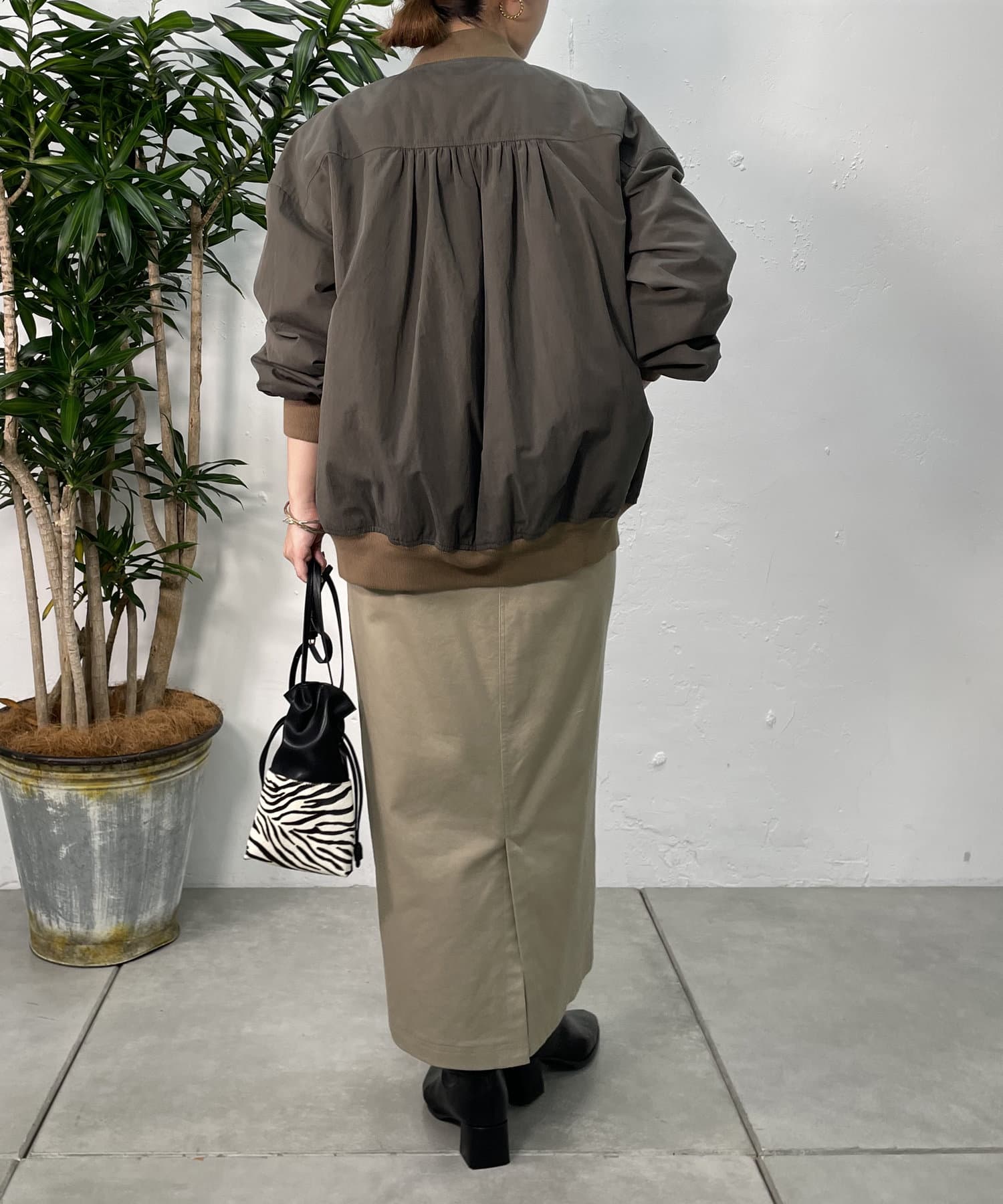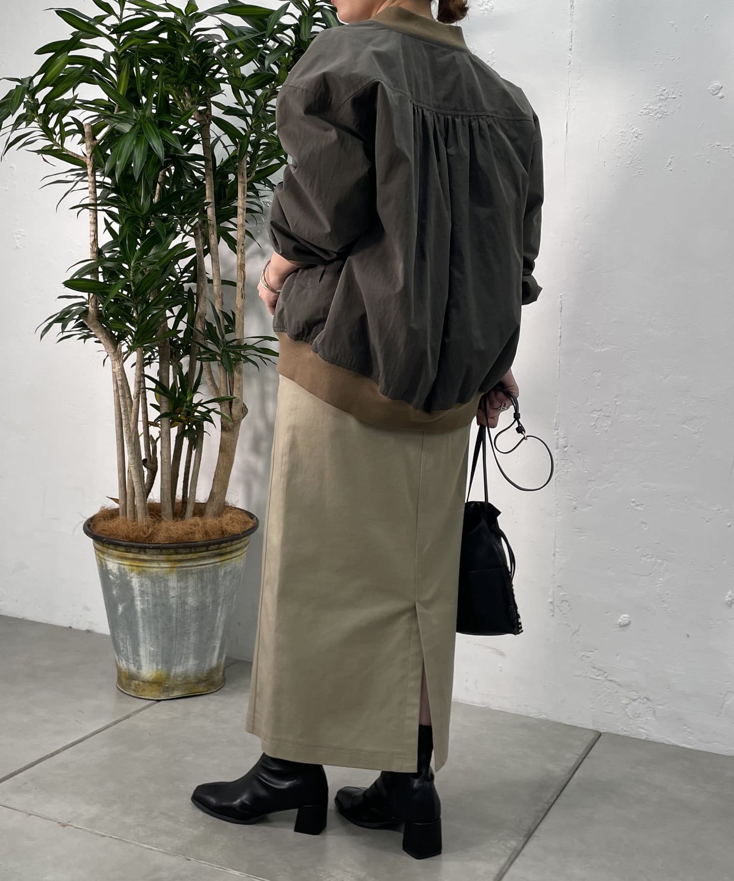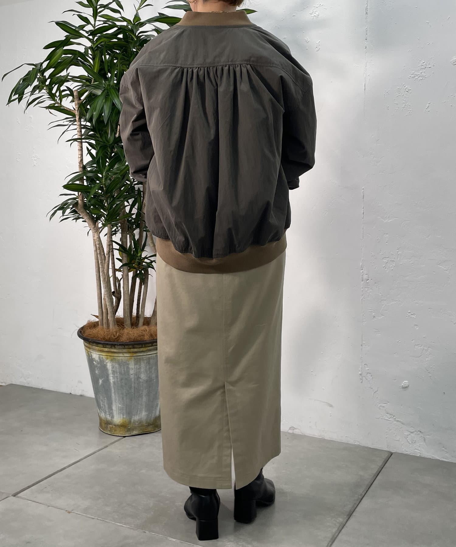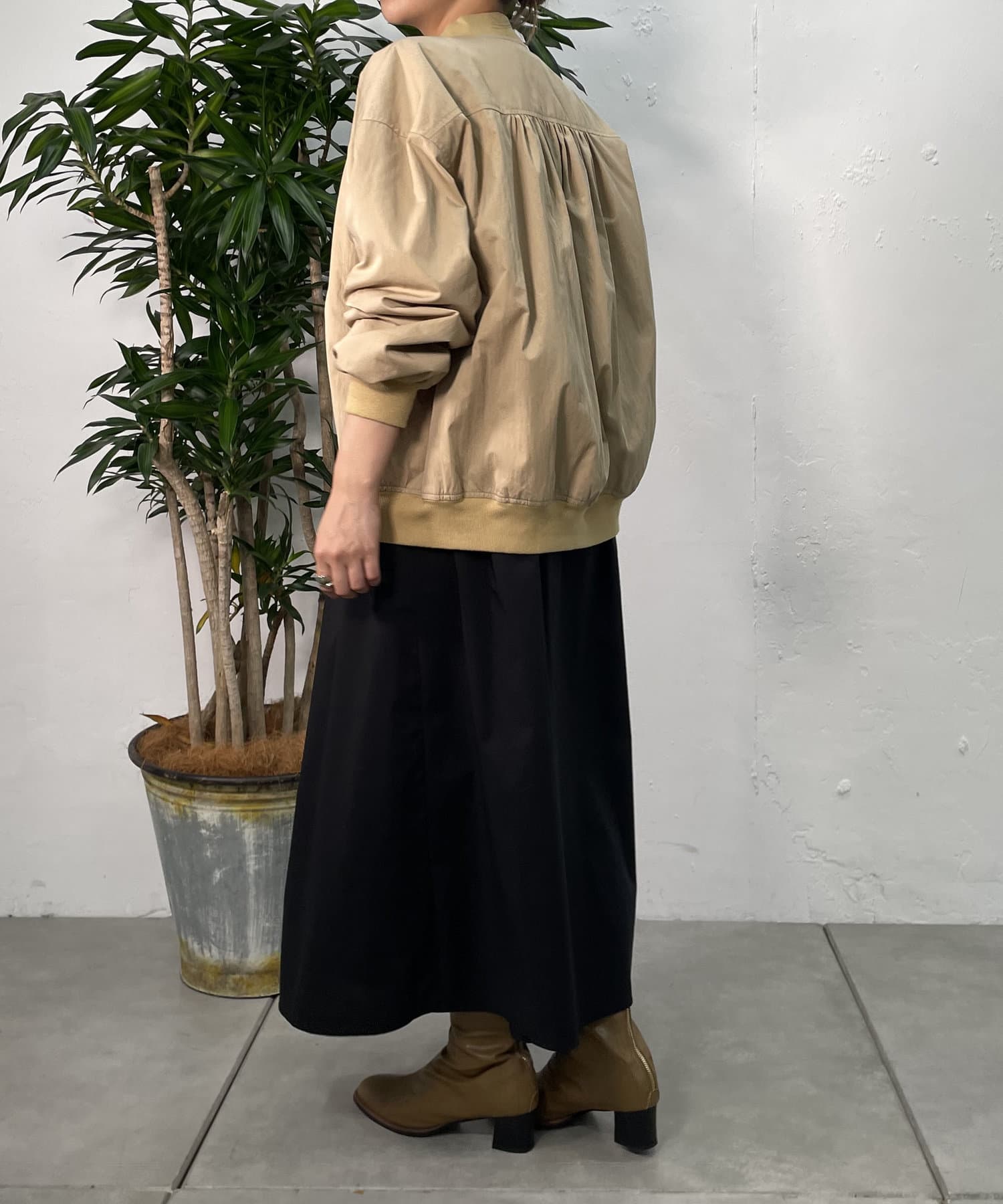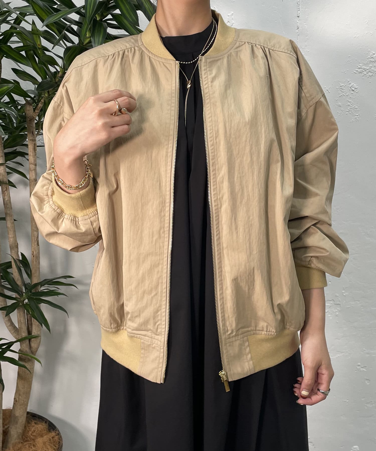 ・たっぷりのギャザーでボリューム感を出すことでカジュアルながらも女性らしいシルエットに仕上げたブルゾン