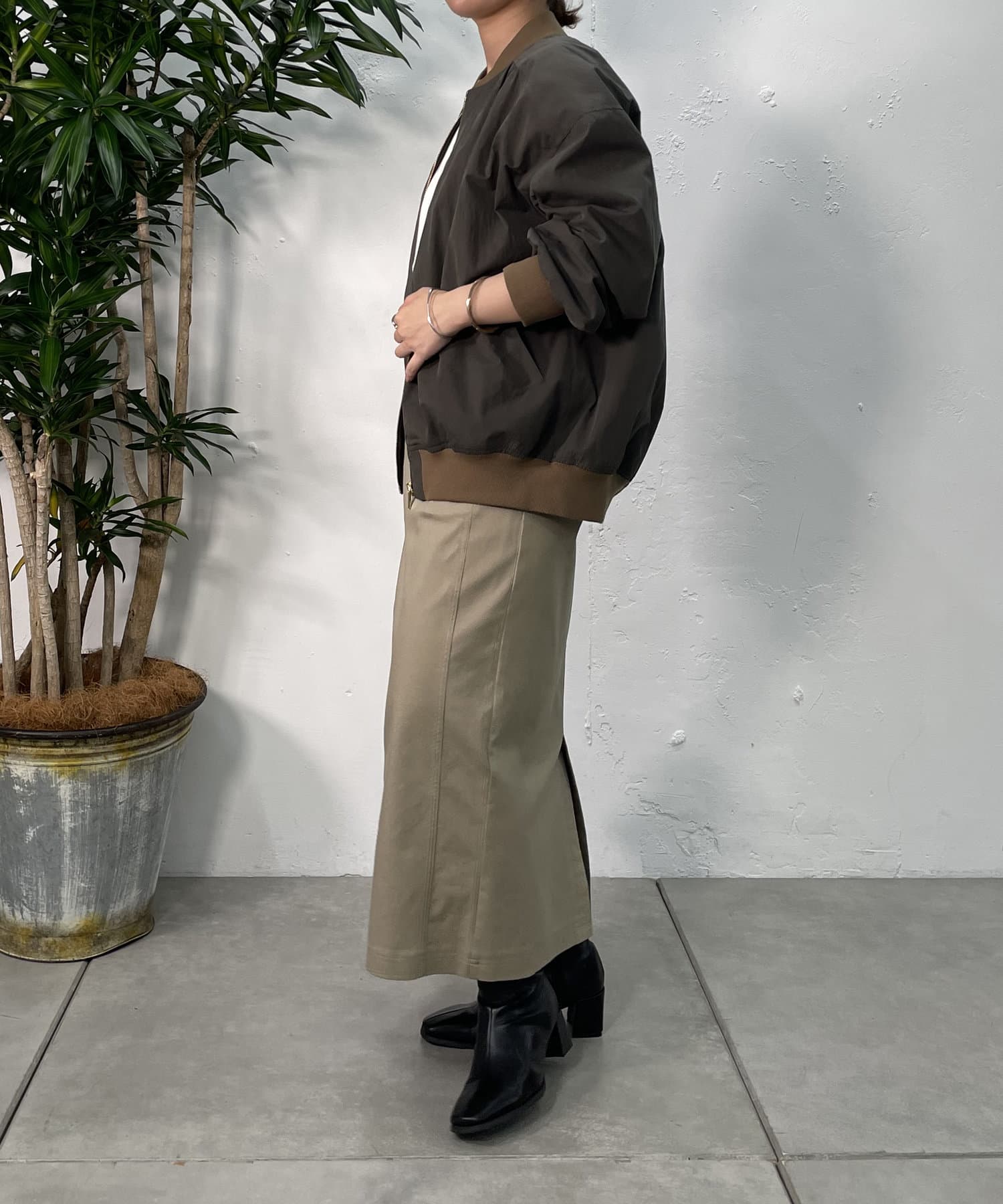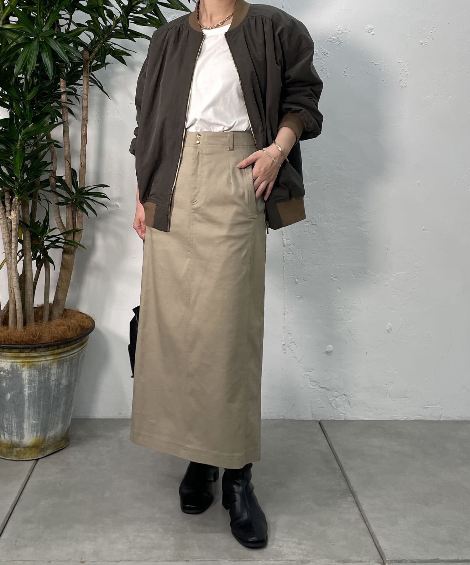 ・スキニー等のスッキリとしたシルエットのパンツでも、スカート合わせでレディライクに仕上げても◎ボトムス次第で表情を変える一枚です。