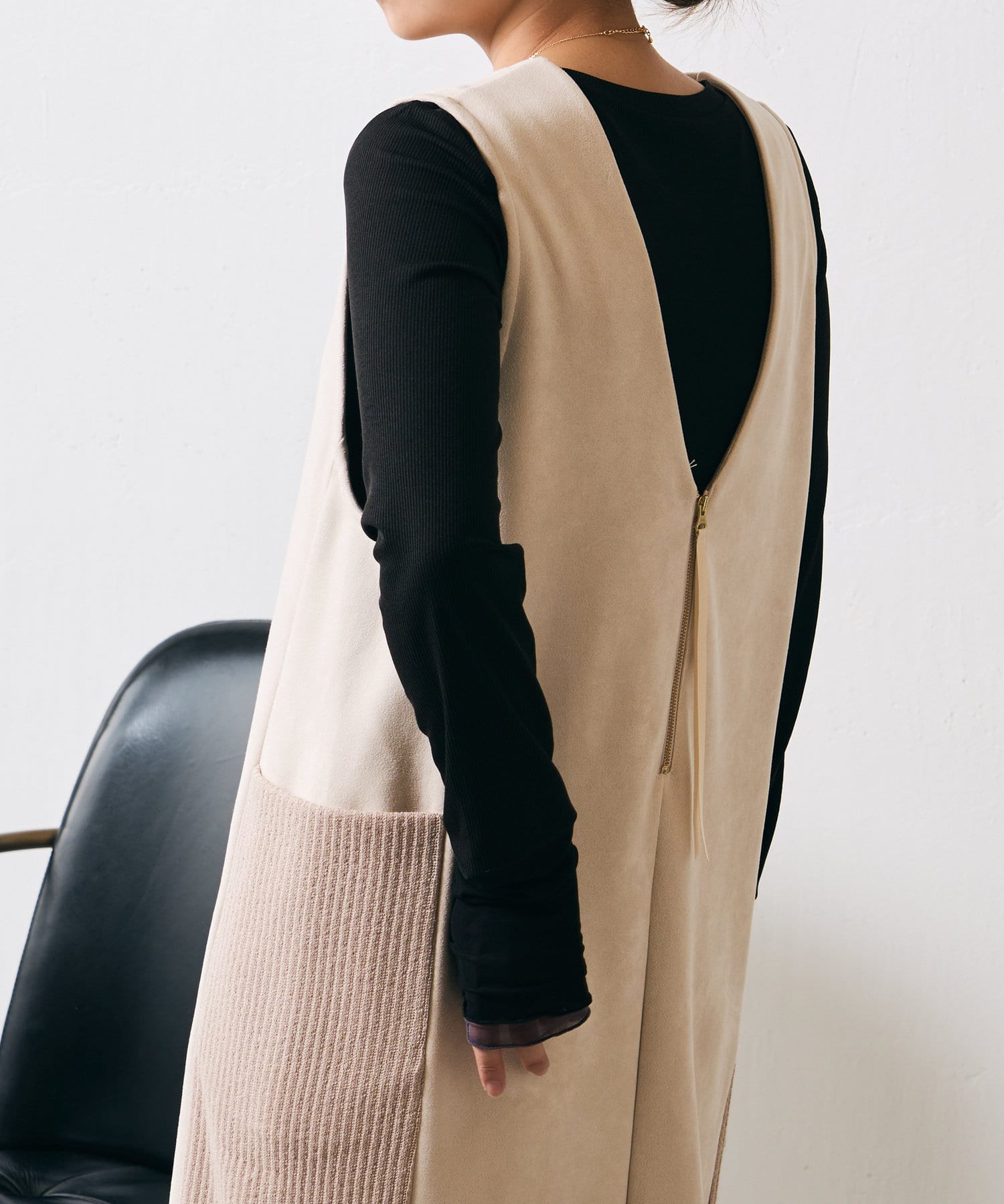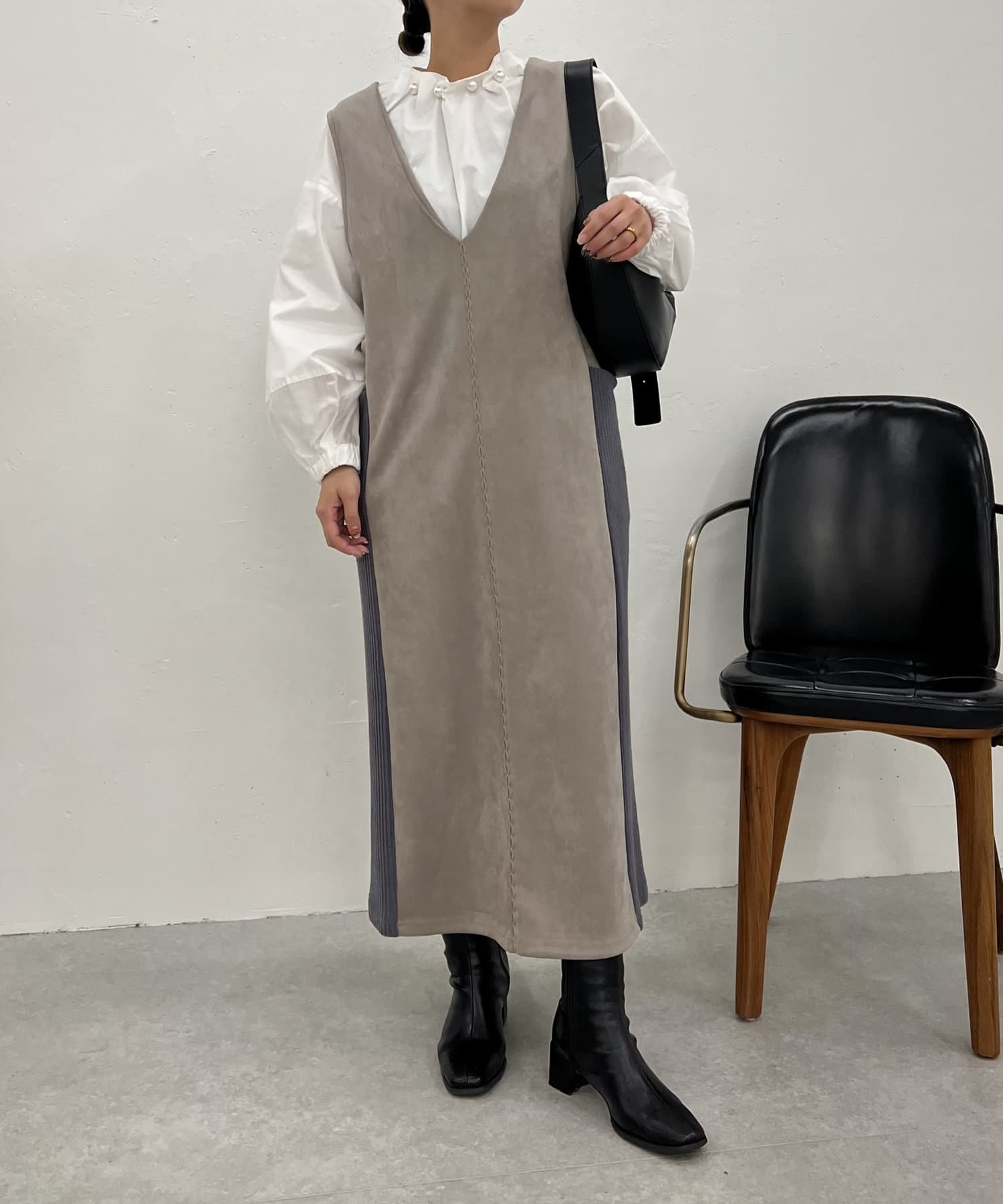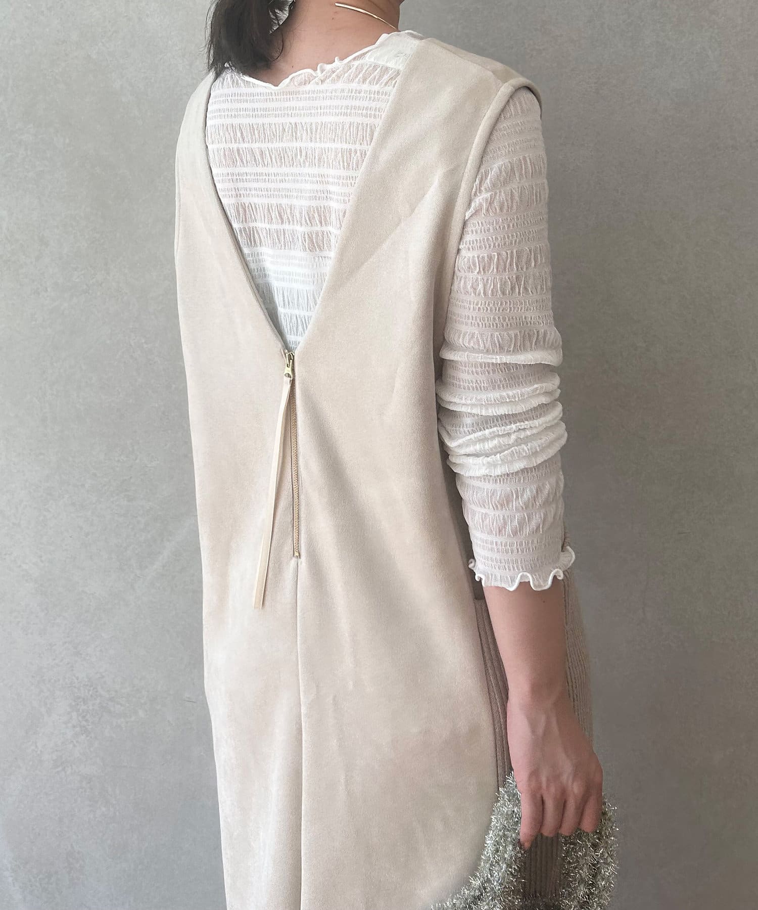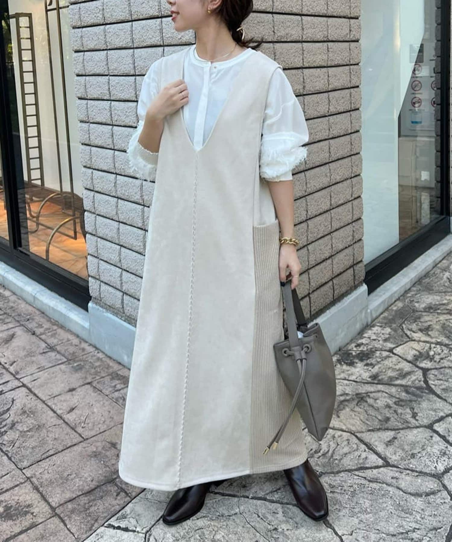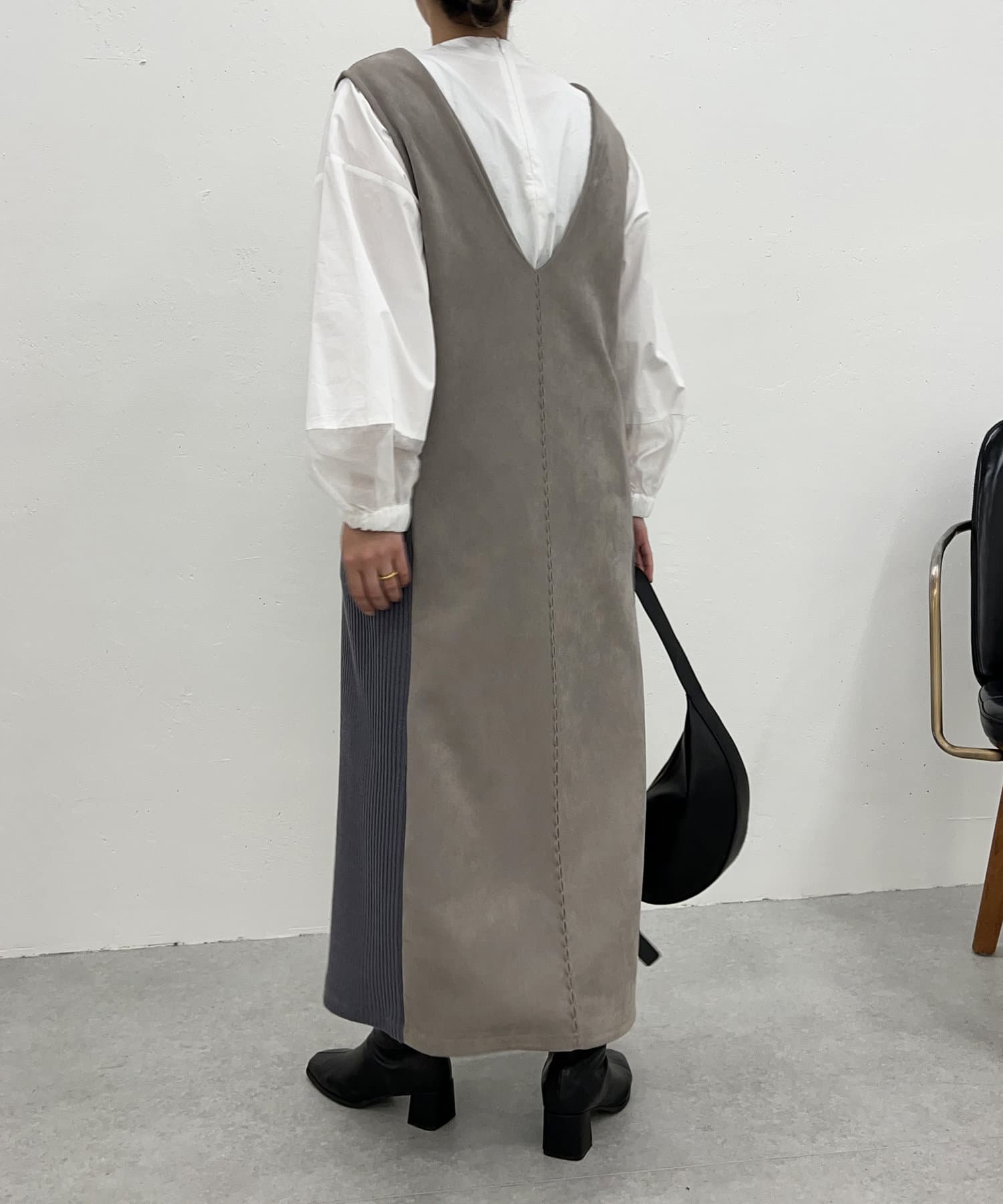・シーズンムードを高めてくれる、スエード素材のワンピース。