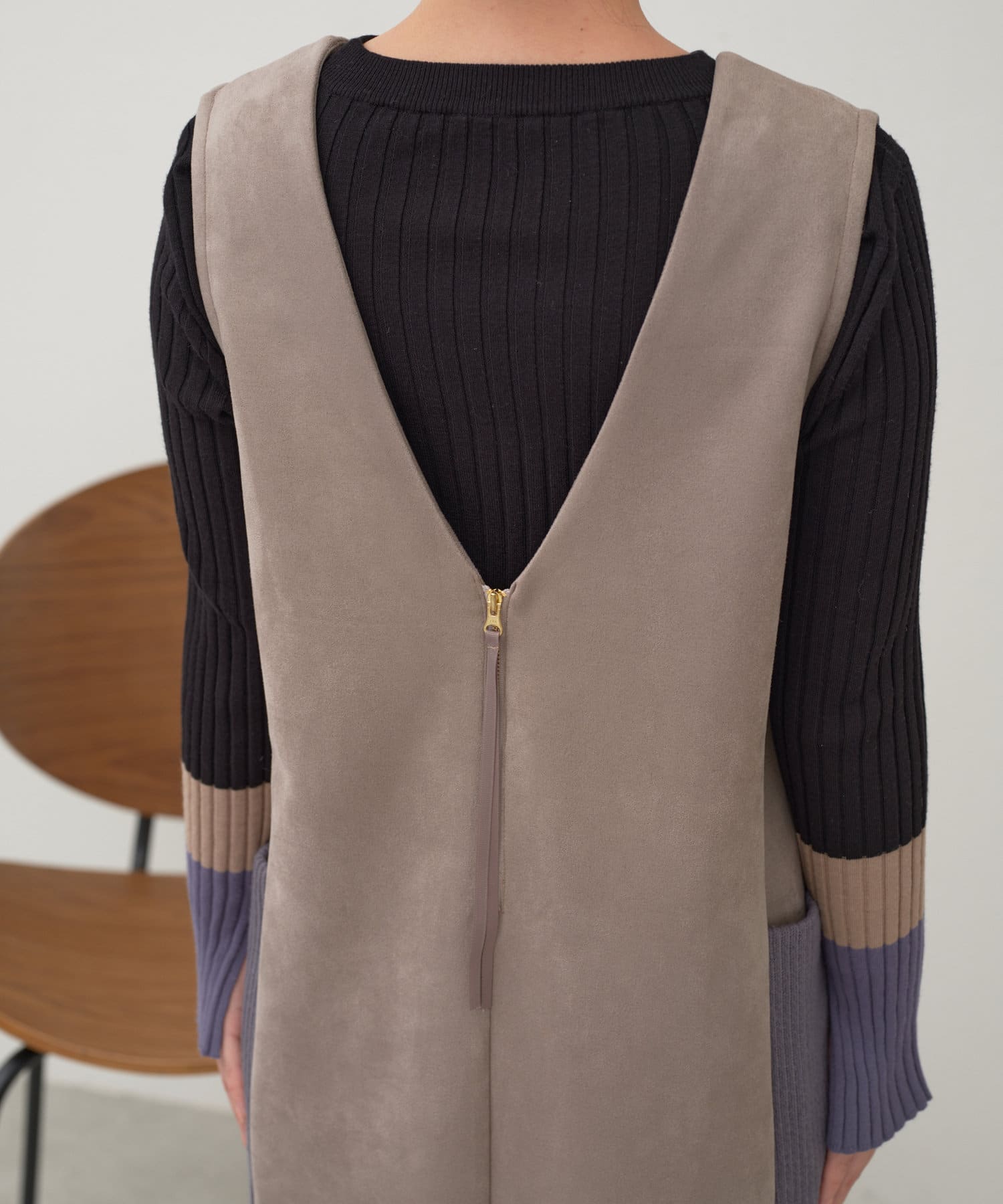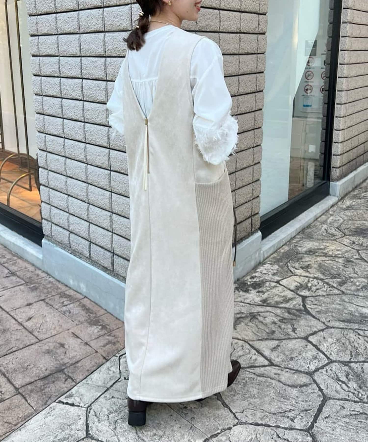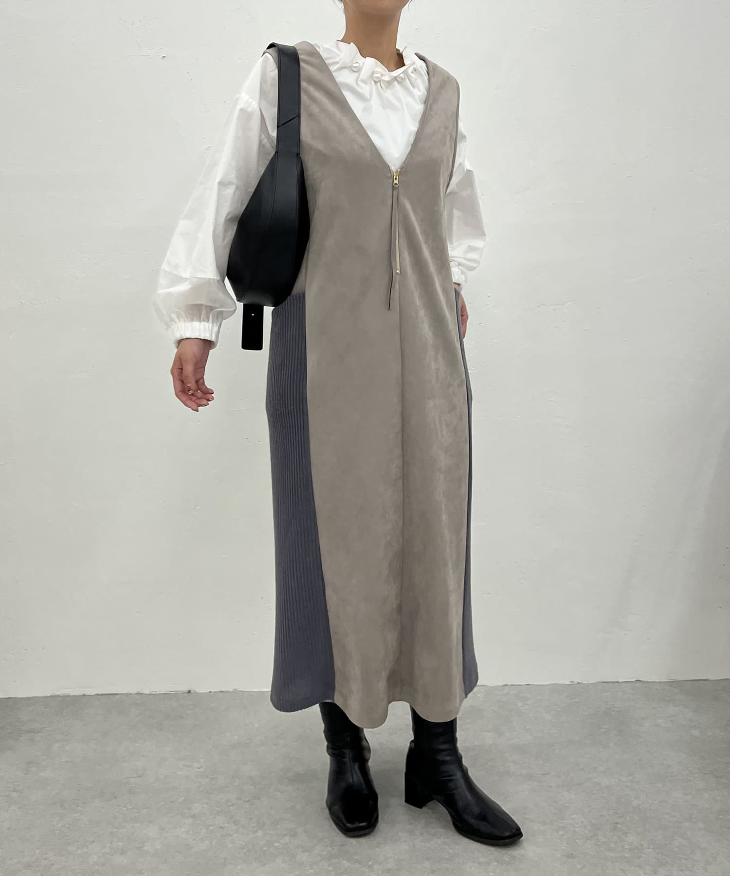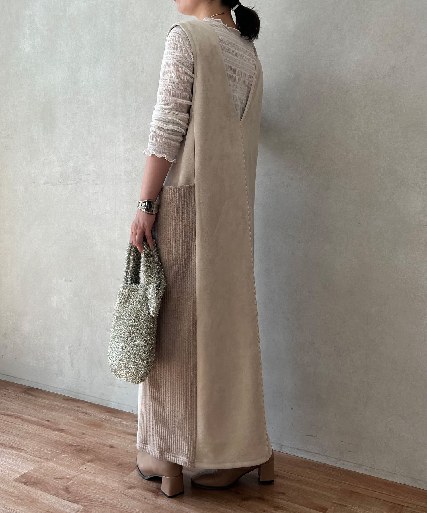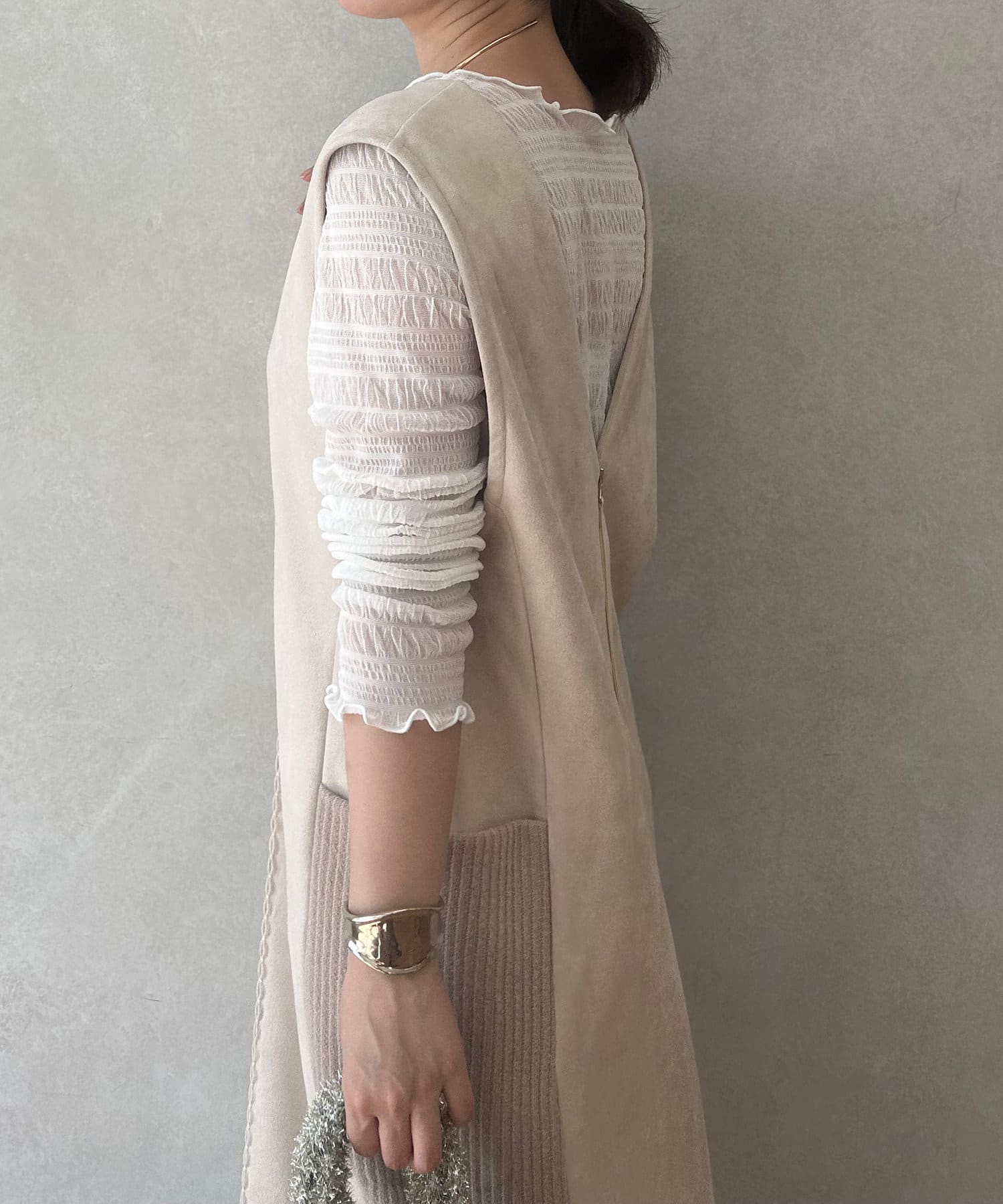 ・シーズンムードを高めてくれる、スエード素材のワンピース。