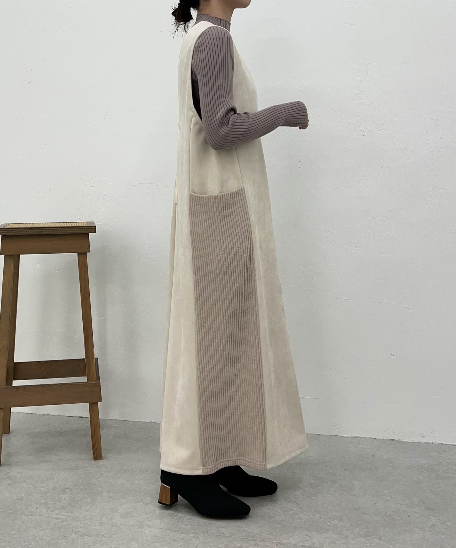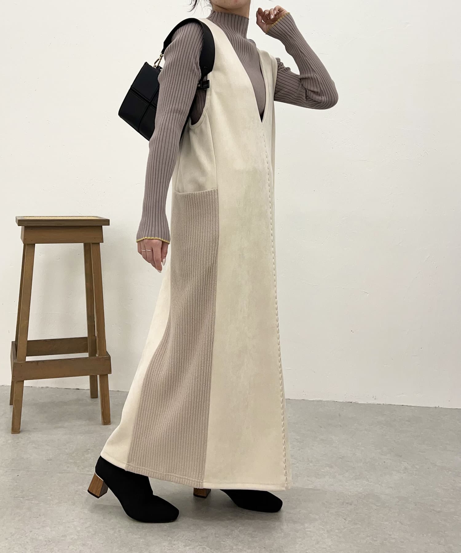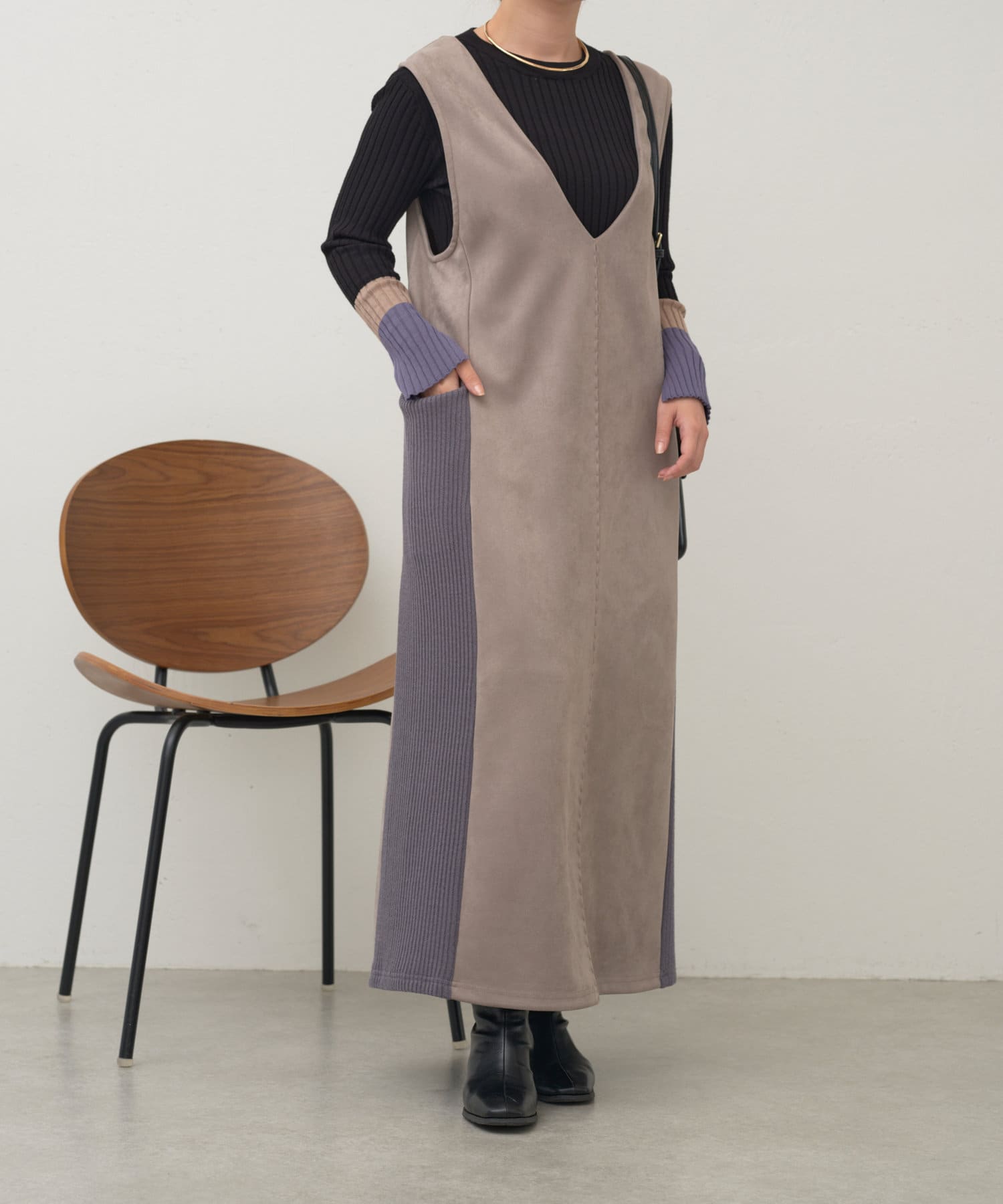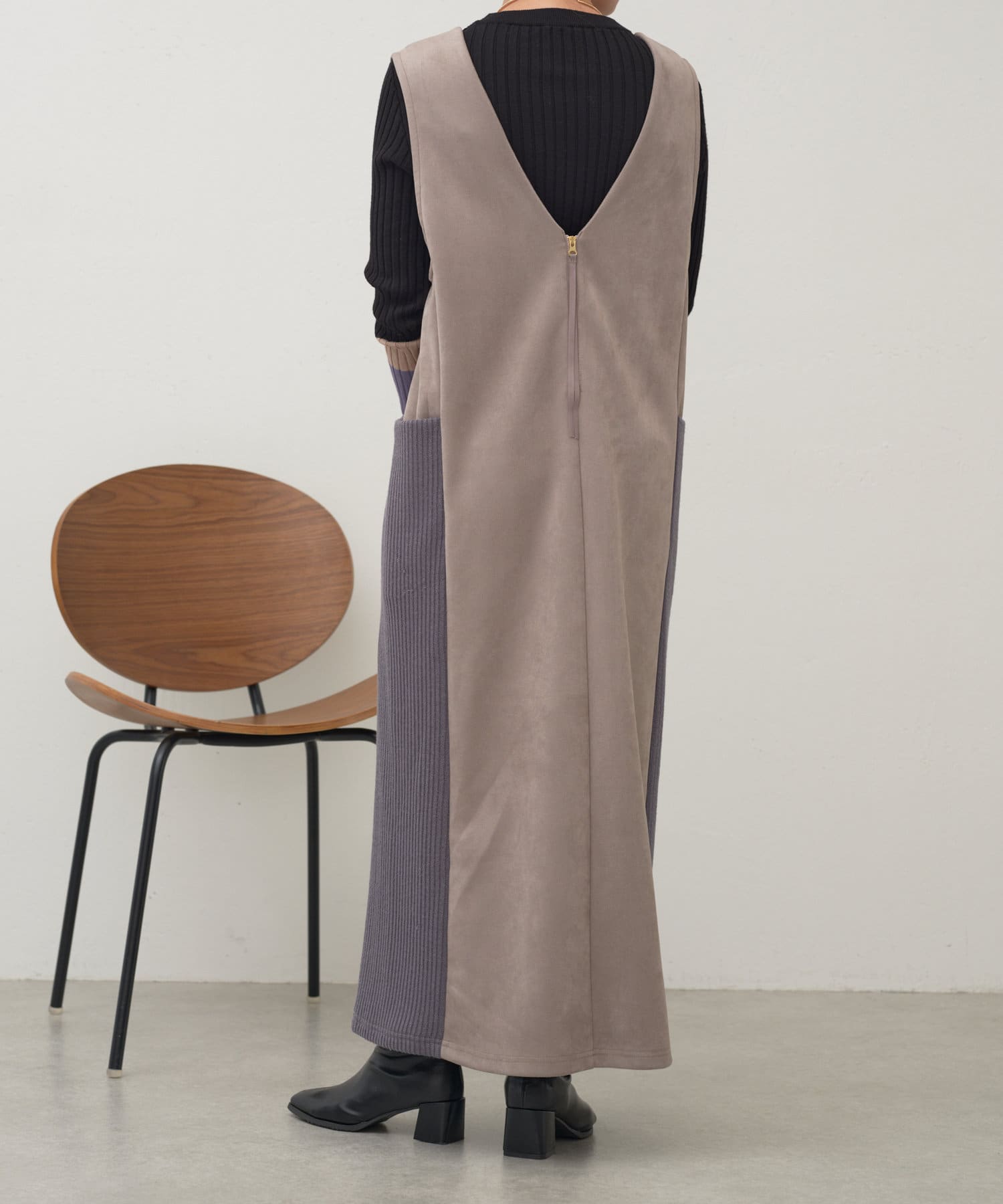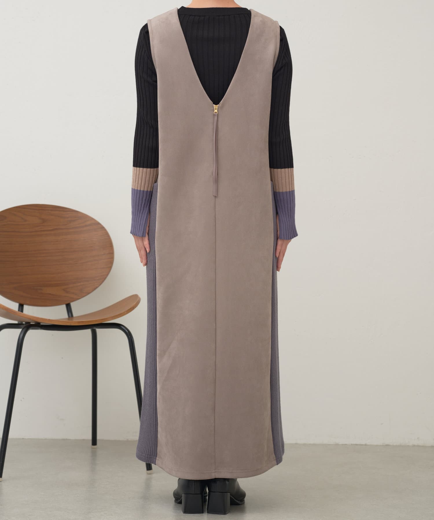 ・シーズンムードを高めてくれる、スエード素材のワンピース。