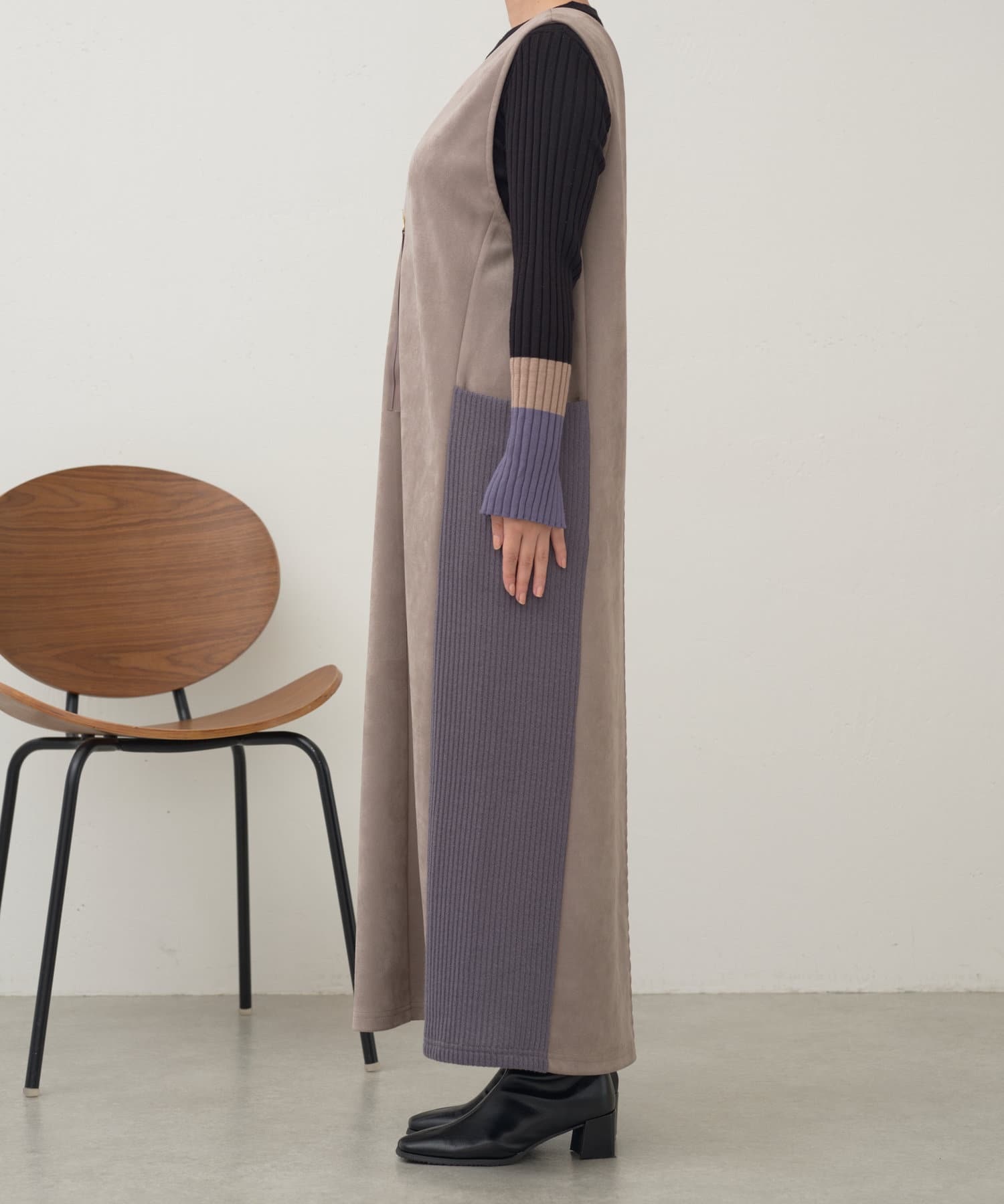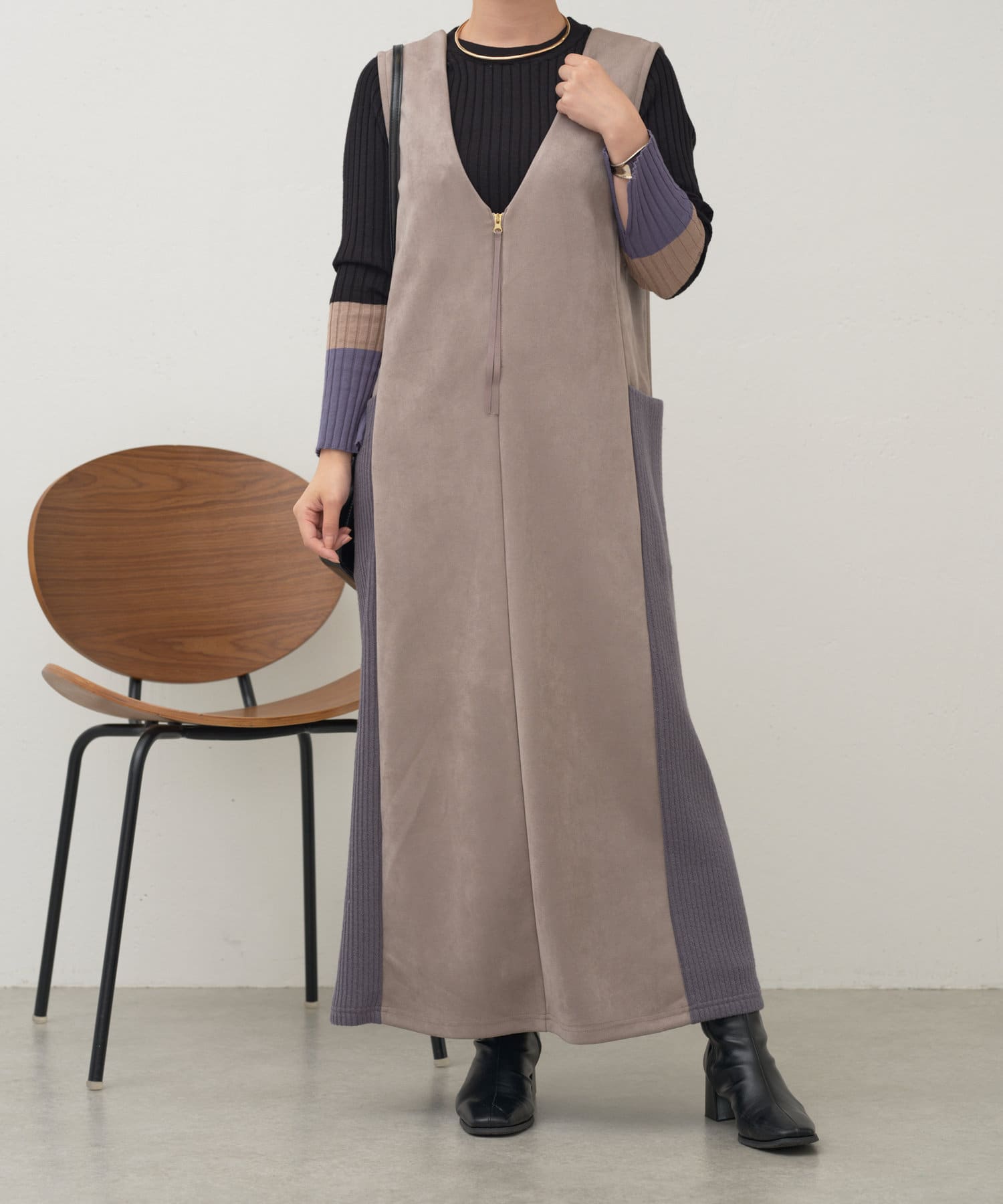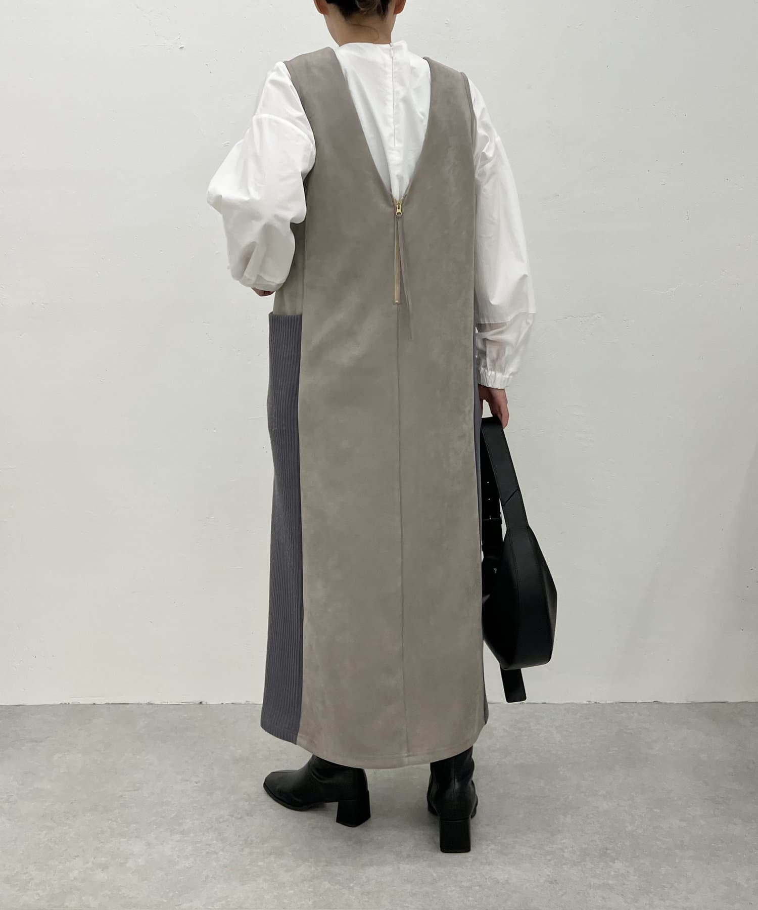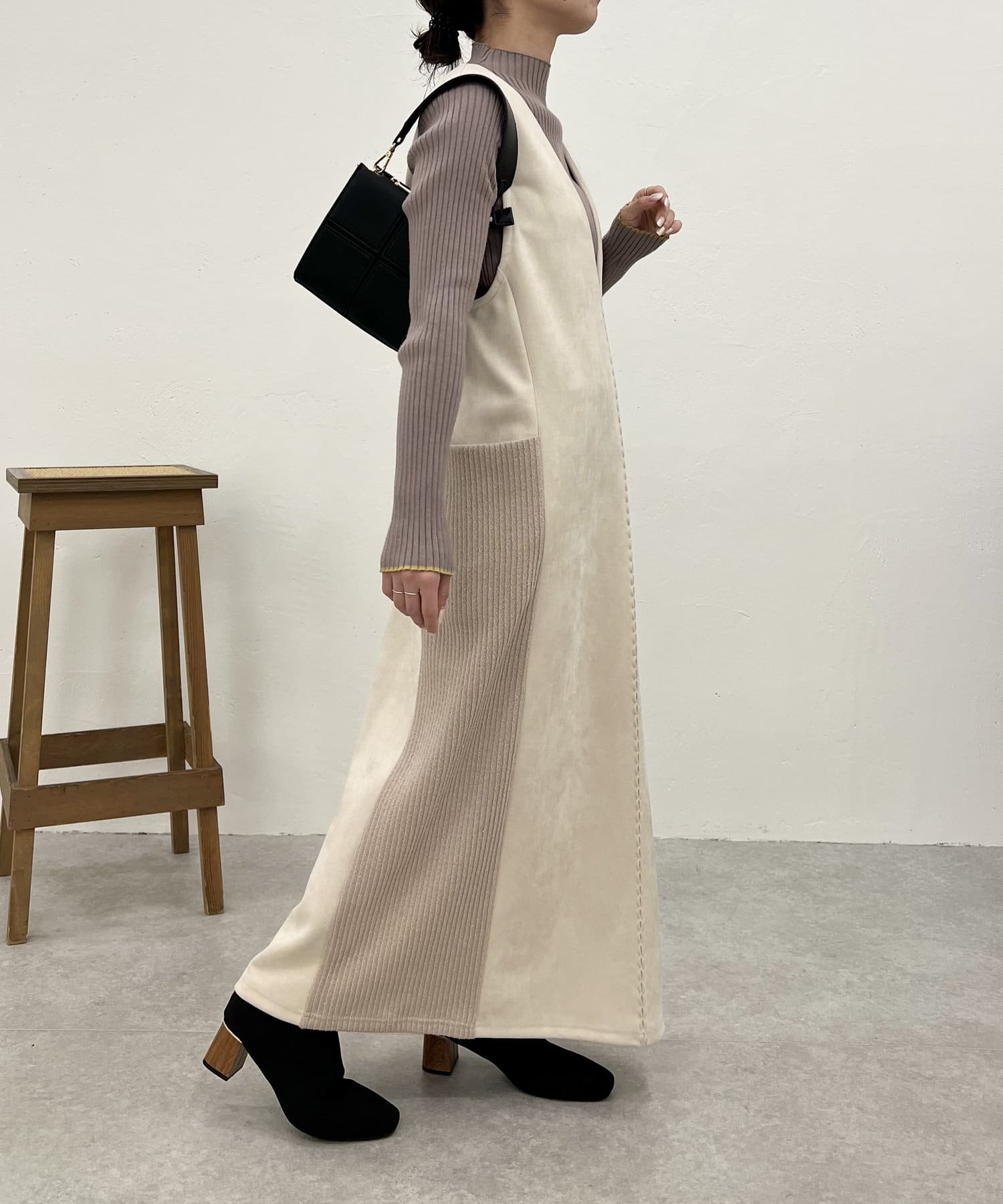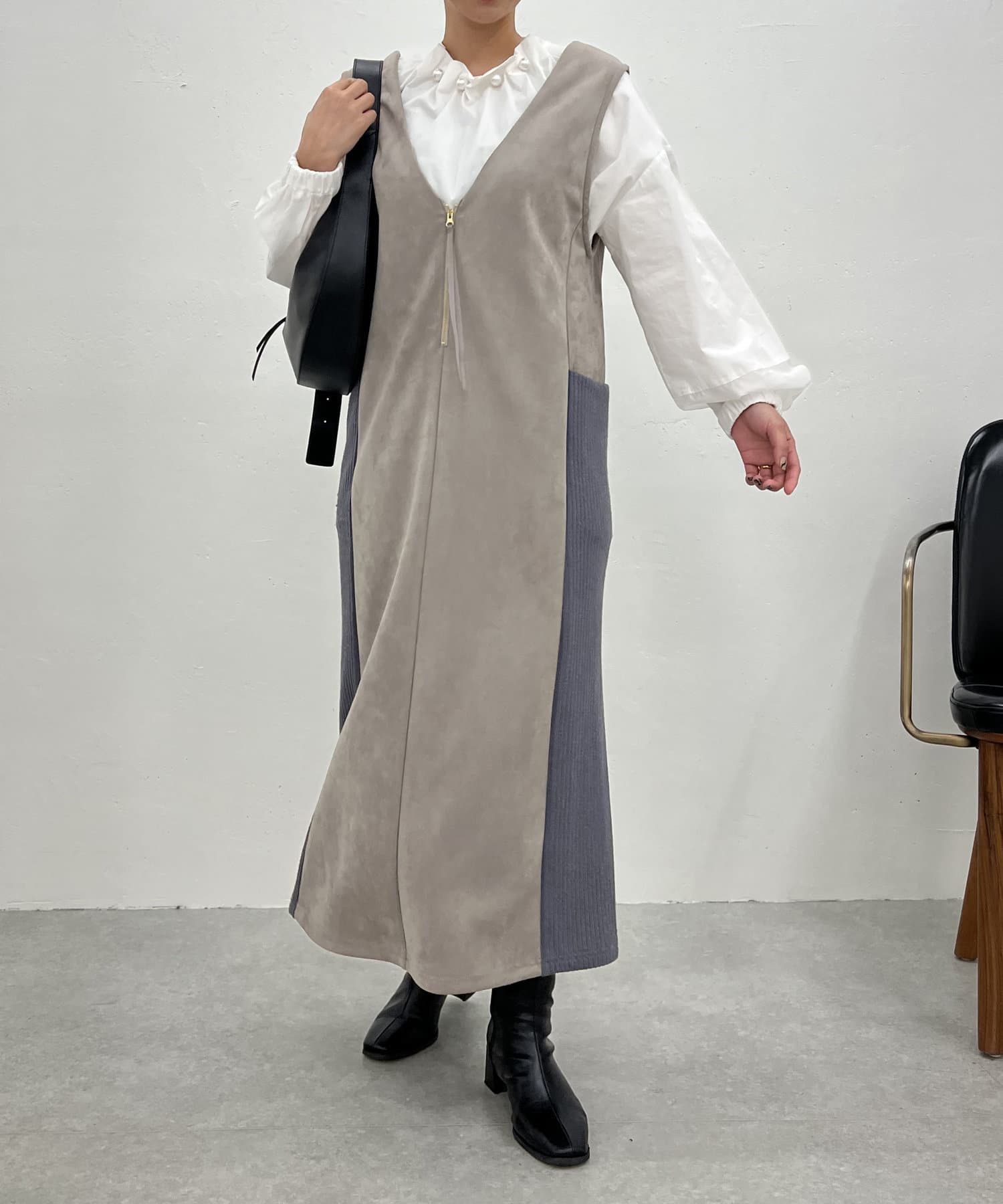 ・シーズンムードを高めてくれる、スエード素材のワンピース。