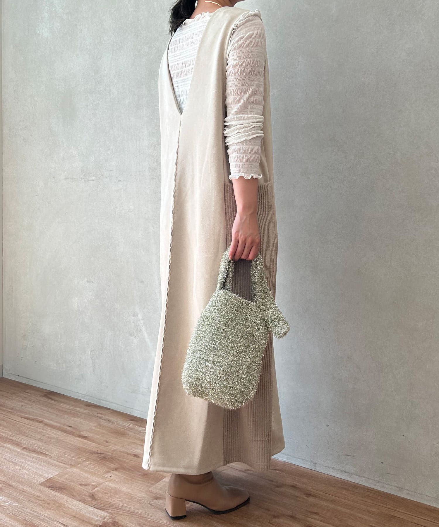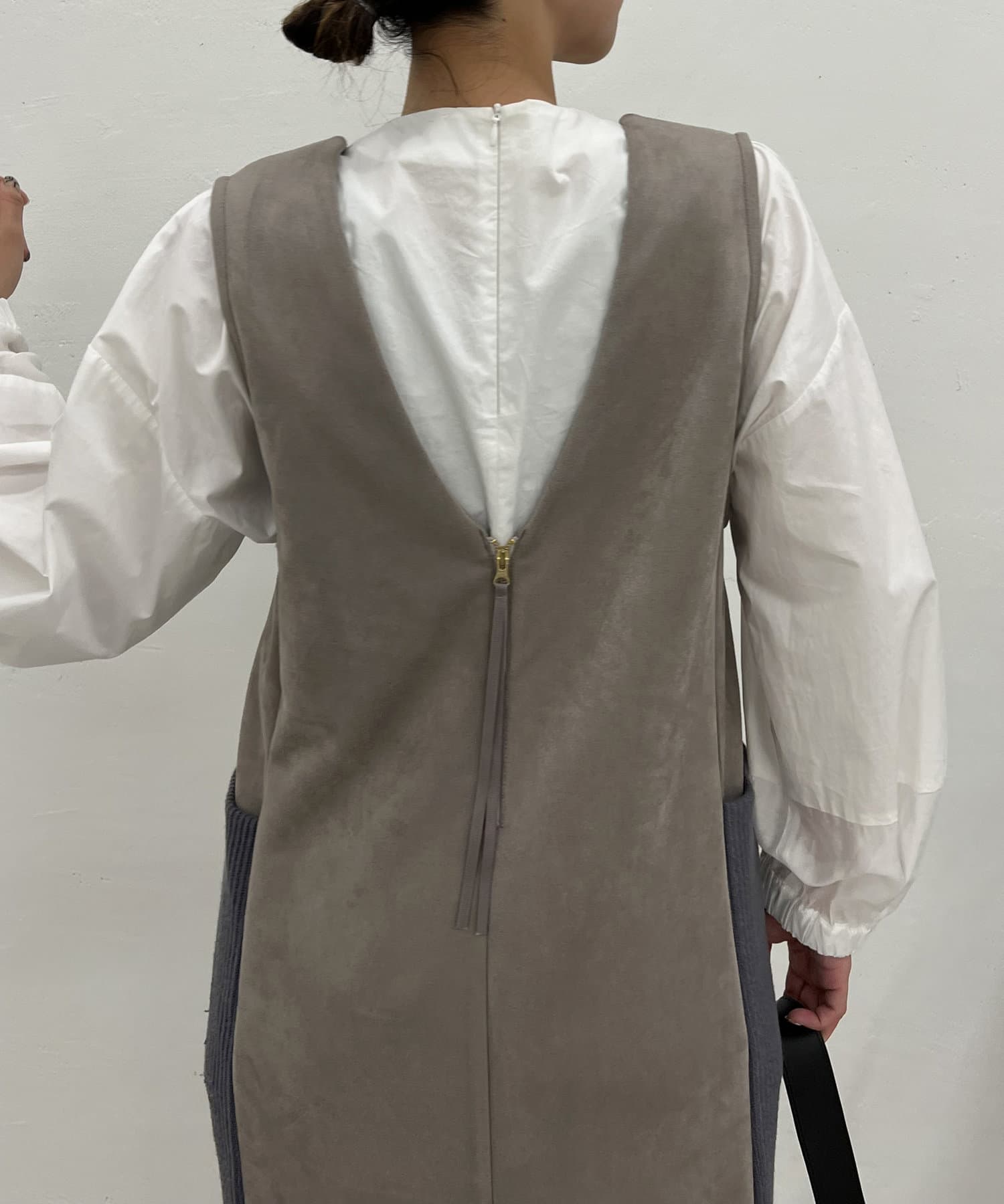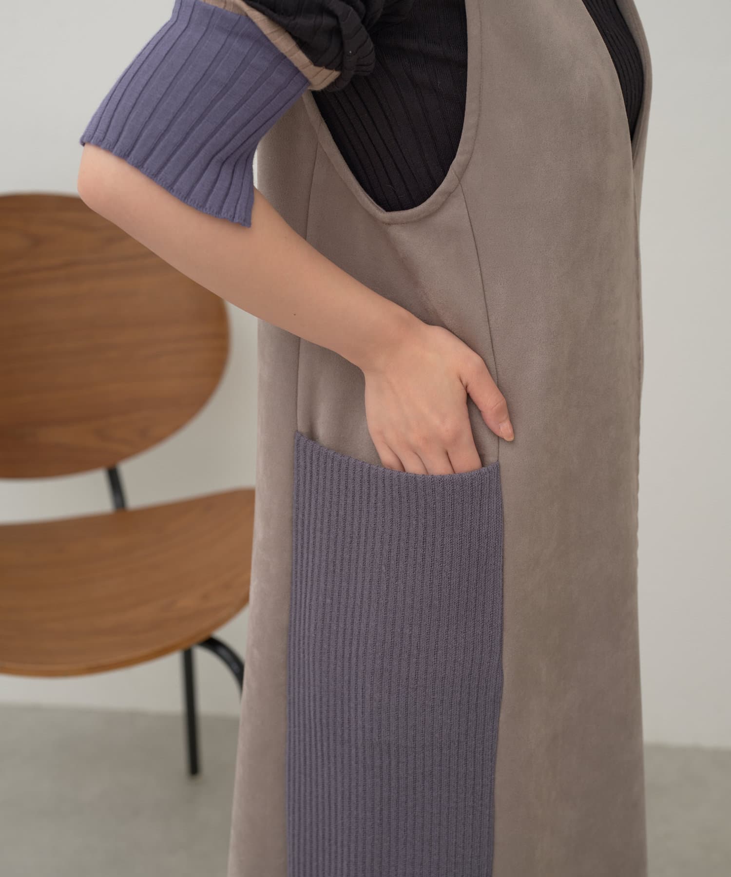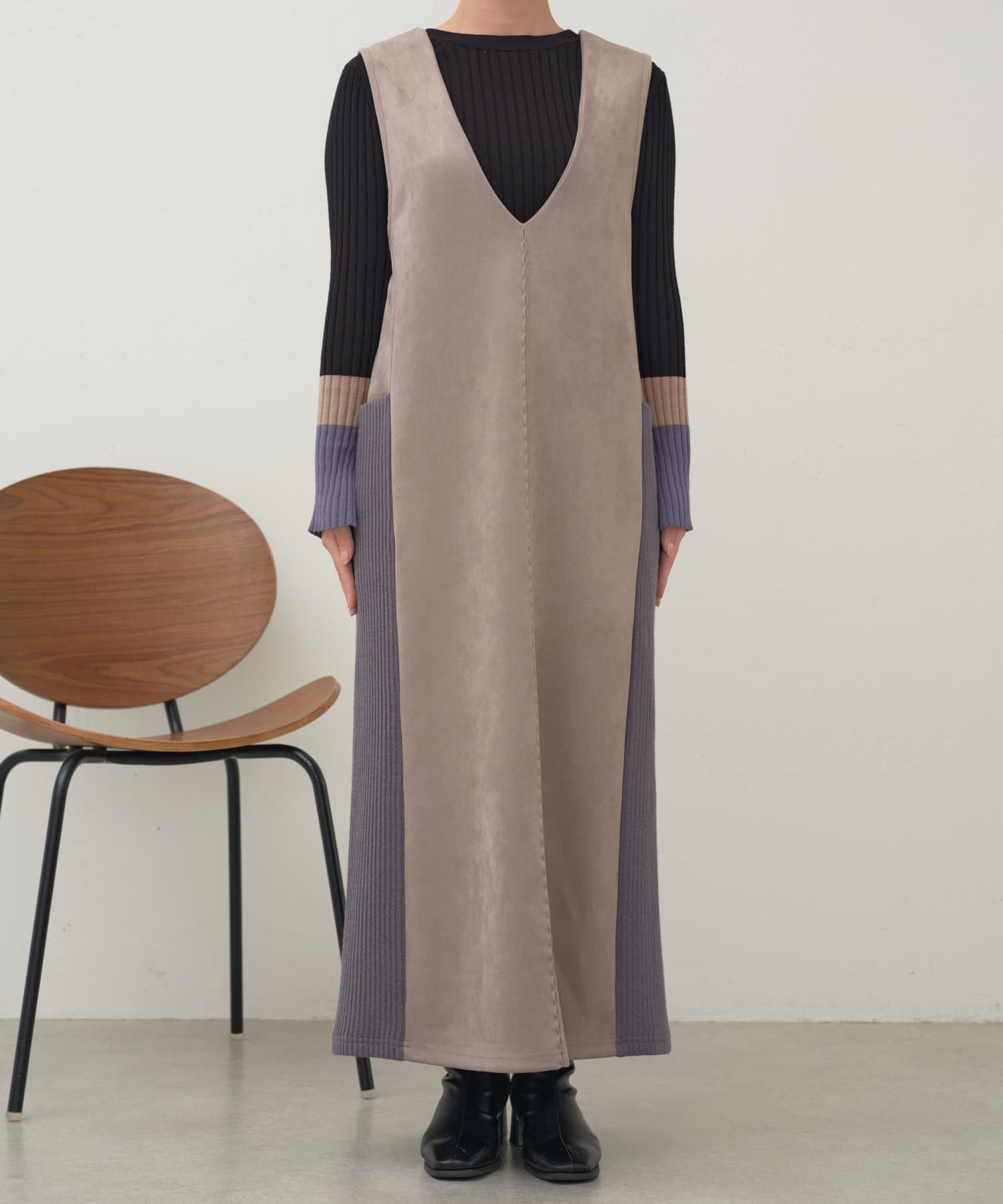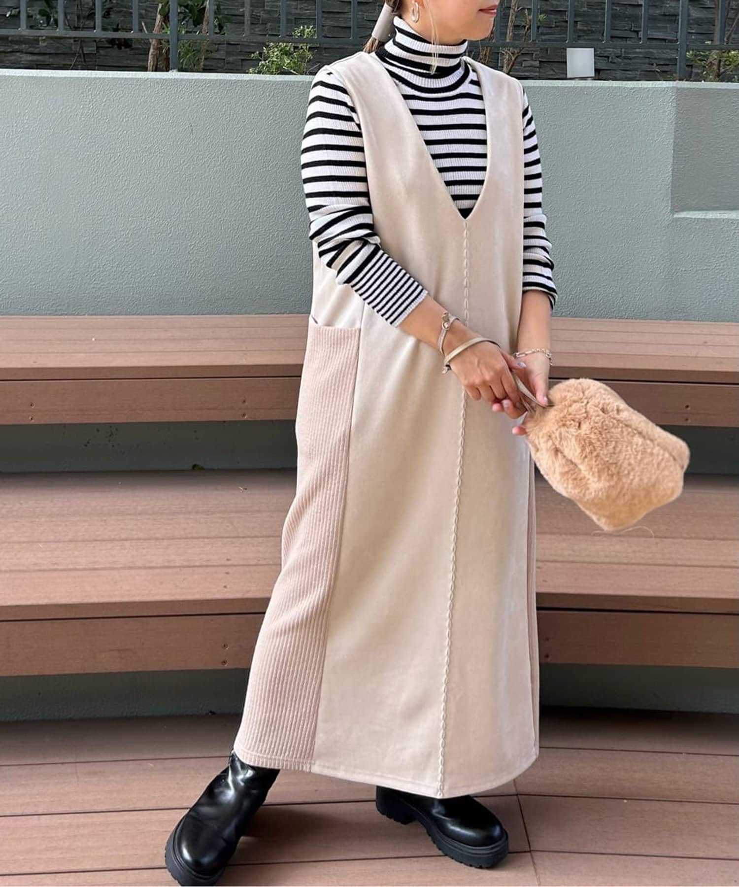 ・シーズンムードを高めてくれる、スエード素材のワンピース。