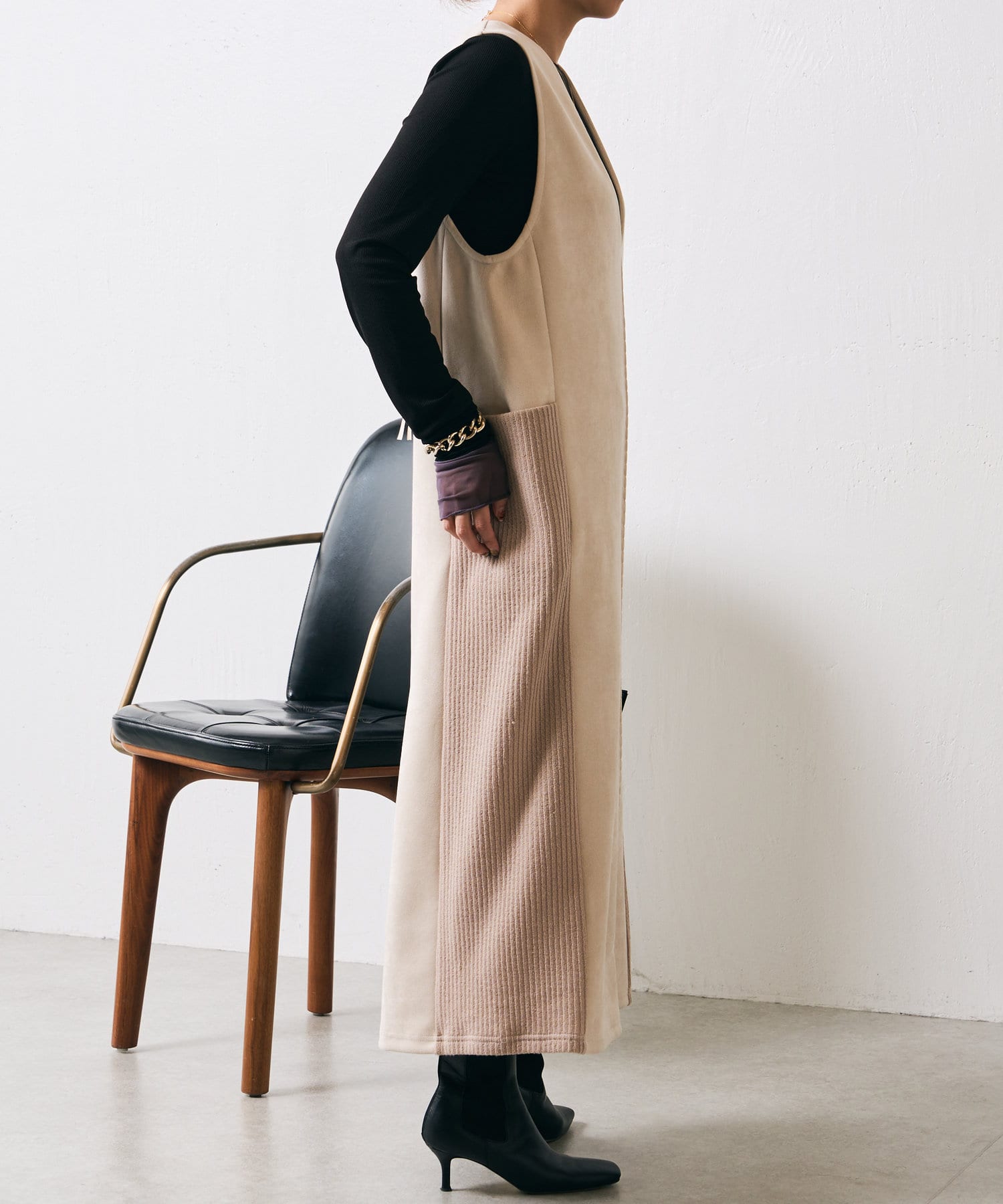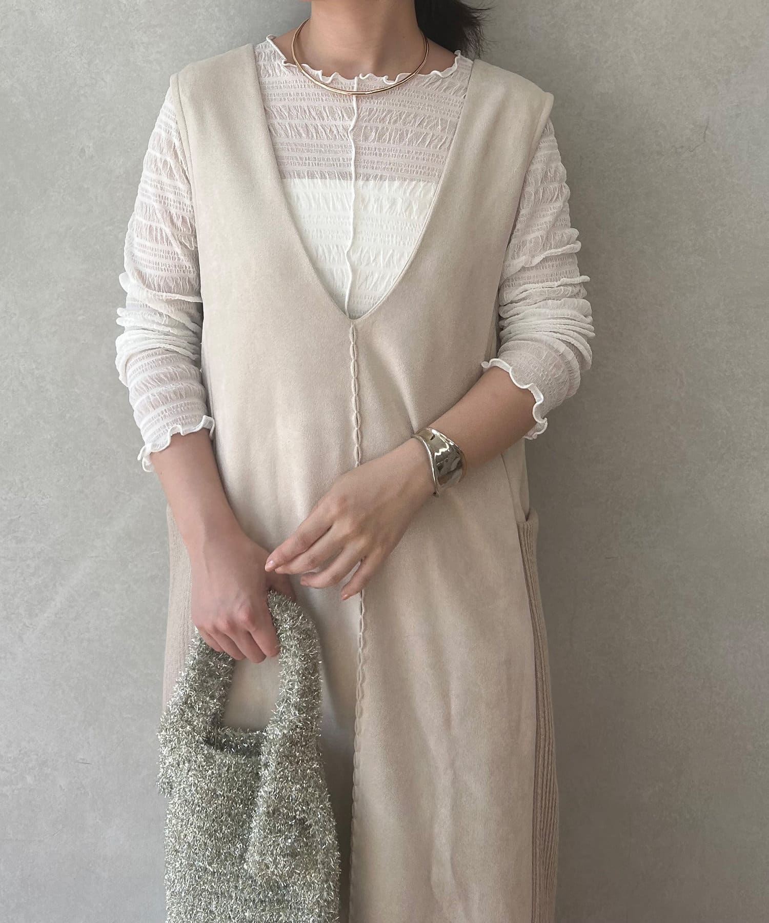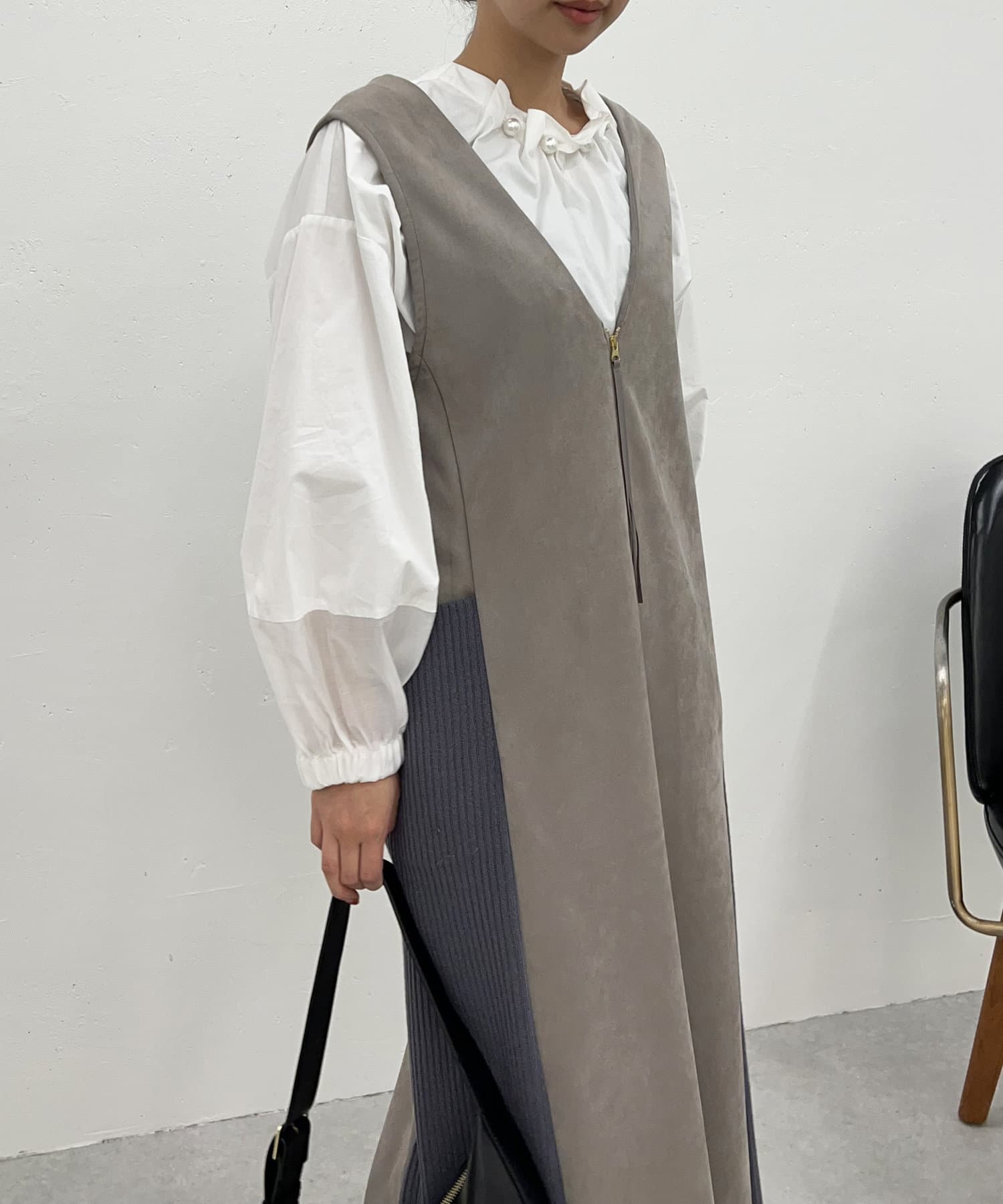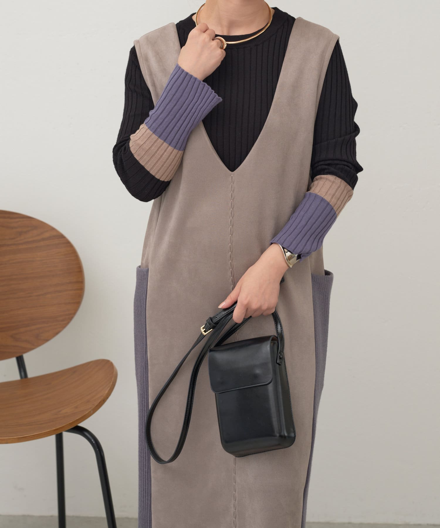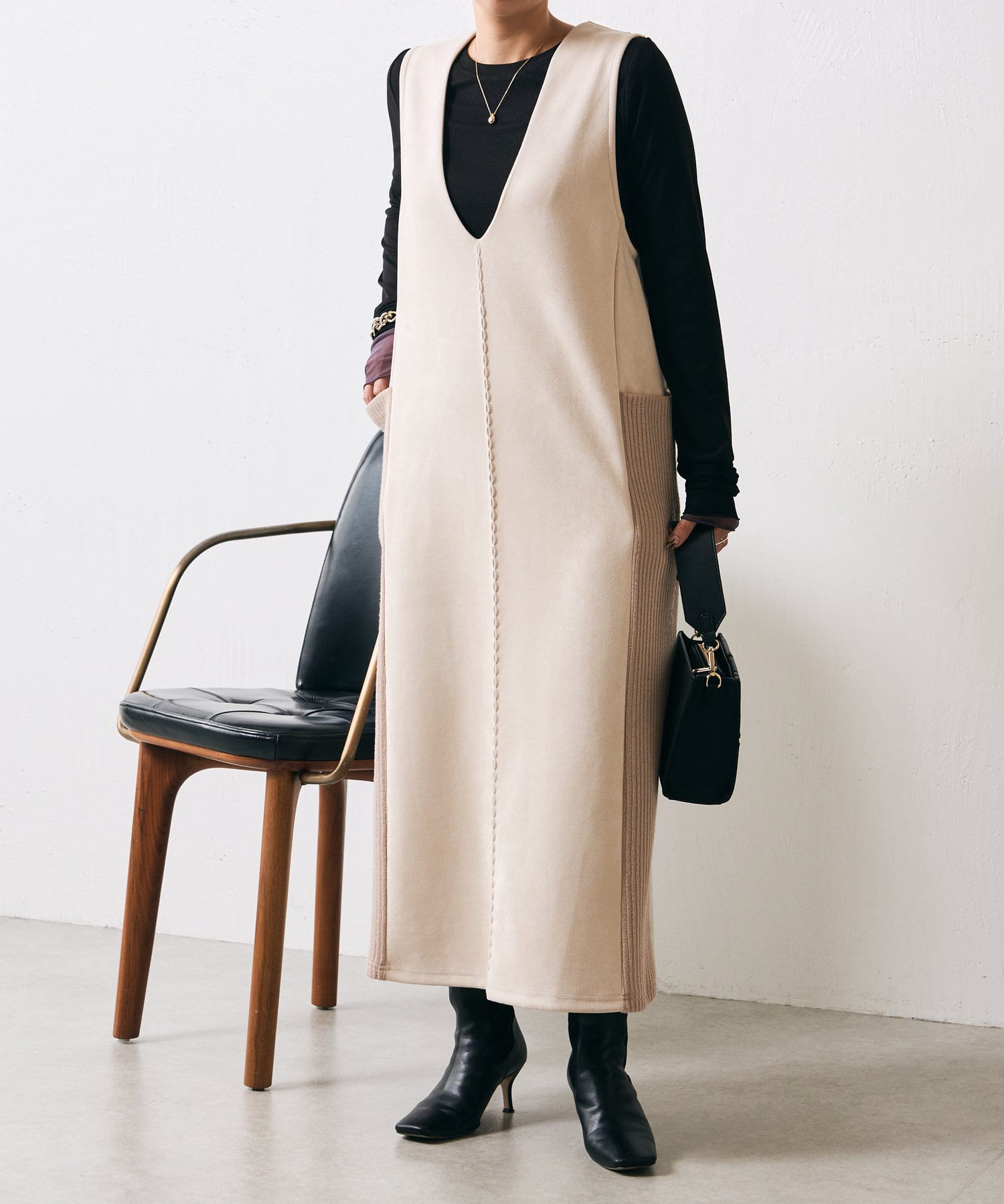 ・シーズンムードを高めてくれる、スエード素材のワンピース。