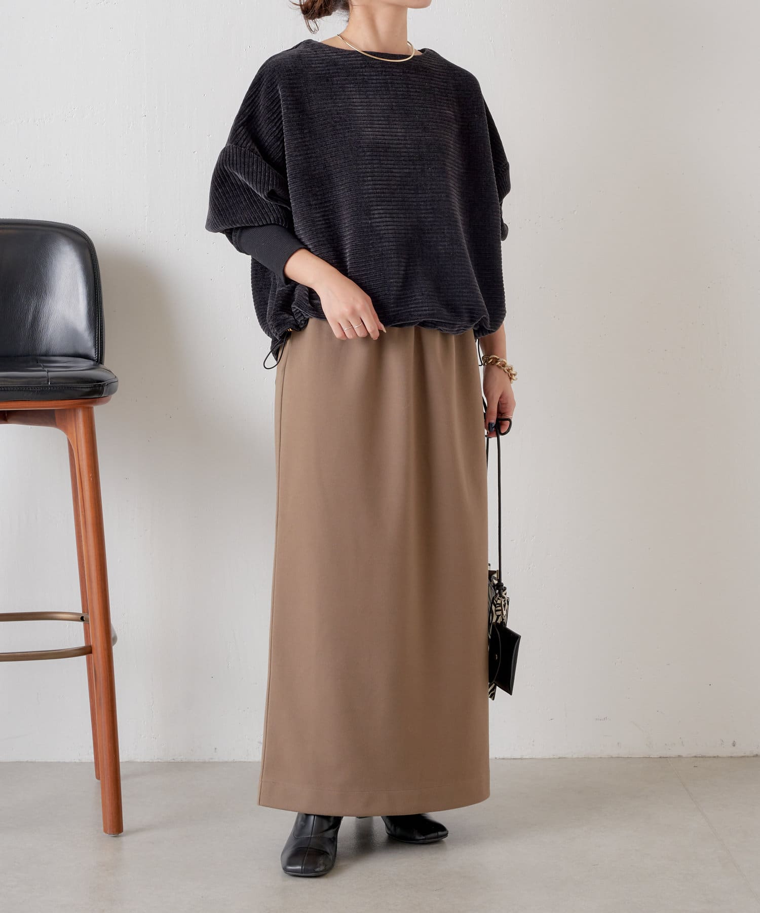 ・すっきり見えするIラインシルエットですが、体のラインを拾いにくく安心感あるところもポイント◎